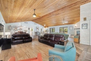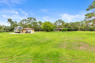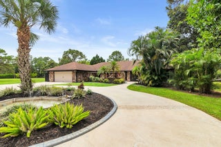 All sizes approx. Equine enthusiasts, car collectors, pilots and engineers look no further! This updated custom pool home is situated on over 5 acres! 3br could be 4br! 24x24 detached garage could be turned in to guest house or barn! Located in the equestrian community of Caloosa! Conveniently located, within minutes of Beaches, International Airport, North County Airport, Pratt & Whitney and more! At almost 3,300sf under air this bright and open floor plan boasts many upgrades. Enter the fully fenced property through the secure main gate. Cement paved driveway escorts you to front door!. An established Clusia hedge offers an ossias of privacy. As you enter the home you'll immediately appreciate the upgrades including the expansive open yet intimate floor plan. *See Remarks* More..Beautiful vaulted cypress wood ceilings in living area and kitchen, new flooring through out. The kitchen boasts an abundance of upgraded cabinetry, double ovens, granite counter tops, tumbled marble backsplash and Island work space with electric! The sunny breakfast room is the perfect place to enjoy your morning coffee! Escape to your screened pool and patio where the only thing that you see or will see you is the parklike landscaping! Pool and deck were resurfaced in 2022, pool is saltwater and is solar heated! At 40x36 this patio has space for all your party guests! The poolside covered sitting area adds to the charm and ambiance of this special home! Master bed and bath have been updated to include a free standing soaking tub and oversized seamless glass shower done in a river rock finish, new custom vanity and double sinks! Second and and third bathrooms have been nicely updated. Large family room has a redesigned fireplace that delivers ambiance and even heat when you need it! Disappearing sliding glass doors out to pool and patio. Large Den could easily be a 4th Bedroom. Attached two car garage plus detached 24X24 oversized garage! There is also an RV pad and electrical hook up. A full house generator adds to the simplicity of owning this home! A few of the many amenities this home offers, all interior doors have been replaced, California closets in all six closets, new front gate, new blinds, complete hurricane shutters, new garage door and opener that is hurricane rated, new front door, irrigation pulled from canal, gutters on house and garage, totally upgraded the pool screen enclosure, EV charger, two zone A/C, 500 gallon gas tank for generator and solar panels that heat the pool! So much more! Come experience the best five acre community in Northern Palm Beach County!! Caloosa, a rural gem in fast-growing unincorporated Northern Palm Beach County, is an equestrian's dream. The community boasts more than 30 miles of interior bridle paths, a 32-acre horse park, paved roads, close proximity to exclusive shopping, world-class golf, a small airport and state-of-the-art medical facilities. Small wonder it is home not just to horse lovers, but recreational enthusiasts of all types and ages. Caloosa is conveniently located on SR 710 (BeeLine Highway) north of PGA Boulevard and south of Indiantown Road. The community comprises 350 five-acre parcels, each adjoining the internal trail system. Amenities at Caloosa Park include tennis and basketball courts, pickle ball heart trail, fenced kiddy park, riding arena and jump course. A small meeting facility, screened picnic pavilion and barbecue grill are also available, and can be reserved for private parties.