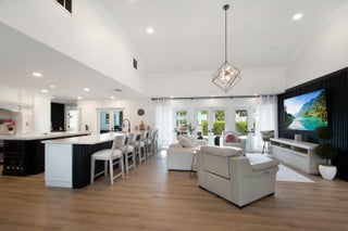 This beautifully redesigned estate in Venetian Isles offers 90 feet of waterfront and a private dock, ideal for those who desire the ultimate in coastal living. Highlights include dual primary suites, elegant marble and modern porcelain tile flooring, refined millwork, plantation shutters, and soaring ceilings. French doors in every room create a seamless indoor-outdoor flow, opening onto expansive terraces that embrace the waterfront setting.