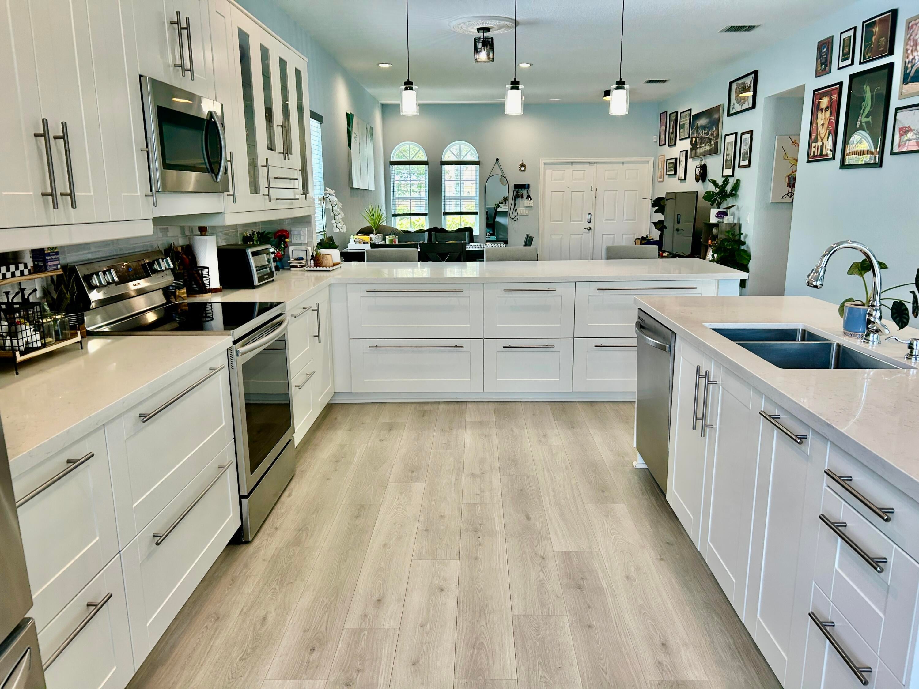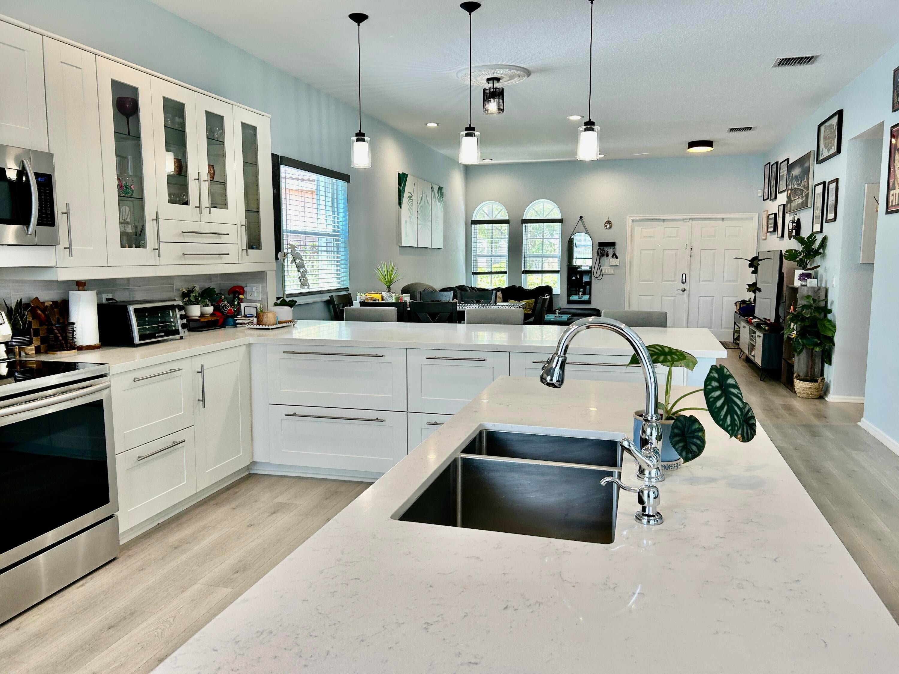 Stunning light and bright modern renovated home on a cul-de-sac with a gorgeous large kitchen, beautiful lake views, a private heated pool, fenced-in yard, and impact windows in a much sought after gated community. Grand open floor plan, newer stainless steel appliances, quartz countertops, tile flooring throughout and renovated bathrooms. Basic cable and internet included in the low HOA. Located walking distance to Coconut Creek Promenade with lots of shopping, restaurants/bars, movie theater, and entertainment. Short ride to the beach.