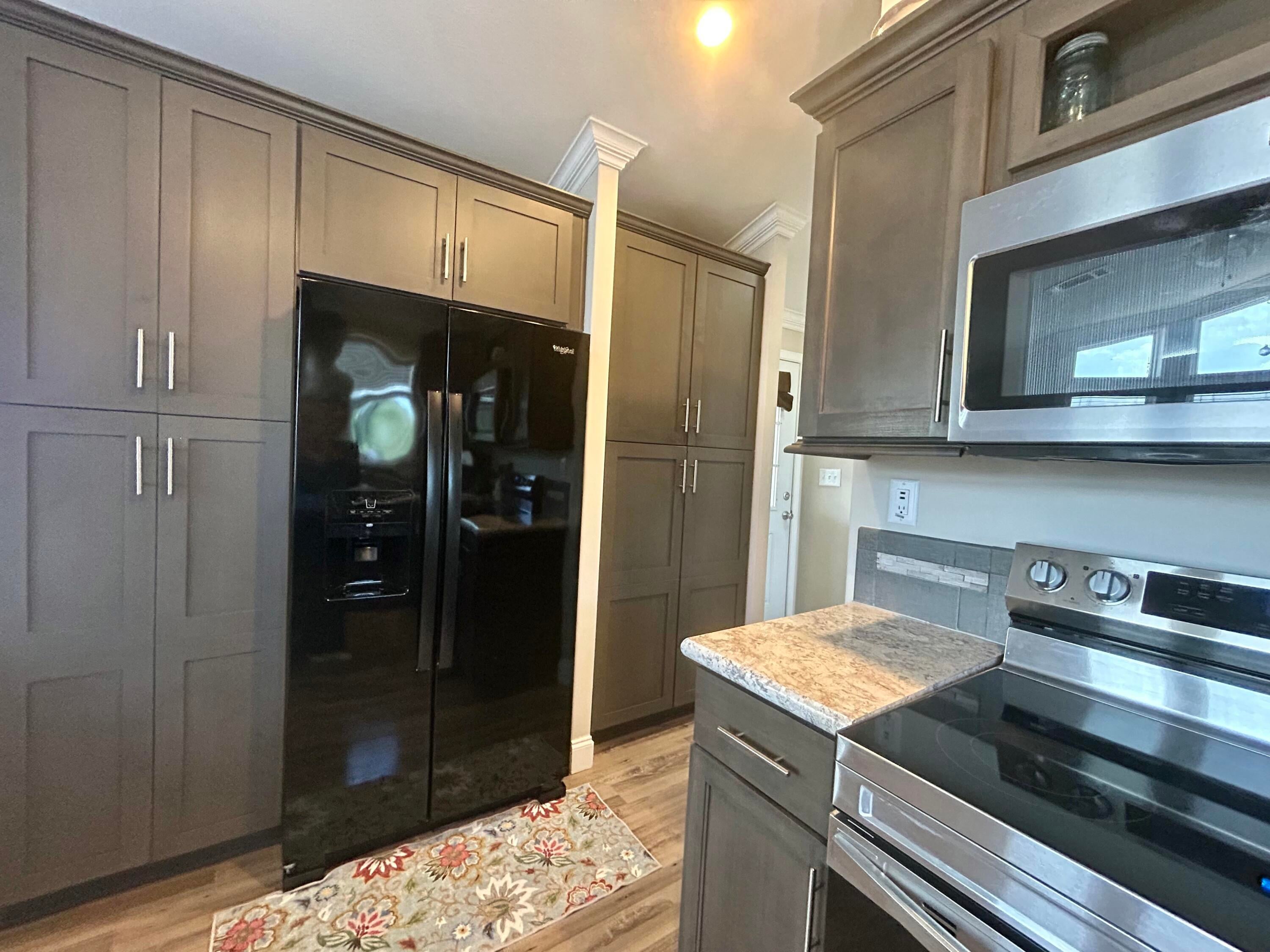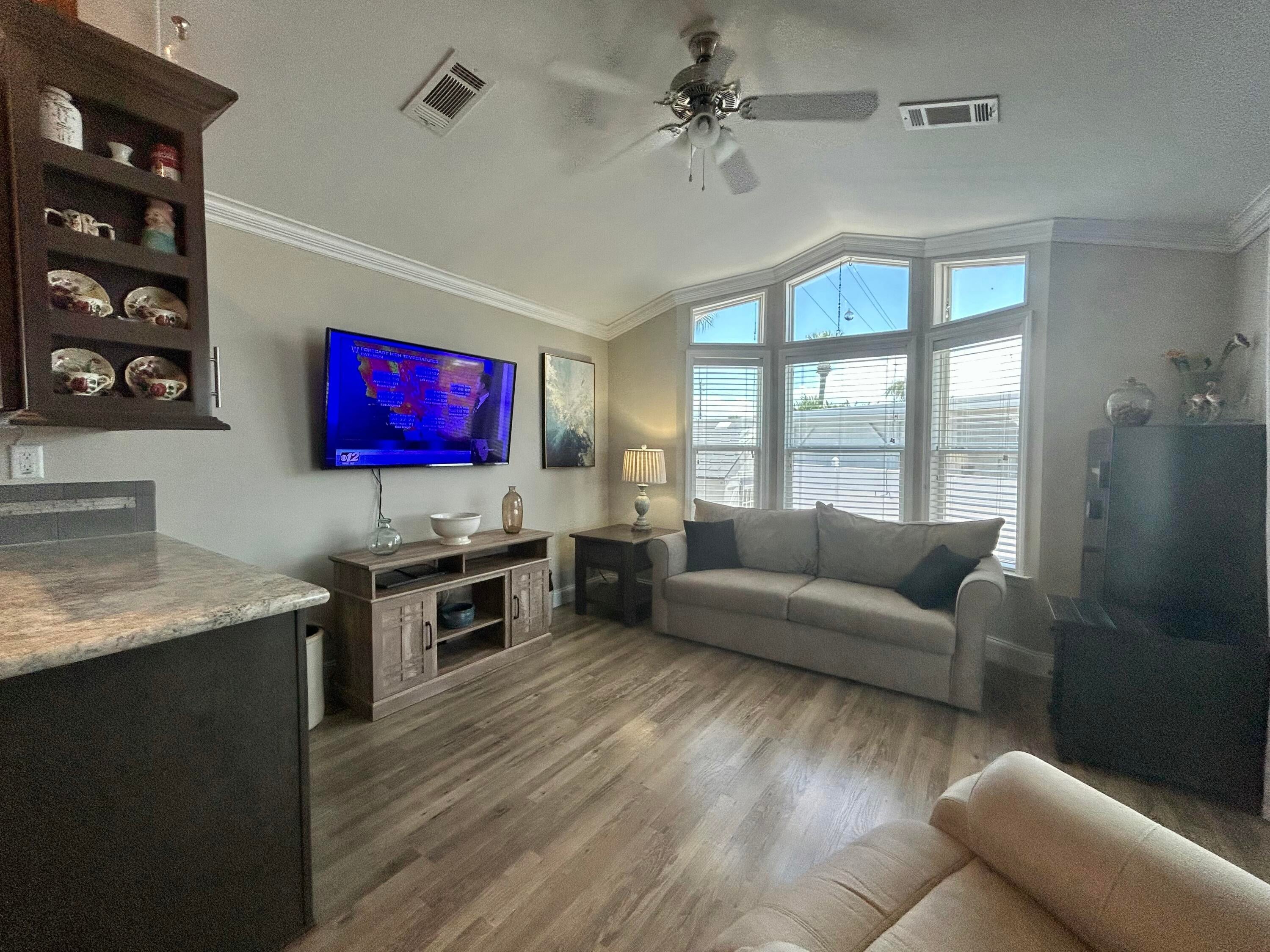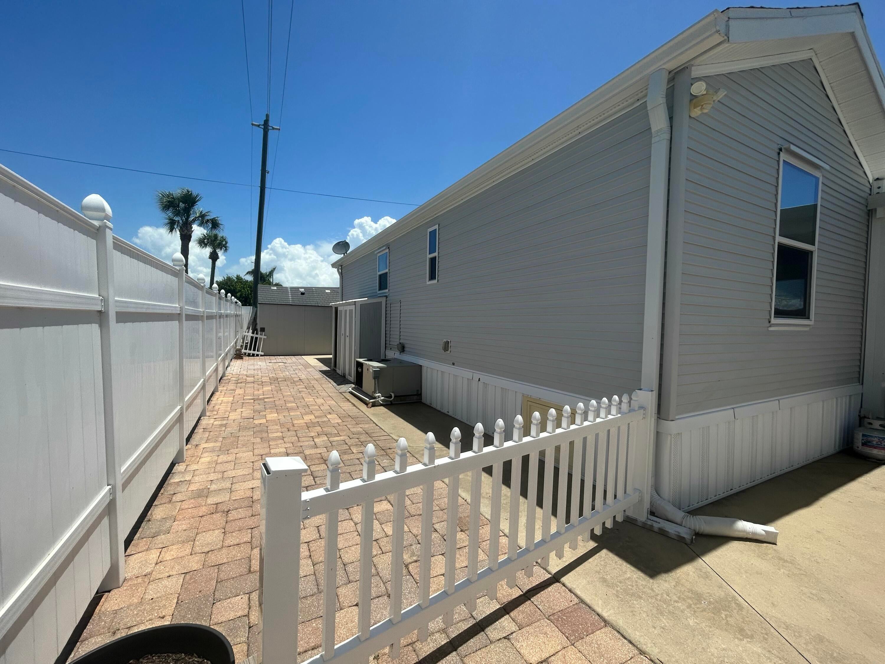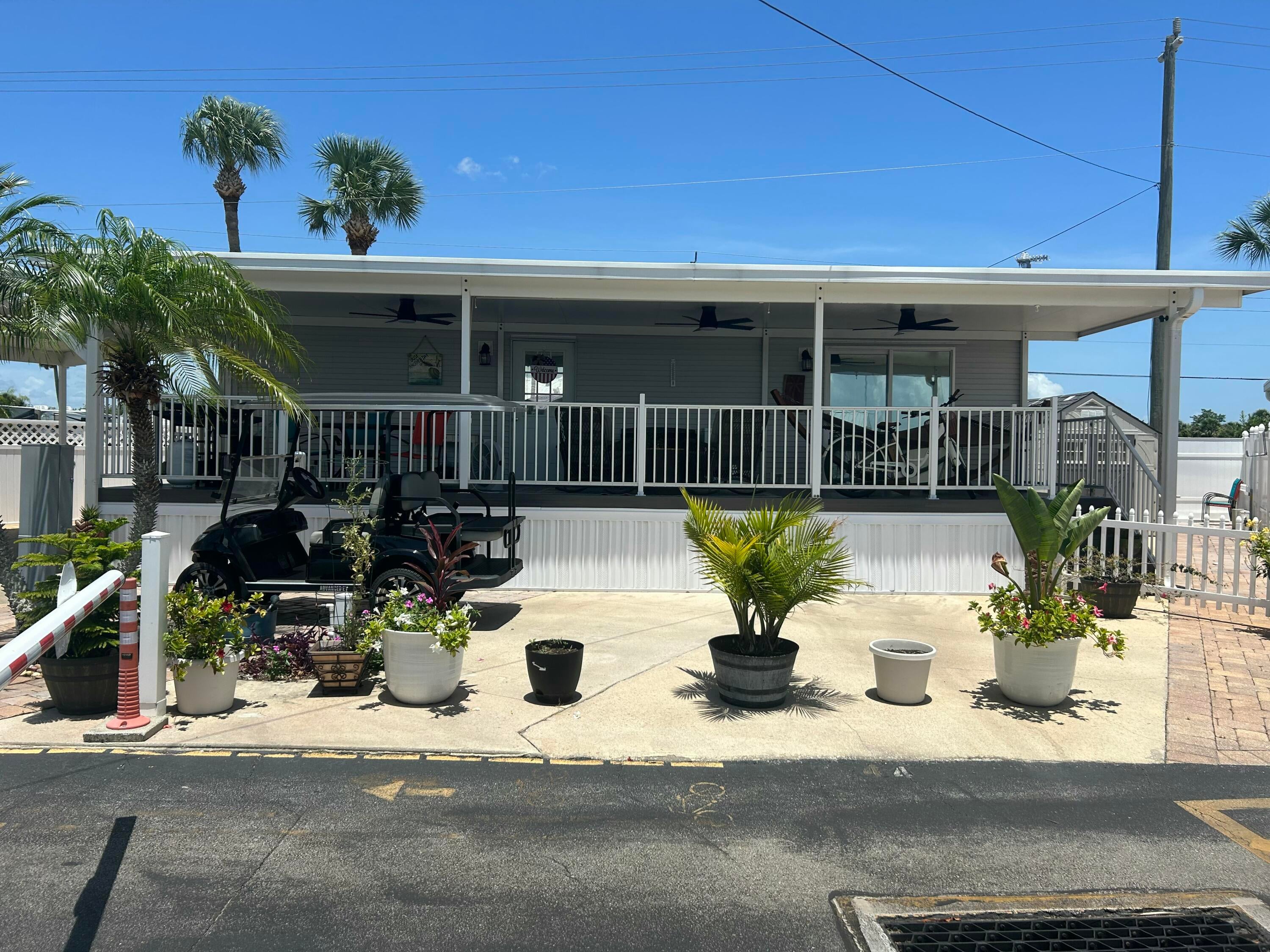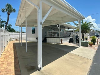 Experience the best of Florida living in this 2019 Palm Harbor park model, situated on a desirable double lot just steps from the clubhouse and heated pool. This home offers plenty of space and a 23x33 carport for convenient parking. Enjoy outdoor living on the 12x16 engineered porch, constructed with durable TREX composite and designed to easily convert into a Florida room if desired. Inside, you'll find thoughtful upgrades including excellent insulation, high ceilings, a walk-in shower with built-in seat, and abundant cabinetry for storage. Full shutters provide added protection, while the privacy fence enhances your outdoor enjoyment. Residents can take advantage of the community amenities such as billiards, boating, bocce ball, and pickleball, a clubhouse, library, and game room.