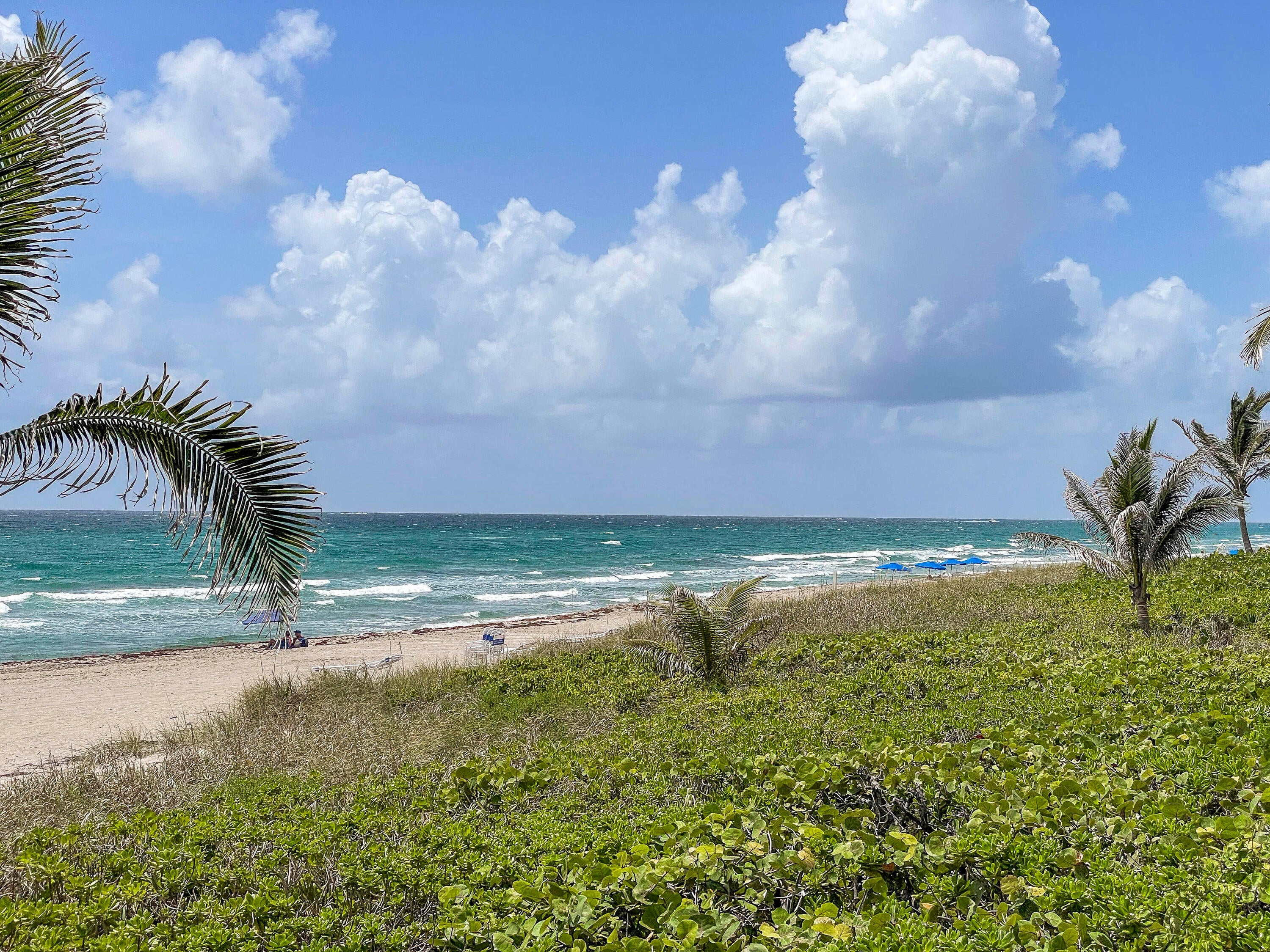 Corner-unit condo with stunning ocean & Intracoastal views from two private balconies! Split-bedroom layout with open living/dining area, updated kitchen, and tile flooring. Primary suite features walk-in closet & en-suite bath with granite vanity. Guest room doubles as den or office. Enjoy resort-style amenities: 2 pools, sauna, billiards, beach access & covered parking. Gated, quiet Highland Beach community just minutes to Atlantic Ave & Mizner Park. Furnished & move-in ready for full-time or seasonal living!