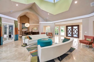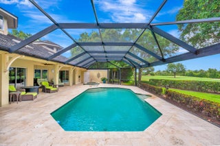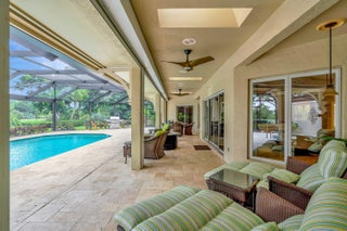 An absolutely unique custom estate, set on over a half-acre of lush, manicured landscaping. This expansive, single-level home features top-quality cabinetry and exquisite finishes throughout. Enjoy the privacy of a screened-in pool and lanai, a large office, and three generously sized bedrooms, each with its own en-suite bath. Perfectly positioned on the tenth fairway of a premier gated community offering golf, tennis, pickleball, boating, bocce, and more. Marina slips are available for rent or purchase. A one-time $30,000 capital contribution is required at closing.