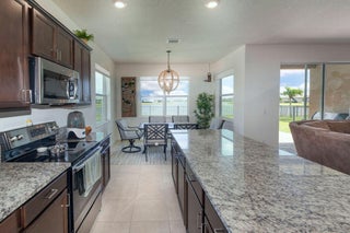 Welcome home to this chic, newly built and stylish Copper Creek stunner. Ideally located, you will adore this family friendly community that boasts easy access to K-8 schools as well as a gorgeous clubhouse with tons of space for activities. A bright an open concept entertainment space welcomes you inside and makes the perfect place to host friends and family. Just beyond the dining area, find a covered lanai overlooking the lake to peacefully enjoy your morning coffee or glass of wine.