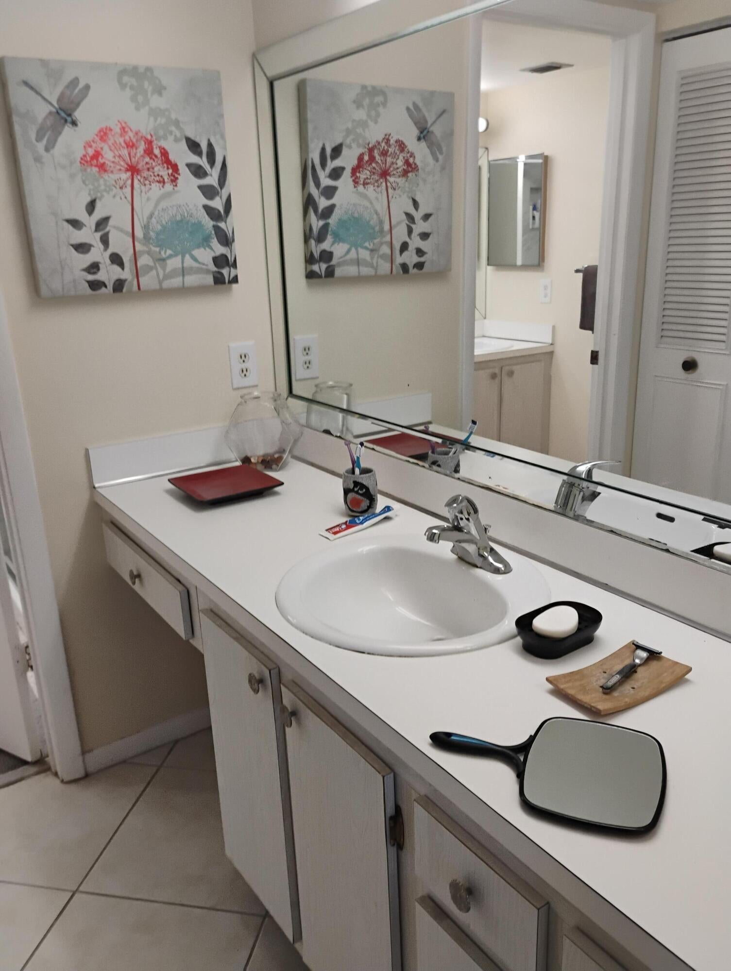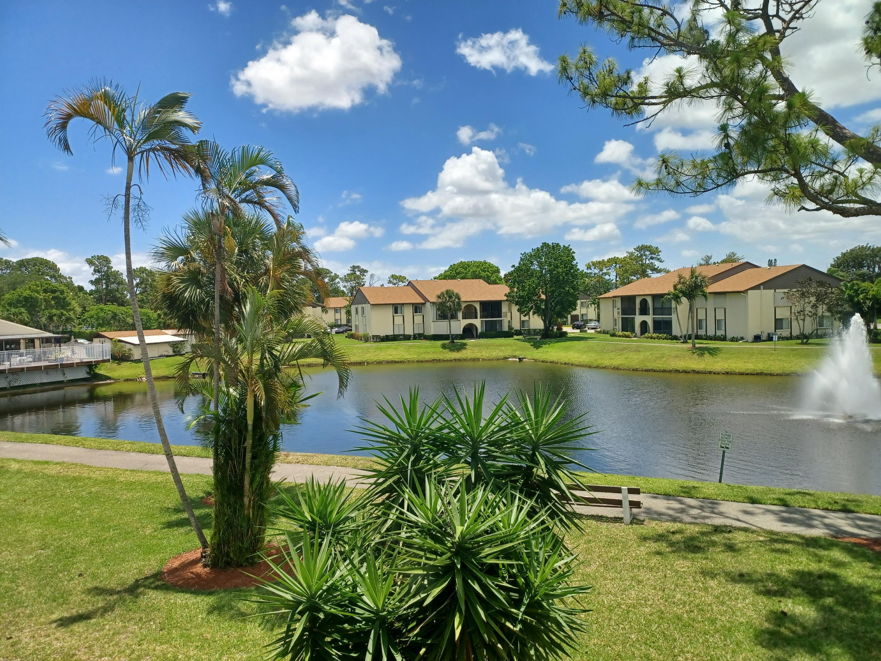 Welcome to your peaceful oasis in a well maintained 55+community.This bright 2-bedroom,1-bath second-floor condo is turn key home.! Tile flooring throughout, waking closets, big French door refrigerator, brand new washer and dryer, glass-top stove, and built in microwave. Community amenities include pool, clubhouse, cable, bocce, shuffleboard and a scenic walking path around a lake and fountain. Sunset views from living room and foyer. The Assoc. fee covers the roof, grounds maintenance, exterior walls, clubhouse and heated pool. Location makes car-free living easy, buses, ride shares, and a nearby train station. Palm Beaches, intracoastal waterway and Worth Avenue world-class shopping and dining are all a short drive away, And Aldi, Target, Walmart within minutes. A must see.Message from the Owner I've lived here for 10 years and love it. I'm offering my condo as a turn-key property, with nearly everything you'll need already in place: furnishings, cooking utensils, dishes, bowls, cups, saucers and even my trusty Ninja blender. Furnished or unfurnished, your choice!