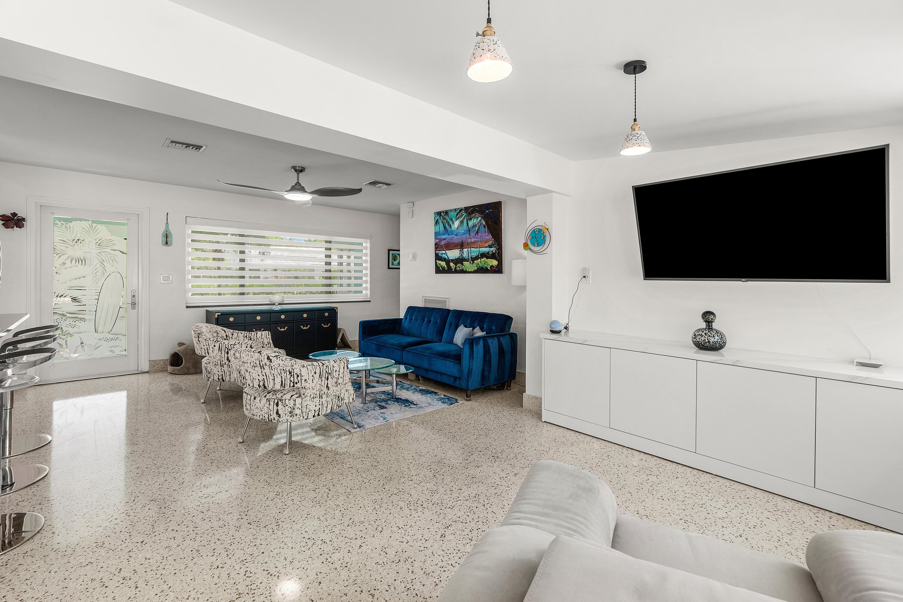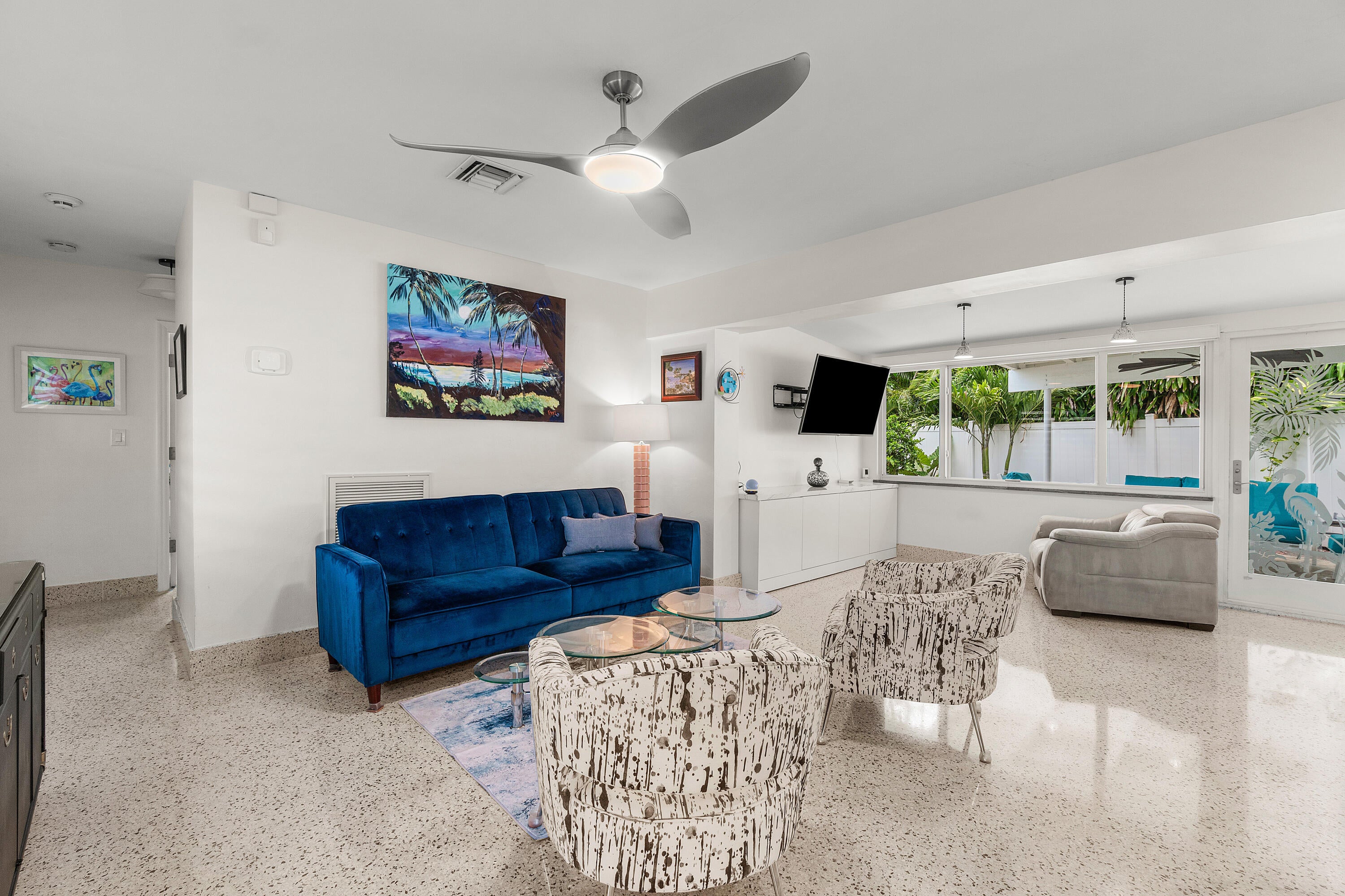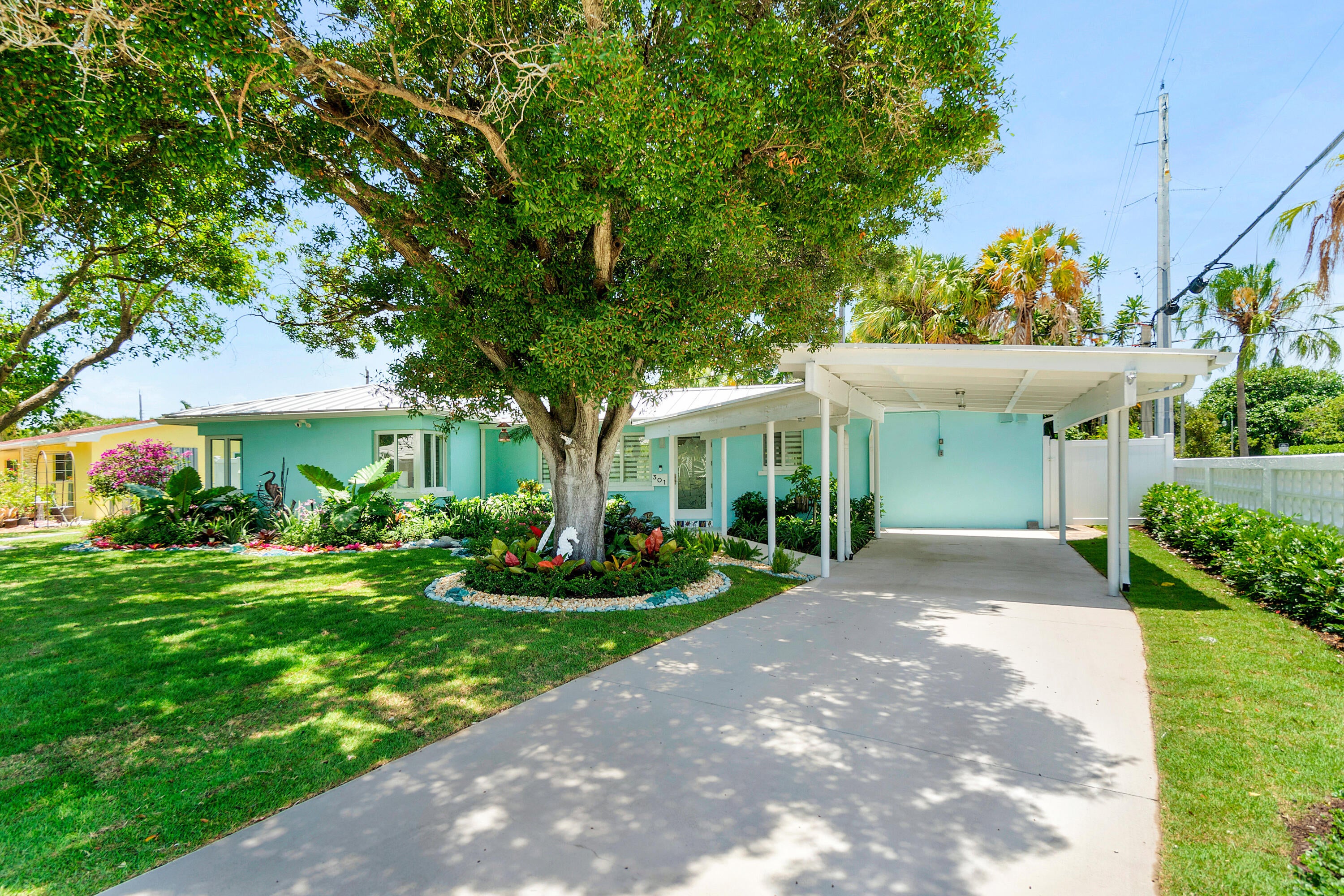 Completely renovated Mid-Century Modern Charmer.Perfectly situated on a So. Olive Ave corner lot in Soso, West Palm Beach's most sought after neighborhood.What was once old, is made new again with a complete renovation. This 3BR 2BA home has all new plumbing lines, new electric and natural gas lines. New metal roof. Impact resistant windows and doors. New tankless water heater with instant hot water. Restored terrazzo floors with new matching baseboard throughout the home. New carport with covered walkway to the front door, providing protection from the elements while blending seamlessly with the 1950's architecture. Beauty abounds as you approach the front entrance surrounded by a lush garden which flows to the privatemaster garden where you can enjoy your morning coffee or afternoon cocktail. The front door landing is adorned with unique tiles, each representing an "old Florida" vibe. The Master suite has a spectacular spacious built-in, wall to wall, floor to ceiling wardrobe with integrated drawers eliminating the need for dressers and offering an elegant and streamlined solution for all of your clothes, shoes and purses. The kitchen is a culinary dream boasting top of the line, modern GE Cafe appliances, featuring a modern natural gas oven with a built in air fryer, a dual function microwave that doubles as a convection oven and a built in Refrigerator and dishwasher. Floor to ceiling Kitchen aid cabinetry and drawers with loads of storage space for your gourmet haven. Stunning black granite with unique white veining throughout and a painted glass backsplash adding a brilliant pop of color. Additionally, the master bath countertop and the window sills throughout the home are adorned with the same granite. Each exterior door is a masterpiece of art adorned with custom etched glass designs. Not only unique, but all of the exterior doors (and windows) are hurricane rated for durability and safety. There's also a private studio, which can be your private office, yoga or meditation room, or exercise area. Whatever your heart desires. Spray-In foam Insulation in all roof trusses and walls in Master Suite, Family Room, Kitchen and Studio provides thermal, sound \& insect protection The Backyard is surrounded by a 7' privacy fence. Entertain your guests any time of the year under the covered patio. There's room for a pool, hot tub or a cold plunge tub in the parterre garden. Enjoy peace of mind with a reliable whole-house generator, which runs on natural gas. It activates within a minute of any power loss and keeps your home running smoothly, no matter the duration of the outage. Walk to Flagler Drive's multi-million dollar waterfront walking trail, bike to Palm Beach Island and the infamous Worth Avenue Clocktower, shop and dine on Worth Avenue, the "Rodeo Drive of the East Coast", drive to Downtown WPB, Brightline, The Kravis Center for the performing arts, plus golf, tennis, shopping, dining and PBI Airport ... all within a 10 minute drive or less. WPB is a forward thinking educational hub with a mix of public schools and private education. Top performing public schools are South Olive Elementary School and Forest Hill High School. A perfect place for a small family, second home or retirement. Call to schedule your private showing today.