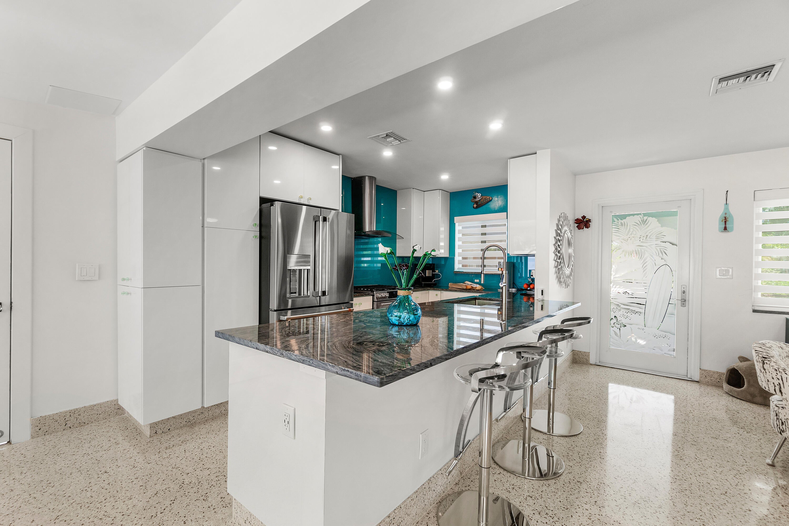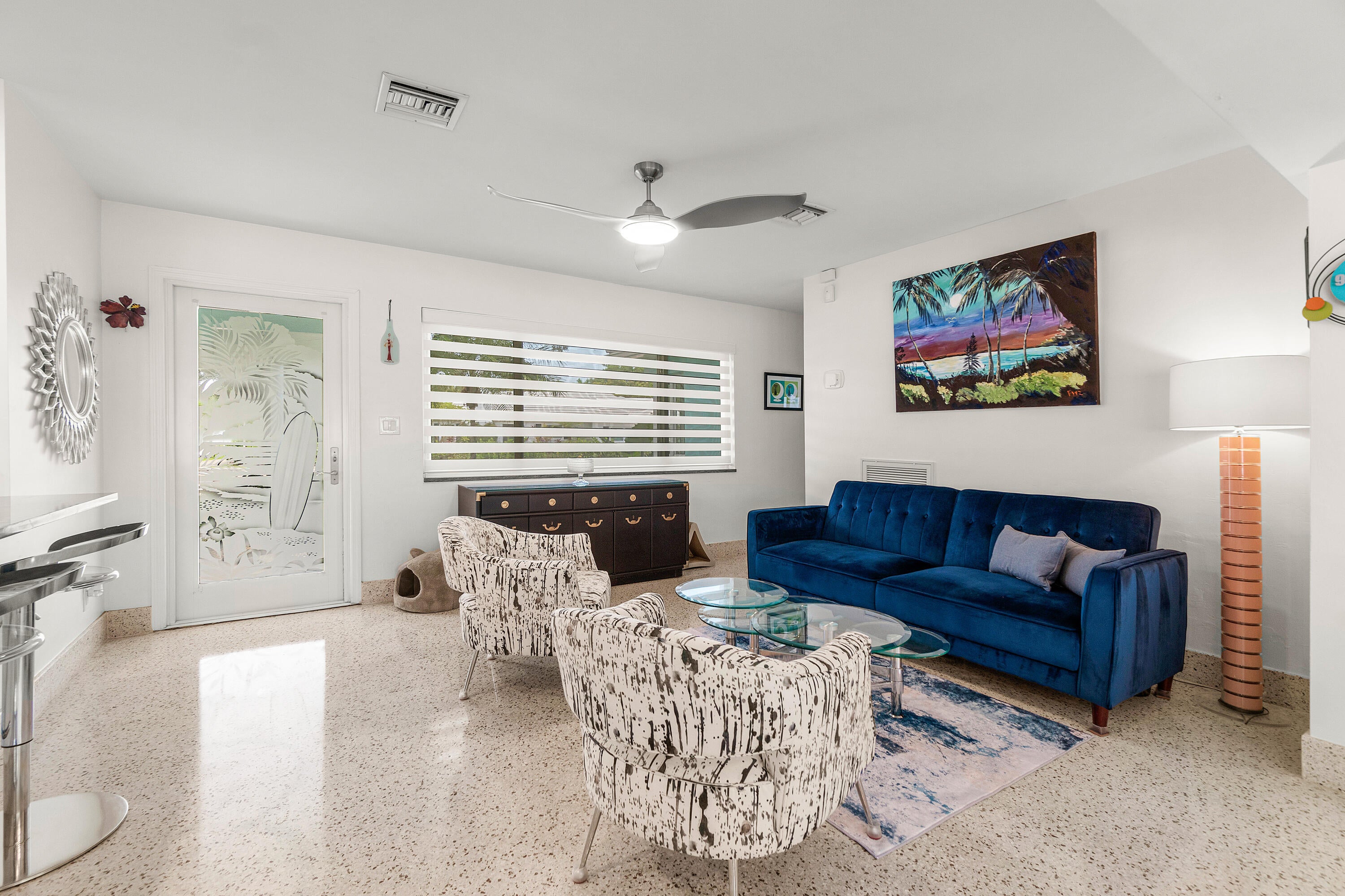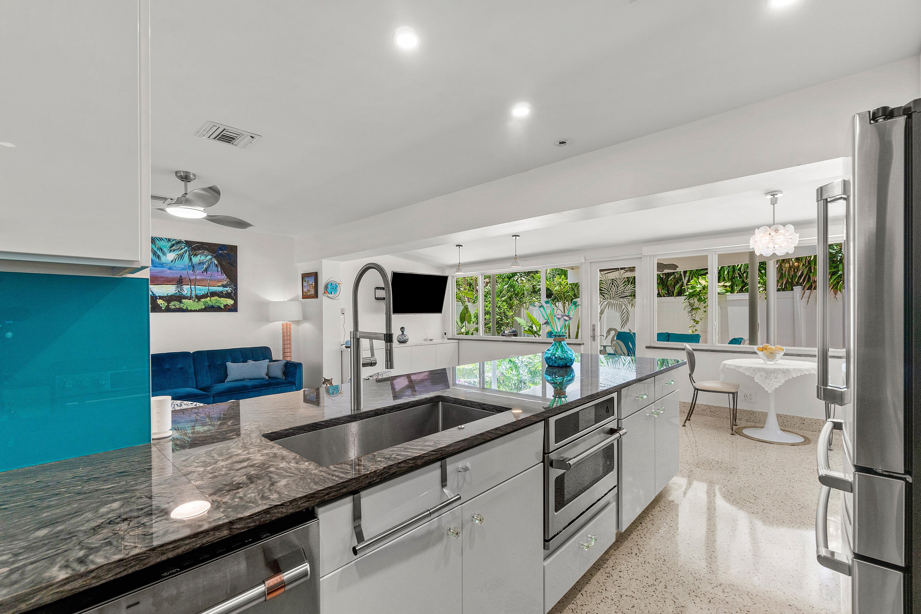 Completely renovated Mid-Century Modern Charmer.Perfectly situated on a So. Olive Ave corner lot in Soso, West Palm Beach's most sought after neighborhood.What was once old, is made new again with a complete renovation. This 3BR 2BA home has all new plumbing lines, new electric and natural gas lines. New metal roof. Impact resistant windows and doors. New tankless water heater with instant hot water. Restored terrazzo floors with new matching baseboard throughout the home. New carport with covered walkway to the front door, providing protection from the elements while blending seamlessly with the 1950's architecture. Beauty abounds as you approach the front entrance surrounded by a lush garden which flows to the privatemaster garden where you can enjoy your morning coffee or afternoon cocktail. The front door landing is adorned with unique tiles, each representing an "old Florida" vibe. The Master suite has a spectacular spacious built-in, wall to wall, floor to ceiling wardrobe with integrated drawers eliminating the need for dressers and offering an elegant and streamlined solution for all of your clothes, shoes and purses. The kitchen is a culinary dream boasting top of the line, modern GE Cafe appliances, featuring a modern natural gas oven with a built in air fryer, a dual function microwave that doubles as a convection oven and a built in Refrigerator and dishwasher. Floor to ceiling Kitchen aid cabinetry and drawers with loads of storage space for your gourmet haven. Stunning black granite with unique white veining throughout and a painted glass backsplash adding a brilliant pop of color. Additionally, the master bath countertop and the window sills throughout the home are adorned with the same granite. Each exterior door is a masterpiece of art adorned with custom etched glass designs. Not only unique, but all of the exterior doors (and windows) are hurricane rated for durability and safety. There's also a private studio, which can be your private office, yoga or meditation room, or exercise area. Whatever your heart desires. Spray-In foam Insulation in all roof trusses and walls in Master Suite, Family Room, Kitchen and Studio provides thermal, sound \& insect protection The Backyard is surrounded by a 7' privacy fence. Entertain your guests any time of the year under the covered patio. There's room for a pool, hot tub or a cold plunge tub in the parterre garden. Enjoy peace of mind with a reliable whole-house generator, which runs on natural gas. It activates within a minute of any power loss and keeps your home running smoothly, no matter the duration of the outage. Walk to Flagler Drive's multi-million dollar waterfront walking trail, bike to Palm Beach Island and the infamous Worth Avenue Clocktower, shop and dine on Worth Avenue, the "Rodeo Drive of the East Coast", drive to Downtown WPB, Brightline, The Kravis Center for the performing arts, plus golf, tennis, shopping, dining and PBI Airport ... all within a 10 minute drive or less. WPB is a forward thinking educational hub with a mix of public schools and private education. Top performing public schools are South Olive Elementary School and Forest Hill High School. A perfect place for a small family, second home or retirement. Call to schedule your private showing today.