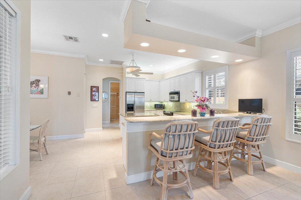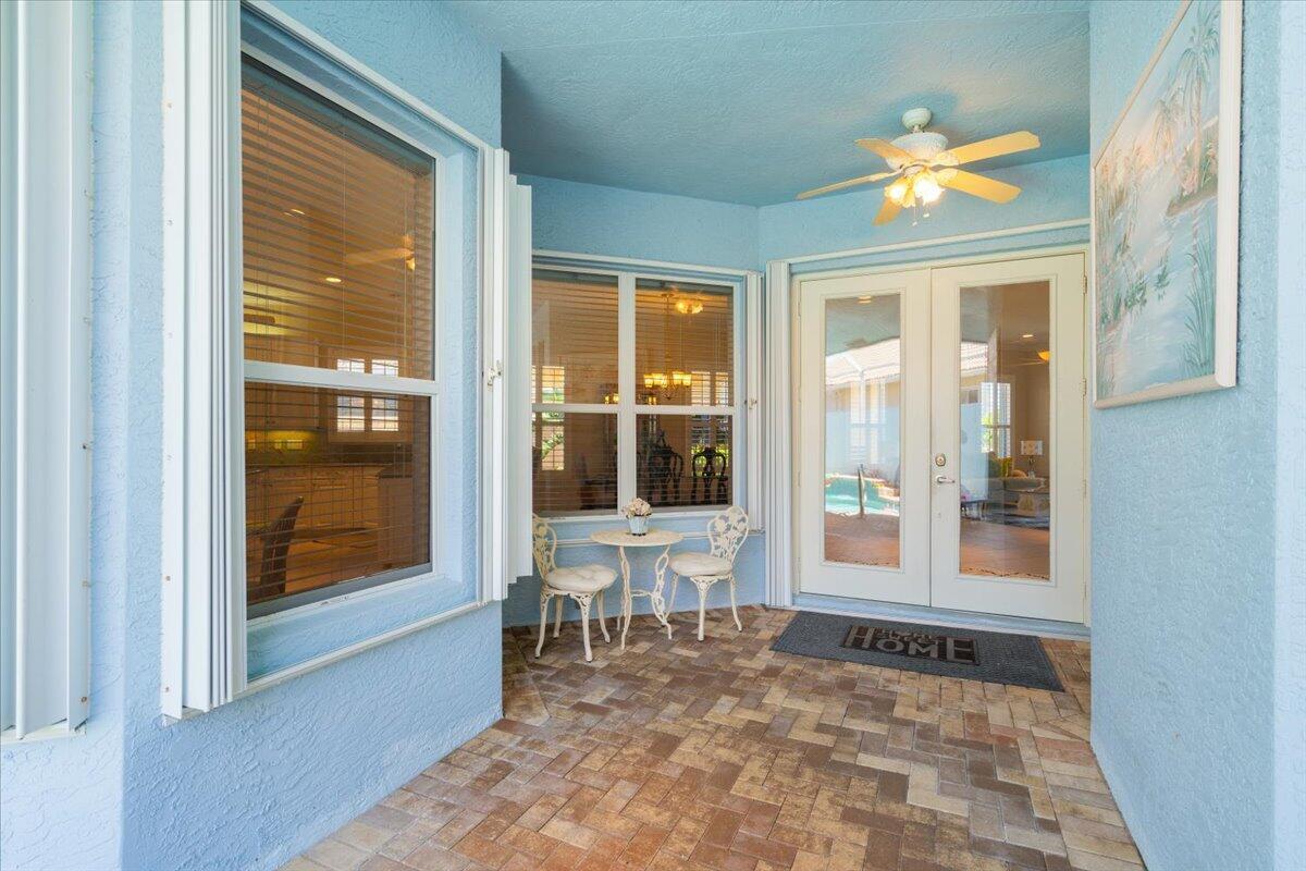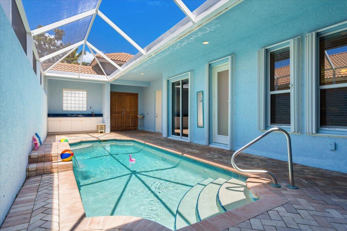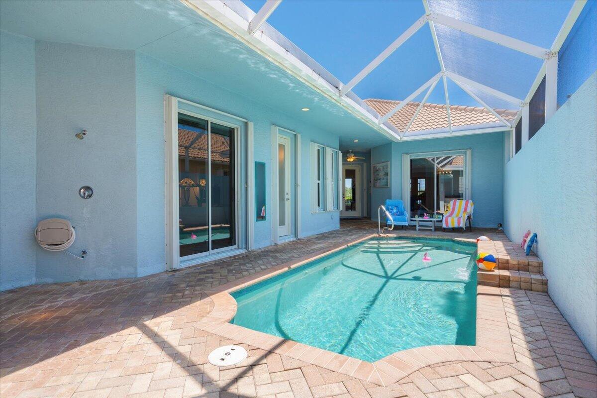 Beautiful 3BR/3.5BA courtyard pool home just steps from Pepper Park & the Navy SEAL Museum! Enjoy river & beach access w/ available boat slips & private walkway to the sand. Set on an extended lot w/ green space in front & tranquil lake views in back. Private screened courtyard features a pool, summer kitchen, outdoor shower & pool bath--perfect for entertaining. Interior highlights include volume ceilings, crown molding, tile floors & plantation shutters. Updated kitchen offers granite counters, SS appliances, walk-in pantry, snack bar & breakfast nook. Spacious great room overlooks the lake, primary suite opens to lanai, plus 2 guest rooms w/ courtyard access (1 en-suite). Updated laundry. Accordion shutters for peace of mind.