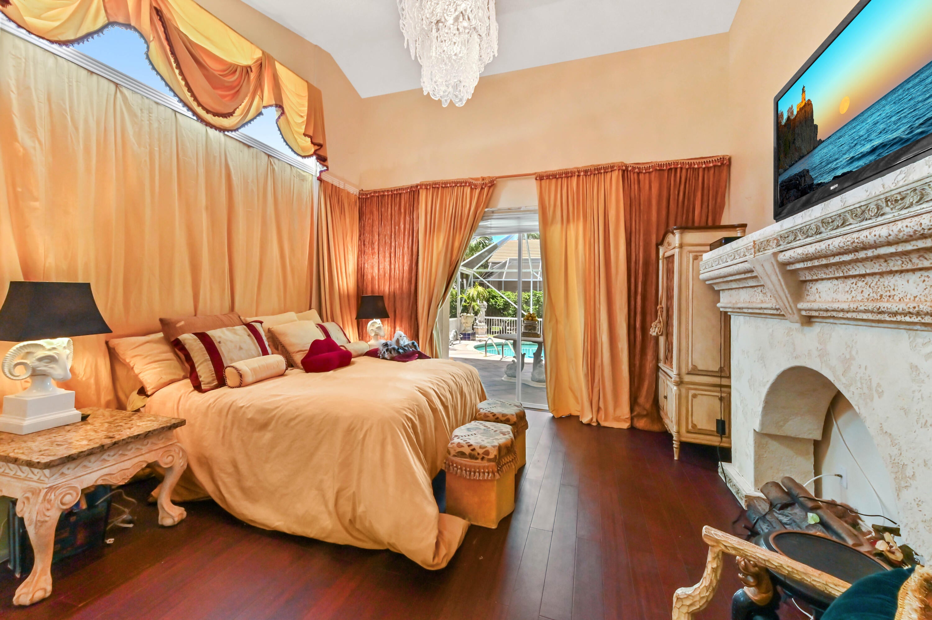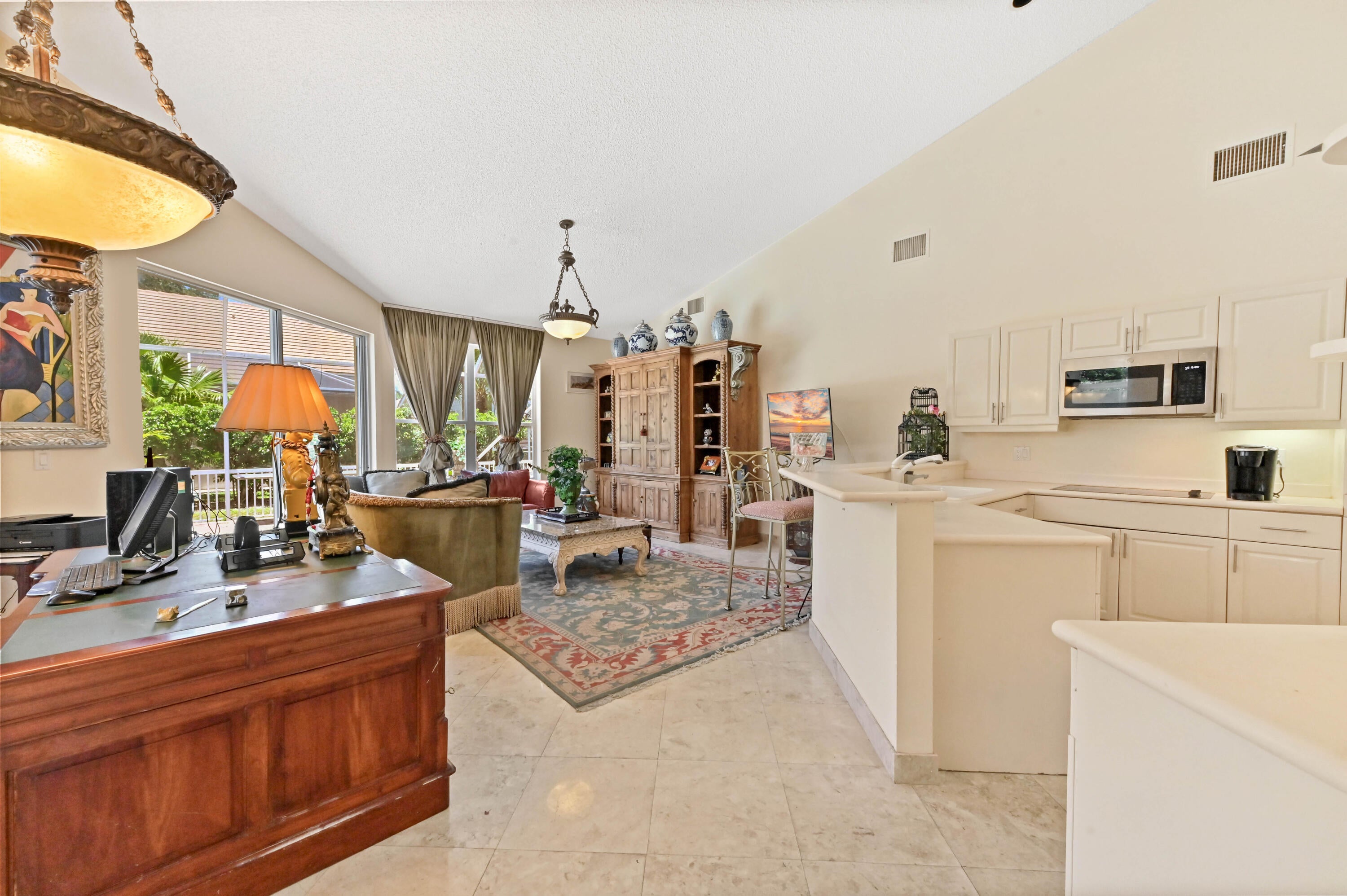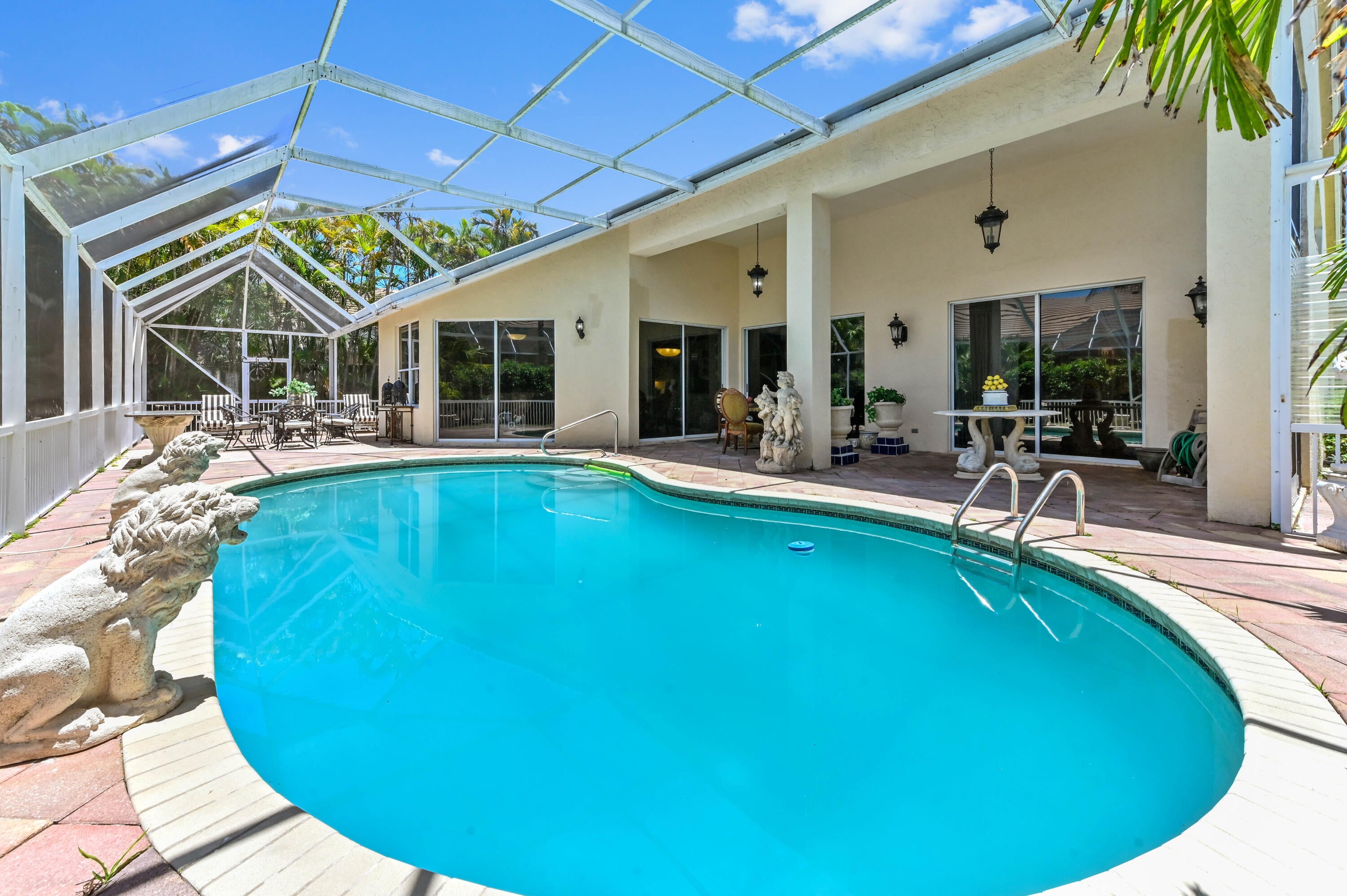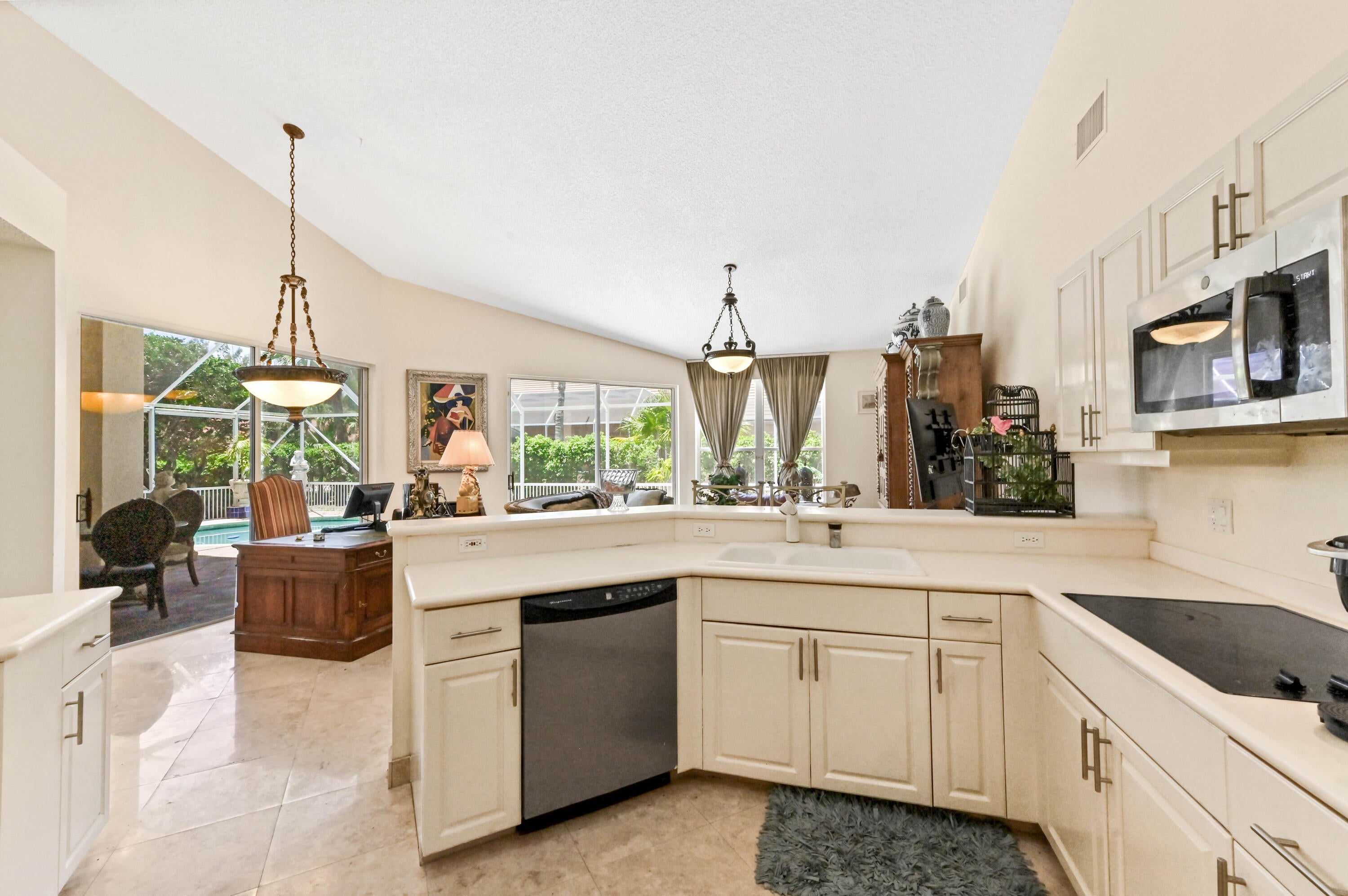 Enjoy the winter months in this stunning home featuring an expanded screened lanai (largest in The Estate section) with a beautiful pool, 2 car garage, 3 bedroom, 3 bathroom. This property offers access to exceptional amenities & beautifully manicured landscaping leading to a a grand entrance. The home includes a primary bedroom w/ensuite bathroom & a king size bed, two additional bedrooms with queen size beds and 2 additional bathrooms. The large kitchen is equipped with stainless steel appliances & corian countertops. Experience comfort & luxury in this beautiful home.