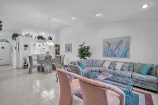 Experience light, space, & serenity in this beautifully maintained 2 bedroom, 2 bath end unit villa with soaring ceilings & kitchen skylight that fills the home with natural Florida sunshine. This is your chance to create your very own coastal retreat, offering the perfect blend of comfort & potential. Enjoy the convenience of a one-car garage, tile & carpet flooring throughout, & an exterior freshly painted. The A/C was replaced in 2023, & the roof (believed 2008) Steps from one of several community pools - Palm Isles a 55+ man-gated community offering tennis, pickleball, an on-site cafe, a stunning new clubhouse debuting this December & more! Perfectly located near the Turnpike, shopping, dining, and entertainment. Seller to pay half of the assessments for new clubhouse w/strong offer