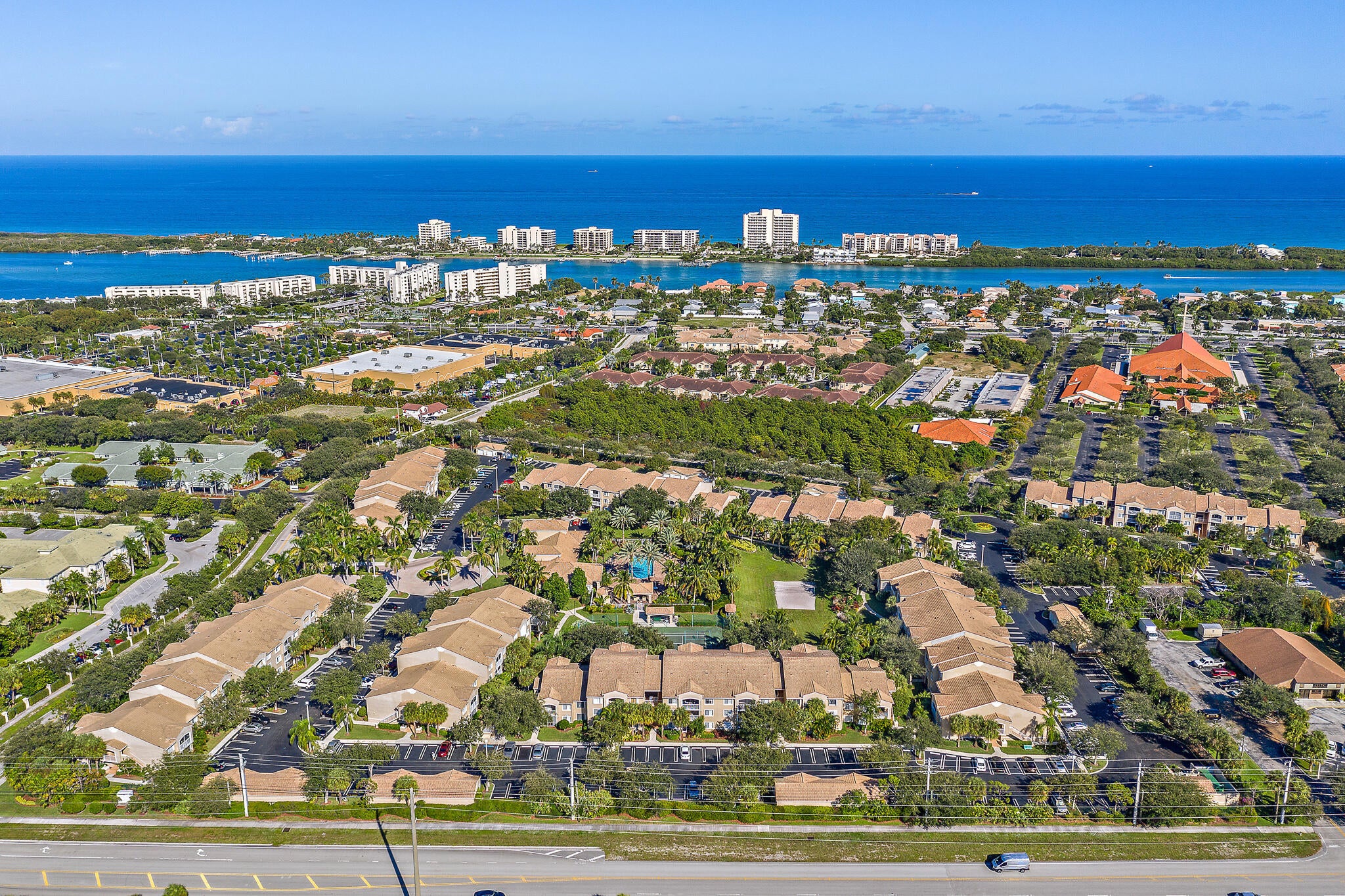 Welcome to your very own tropical oasis in the heart of Lighthouse Cove! This beautifully maintained first-floor condo offers the perfect blend of comfort, style, and convenience. With two spacious bedrooms and two full bathrooms, the thoughtfully designed split floor plan ensures both privacy and functionality--ideal for everyday living or hosting guests.Step inside to find warm wood flooring flowing through the main living areas, creating a welcoming and cohesive space filled with natural charm. The kitchen is tastefully updated with sleek quartz countertops, a newer refrigerator and dishwasher, and plenty of cabinet space--ready for you to whip up your favorite meals or entertain with ease.You'll love the peace of mind that comes with the brand-new AC installed in 2024, making this condo truly move-in ready. Whether you're looking for a full-time residence, a seasonal getaway, or an investment opportunity, this home offers the perfect backdrop to create lasting memories. Come experience the relaxed, coastal lifestyle of Lighthouse Covewhere tropical beauty, community charm, and everyday comfort come together seamlessly. Residents enjoy the resort-style amenities offered by the community, including a lavish pool area complete with a charming tiki hut, bar, and BBQ grills, perfect for entertaining guests or simply basking in the Florida sun. Stay active and fit with access to the well-equipped fitness center or unwind with a good book in the library. Additional amenities such as a business center, billiards room, and various sports courts including tennis, volleyball, and pickleball, cater to every aspect of your lifestyle. Beyond the confines of Lighthouse Cove, a world of exploration awaits. Discover Jupiter's pristine beaches, including Dubois Park, Coral Cove, and Blowing Rock beaches, just minutes away. Immerse yourself in the area's rich history and culture by visiting the iconic Jupiter Inlet Lighthouse and Museum. With an array of dining, shopping, and entertainment options conveniently located nearby, this condo epitomizes the perfect blend of vibrancy and convenience, enhancing your lifestyle in every way imaginable.