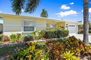 Located in the Active 55+ community of Spanish Lakes Fairways. This CBS two bedroom, two bath home features wood laminate flooring and plantation shutters throughout. Metal roof and accordion hurricane shutters is an added bonus! Land lease fee not only includes access to FREE golf and lawn service there are numerous other activities to enjoy! Spanish Lakes Fairways is within a few short minutes of shopping, restaurants, banks and churches.