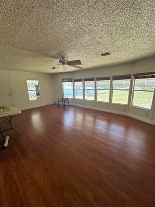 Large Lake View home with inside laundry, two dining areas, Huge living room, Florida room as well as a screened patio, Extra large shed in the back of the home, laminate flooring, large kitchen, extra long driveway in the cul-de-sac not far from the clubhouse and pool, boat ramp and day dock available to the residents right on the North Fork of the St. Lucie River. Don't miss this one, buyer responsible for verifying all information. Selling as-is