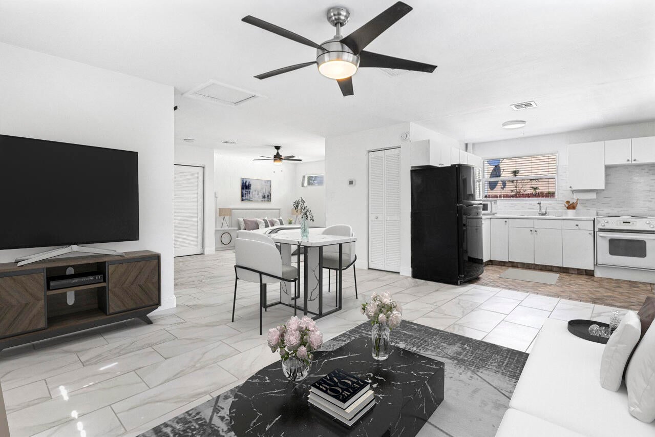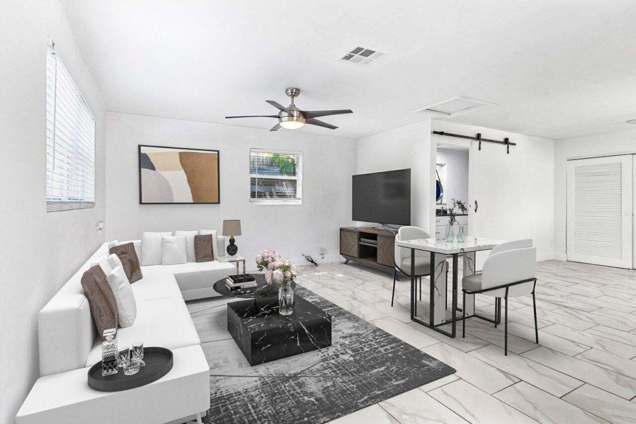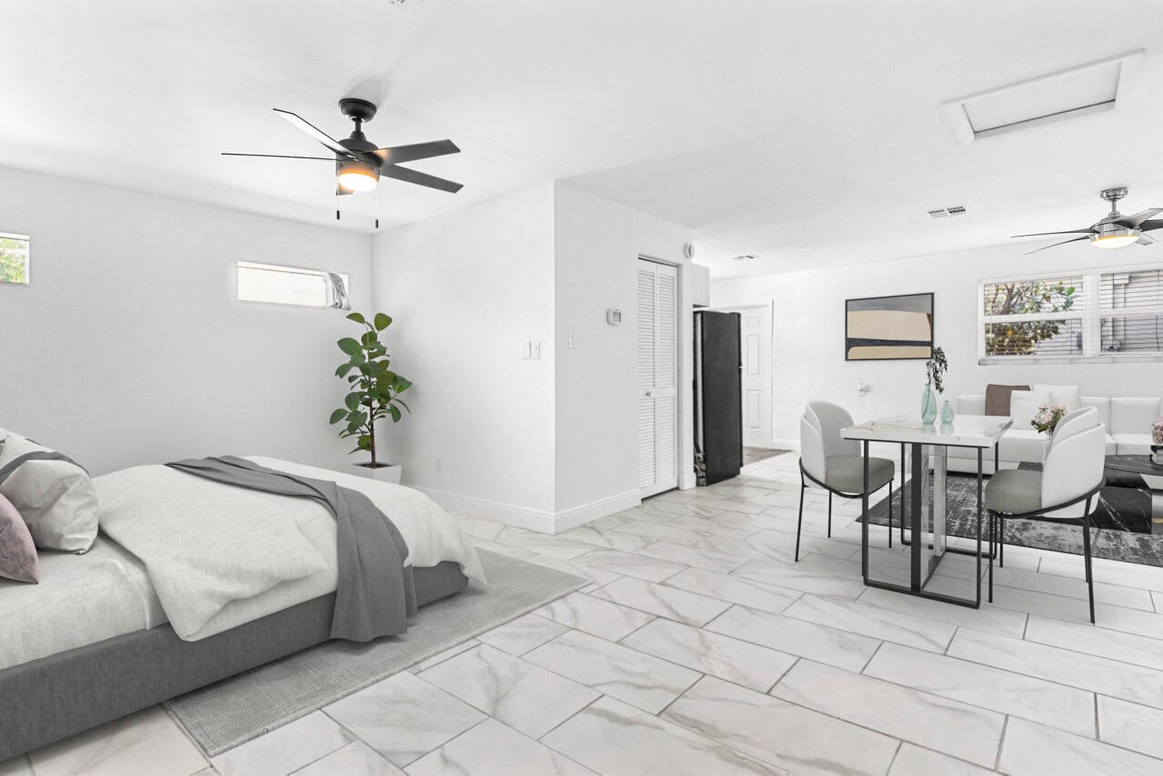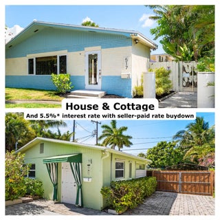 Don't miss this income opportunity - Live in one 1 + collect income from the rented cottage on day 1! This NO HOA, 2 unit income opportunity near downtown West Palm Beach & Palm Beach is perfect for Airbnb/VRBO/Short term rentals w/ 2 electric meters, both have new roofs + both are concrete block. Main house is 2 bedroom 2 bathrooms w/ full-size laundry and tankless natural gas hot water hater. The detached guest cottage is rented for $1975/monthly. Courtyard could be enclosed to add 289 sq ft of living space to the house. Master BR has a large walk-in closet. Off street parking in front of house. House has street + alley access so residents can access via their units via separate entrances. This is a prime location w/ easy access to Downtown Wets Palm Beach.