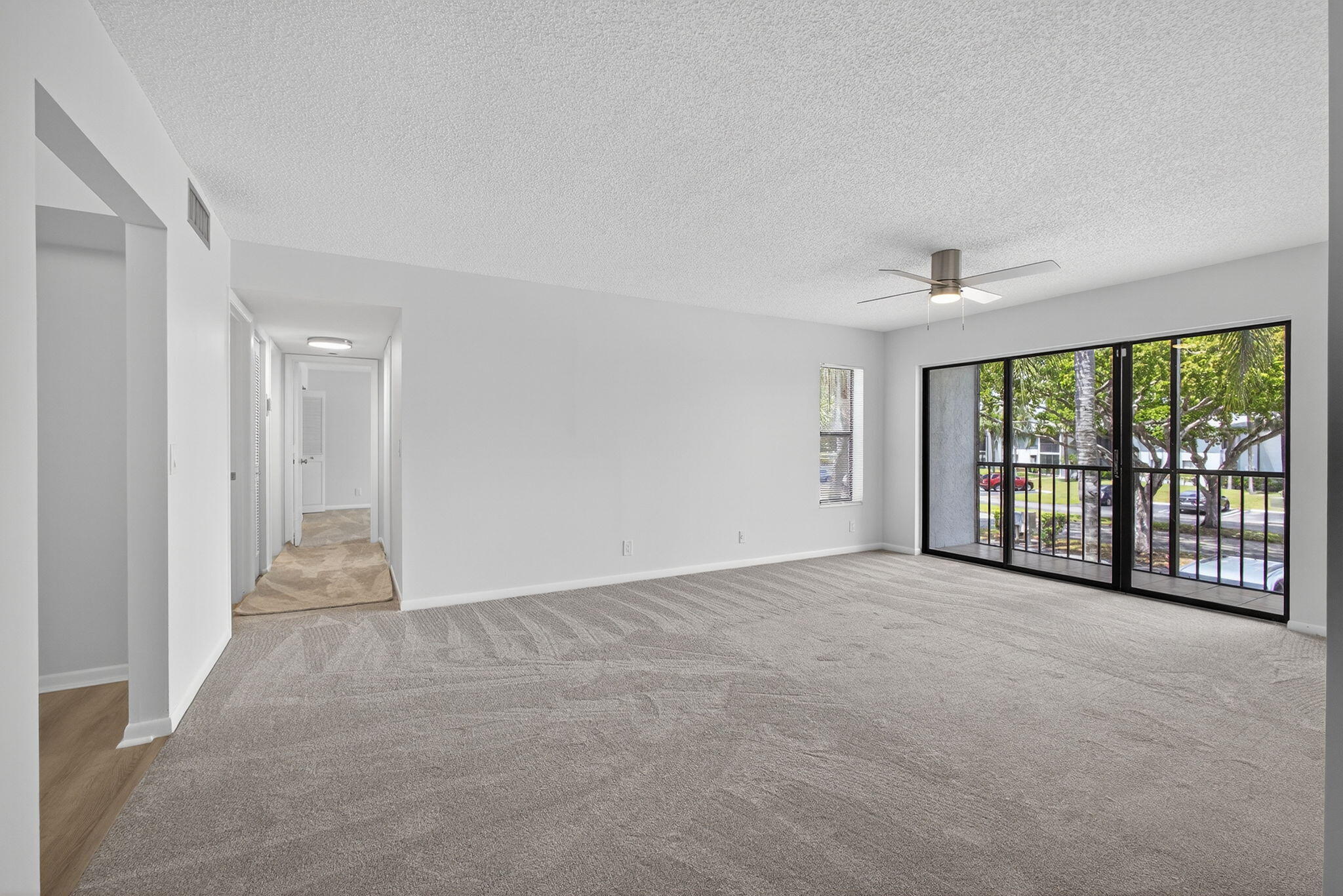 LOCATION, LOCATION, LOCATION, Newly painted, Light and Bright spacious 2 bedroom, 2 bathrooms. NEW Stainless Steel Appliances, NEW lifetime waterproof vinyl wood effect flooring, NEW high quality neutral carpeting , New Hot water heater, A/C 2023, walk in closet, eat in kitchen, inside laundry room with full size Washer & Dryer, Brand NEW screens, large attic storage space. This unit has a prime parking spot directly outside the unit and plenty guest parking. The seller is willing to contribute $5,000 towards buying the interest down or buyer's closing costs . Palm Club community is a 24 hour manned gated community with community pool, clubhouse, tennis courts, bike/jog pa th, & wooded landscaping. conveniently located close to I 95, Major shopping, Fine Dining, 10 minutes to the airport.
