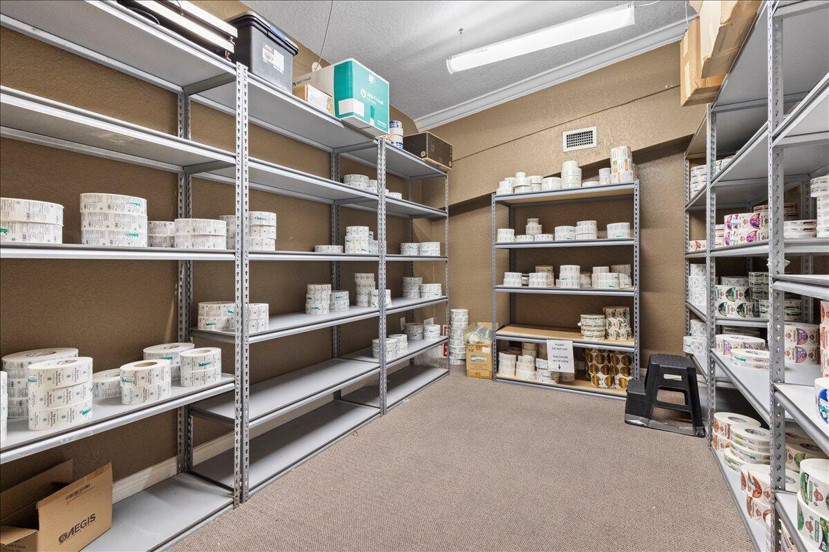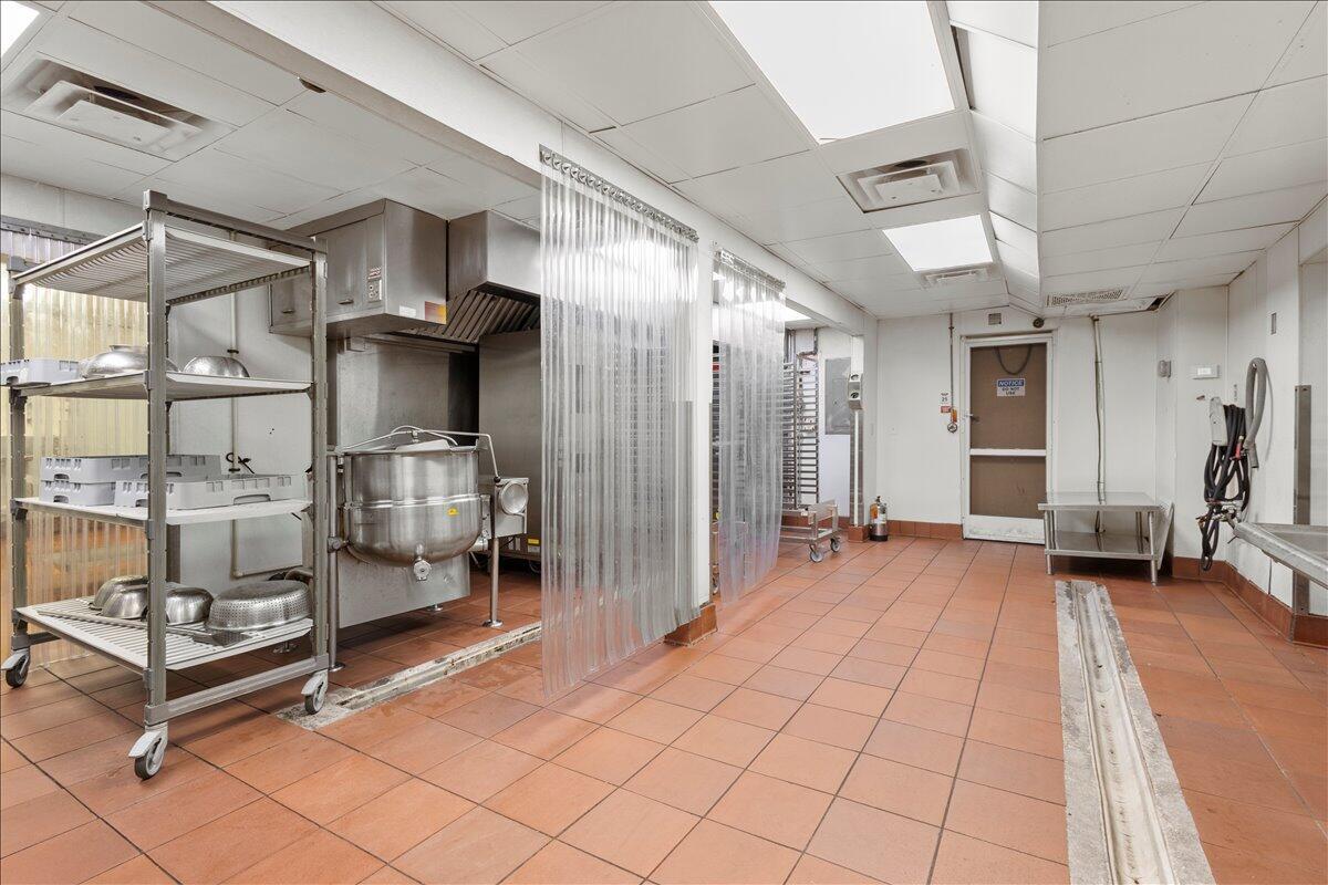Centralized flex industrial condo unit built out as commercial kitchen facility. The unit contains 2,470 SF of ground floor area with an additional 1,400 SF of 2nd floor storage & offices. Turnkey food production facility with tile floors and floor drains, grease trap, 16' hood, 100% AC'd and upgraded plumbing system. Excellent setup for catering & food distribution! Additional units available for larger kitchen area and refrigerator / freezer space.