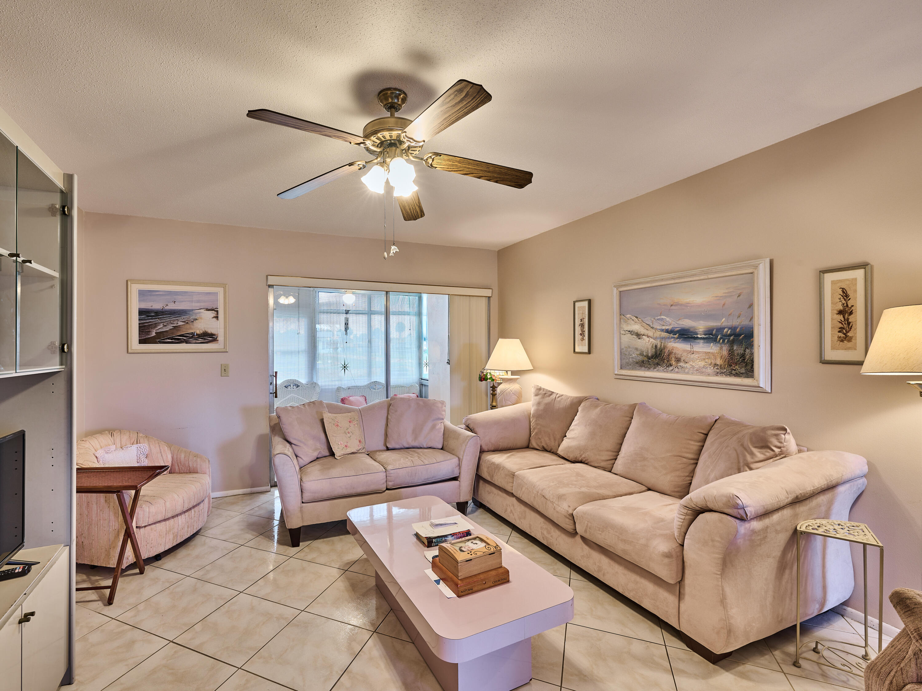 Enjoy the best of South Florida living in this fully furnished, light and bright 2-bedroom, 2-bathroom seasonal rental located in the highly desirable 55+ community of Cresthaven Villas in West Palm Beach. This well-maintained villa features ceramic tile flooring throughout and a spacious layout designed for comfort and ease. The cheerful kitchen is equipped with all major appliances, cookware, and dishware--perfect for seasonal residents looking for a turnkey stay. The sunroom offers flexible space for reading, relaxing, working remotely, or pursuing a hobby. The primary suite includes an en suite bathroom with a tiled walk-in shower and ample closet space. A second bedroom and full guest bathroom provide additional space for visitors or extra storage.Cresthaven Villas is an active adult community offering outstanding amenities, including a clubhouse, fitness studio, sauna, game room, library, craft room, and a heated community pool. Residents can enjoy social activities, clubs, and events designed to support an active and engaging lifestyle. Located just minutes from Palm Beach International Airport, I-95, shopping centers, golf courses, restaurants, and the beautiful beaches of the Atlantic coast, this seasonal condo rental is perfect for anyone looking to enjoy warm weather, convenience, and a vibrant community.