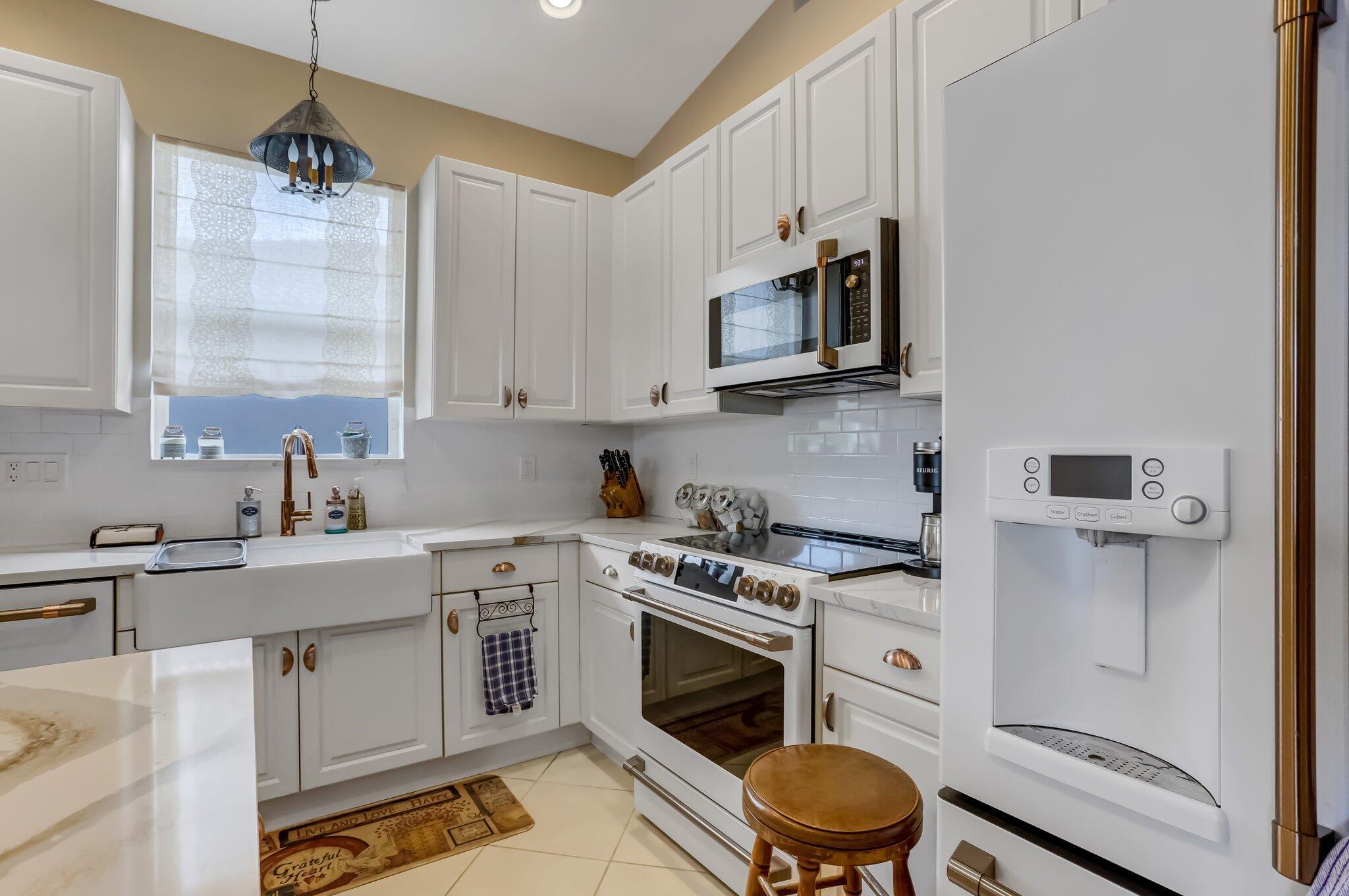 Welcome to this beautifully maintained 3-bedroom, 2-bath residence nestled in one of West Palm Beach's most sought-after active adult communities. This home features a thoughtfully designed split floor plan, offering both privacy and comfort. The recently updated kitchen is a true showpiece, boasting elegant finishes and premium GE Cafe appliances--perfect for both everyday living and entertaining. Enjoy tranquil lake views from the spacious screened-in lanai, ideal for relaxing or hosting guests. Centrally located, you're just minutes from shopping, dining, and all the vibrant amenities West Palm Beach has to offer.