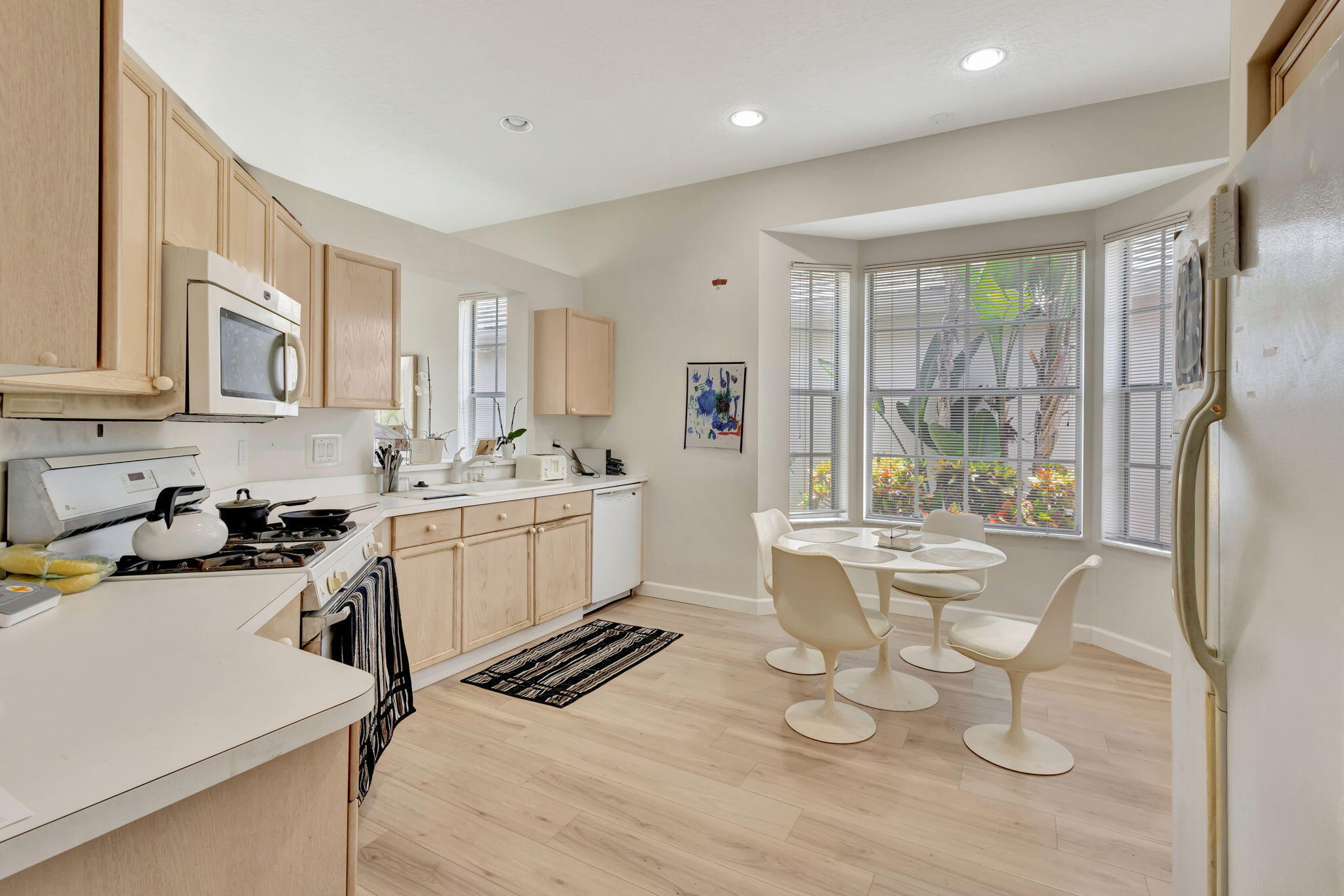 3 bedroom 3 bath with 2 car garage lake-front golf home in gated Masters At Eagleton section of PGA National. All one floor (no stairs!) All new wood-like luxury vinyl floors throughout. Master bedroom and living areas have lake views. Covered patio facing lake. Newer roof and AC (2015). Room to add a pool if you wanted one. This section of PGA National has a live security guard gate. Golf memberships are available but not required.