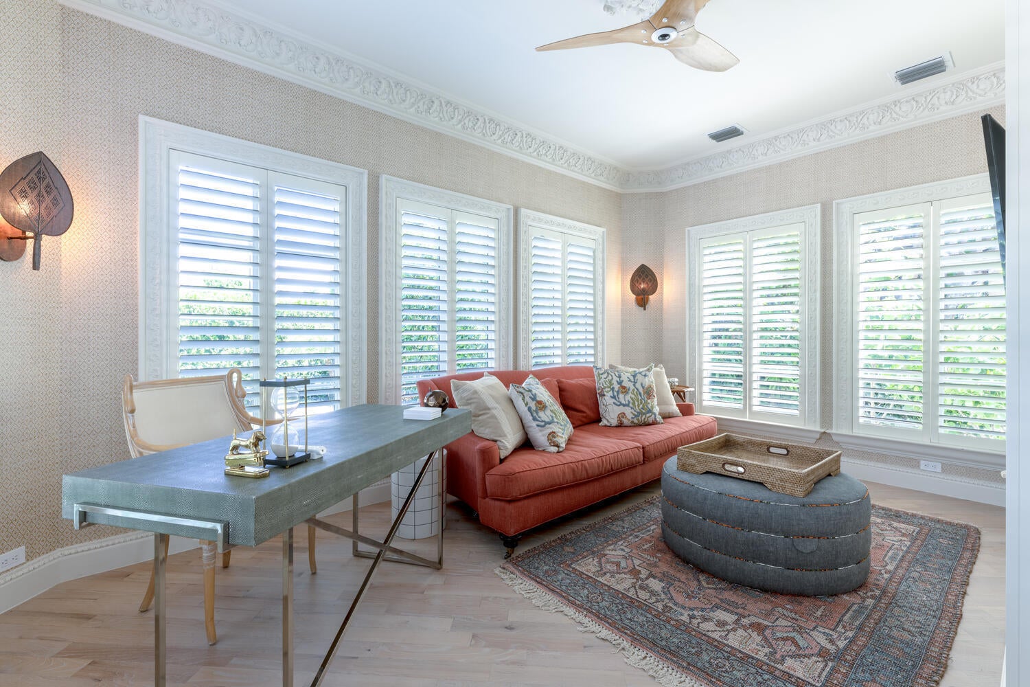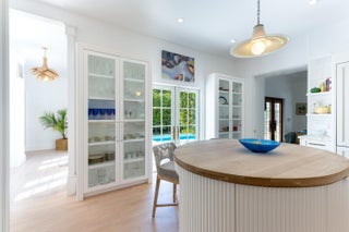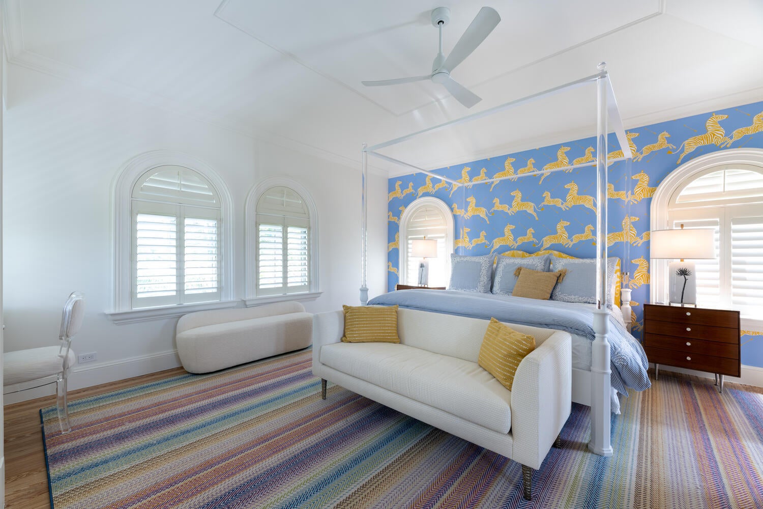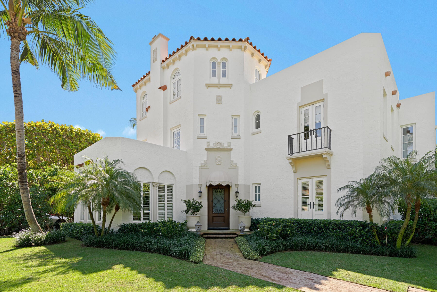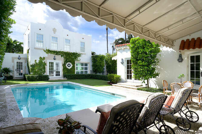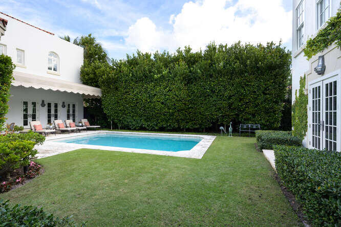 Exceptional Ocean Block Rental on Brazilian Ave. Just steps from the beach, Worth Avenue, and dining, this stunning property includes a 4-bedroom, 4.5-bath main house and a 2-bedroom, 2.5-bath guest house. The home is filled with exquisite architectural details and flooded with natural light. The main level features a grand double living room, formal dining area, library, and family room. The chef's kitchen is equipped with a Lacanche range and storage island. Soaring ceilings, light oak hardwood floors, an elevator, and gracefully curving staircases enhance the home's charm. French doors open to a coquina stone-covered patio and heated pool, surrounded by lush landscaping for ultimate privacy. Outdoor features include an outdoor shower, electric gate, and two car charging stationsThe garage boasts a gym/exercise area, a spacious laundry room with a steam closet, and a half bath. The charming 2-bedroom guest house includes a kitchen, living room, and breakfast nook. Beautifully decorated and meticulously appointed throughout. Seasonal rate is $100,000/mo