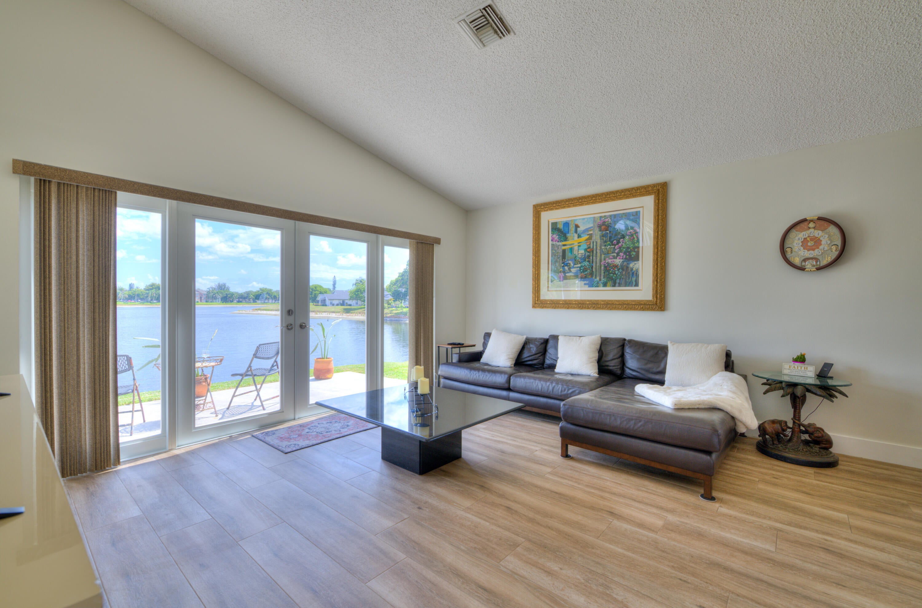 OVERSIZED LOT ON THE LAKE, CORNER HOUSE ON CUL DE SAC! BEAUTIFULLY RENOVATED 3 BEDROOMS, 2 BATHS, HOME IN A TRANQUIL NEIGHBOURHOOD, NATURAL LIGHT ABOUNDS FROM EAST, NORTH, WEST EXPOSURES. CATHEDRAL CEILINGS IN THE LIVING ROOM CREATE A SENSE OF GRANDEUR: AN OPEN KITCHEN WITH GRANITE COUNTERTOPS, MAKE IT A CHEF'S PARADISE. WOODEN AND PORCELAIN FLOORS COMPLEMENT THE WELL PROPORTIONED ROOMS. CLOSETS GALORE W/A WALK-IN CLOSET IN THE PRIMARY BEDROOM. HURRICANE WINDOWS, 2 CAR GARAGE, WASHER/DRYER. SPACIOUS PATIO OVERLOOKING THE LAKE. COMMUNITY WITH CLUB HOUSE, POOL TENNIS AND PICKLE BALL COURTS. CALL FOR A PRIVATE SHOWING