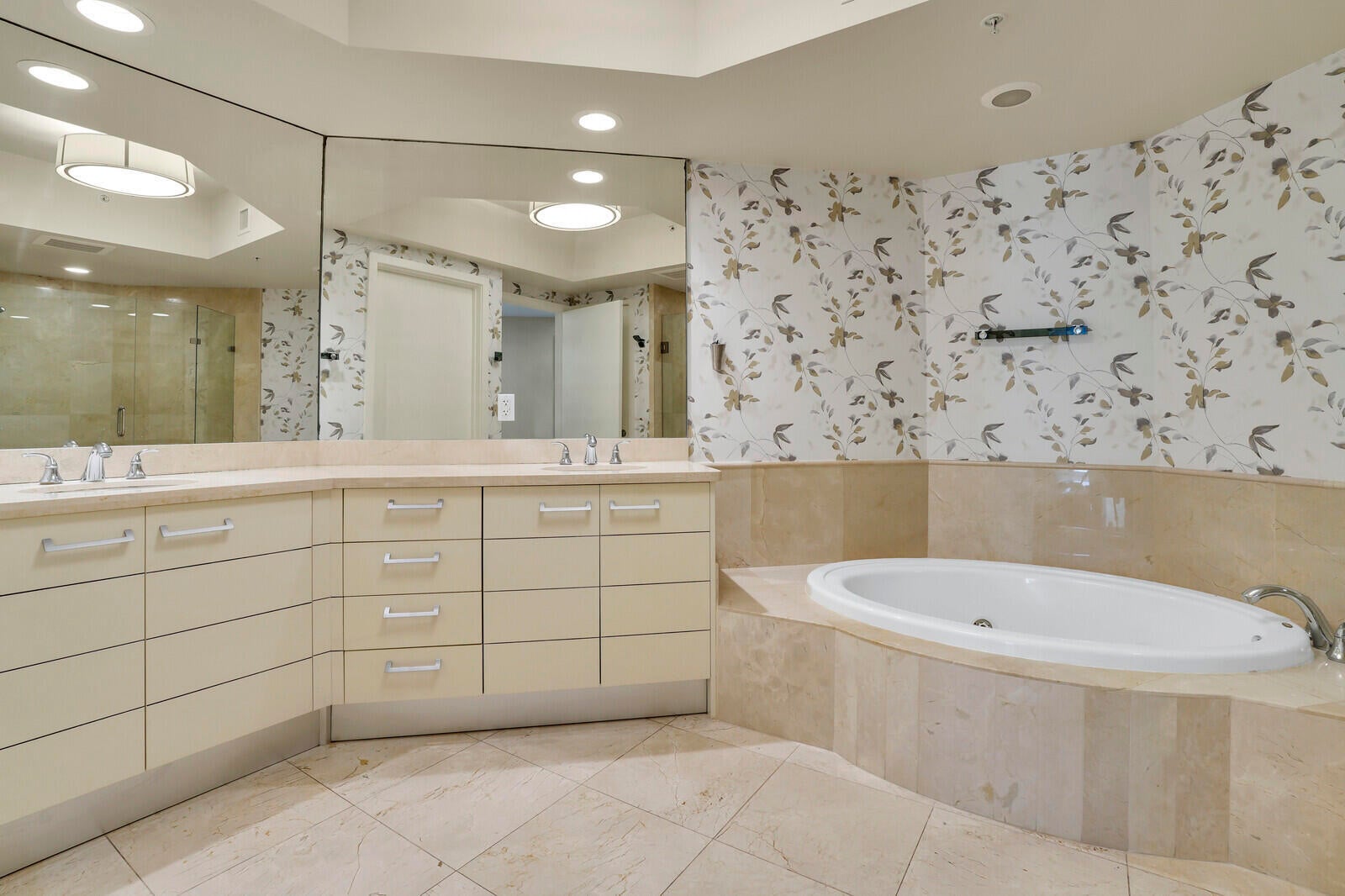 Inviting and spacious 3BDR/3BTH condo, outstanding Building services and amenities, exceptional location. Many custom upgrades and an attractive decor. Unique 1100 sf private patio with covered and open air areas presents numerous options for dining, seating, lounges and landscaping. Floor to ceiling impact sliding glass doors span nearly the entire unit, providing lots of natural light. The Great Room features multiple living areas plus direct access to the expansive patio. The Landmark is Palm Beach Gardens only luxury hi-rise community with an exceptional location in the heart of the upscale PGA Blvd. corridor. Located across from the Gardens Mall and the newly renovated upscale Downtown Palm Beach Gardens lifestyle center. Walking distance to Whole Foods, Lifetime Fitness,fine restaurants and shops, as well as a lovely walking path around Lake Victoria and world class shopping at the Gardens Mall. Many desirable resort style amenities including: 24 hour valet parking, front desk personnel and concierge service, sun-deck level heated salt water pool which has been refurbished, fitness center, Theater, social and game rooms, plus generous BBQ and outdoor dinings areas and a putting green. Close to the beautiful Juno and Jupiter beaches, many excellent golf courses and boating, as well as PBI and private airports. Truly an outstanding Condo, location and amenities!