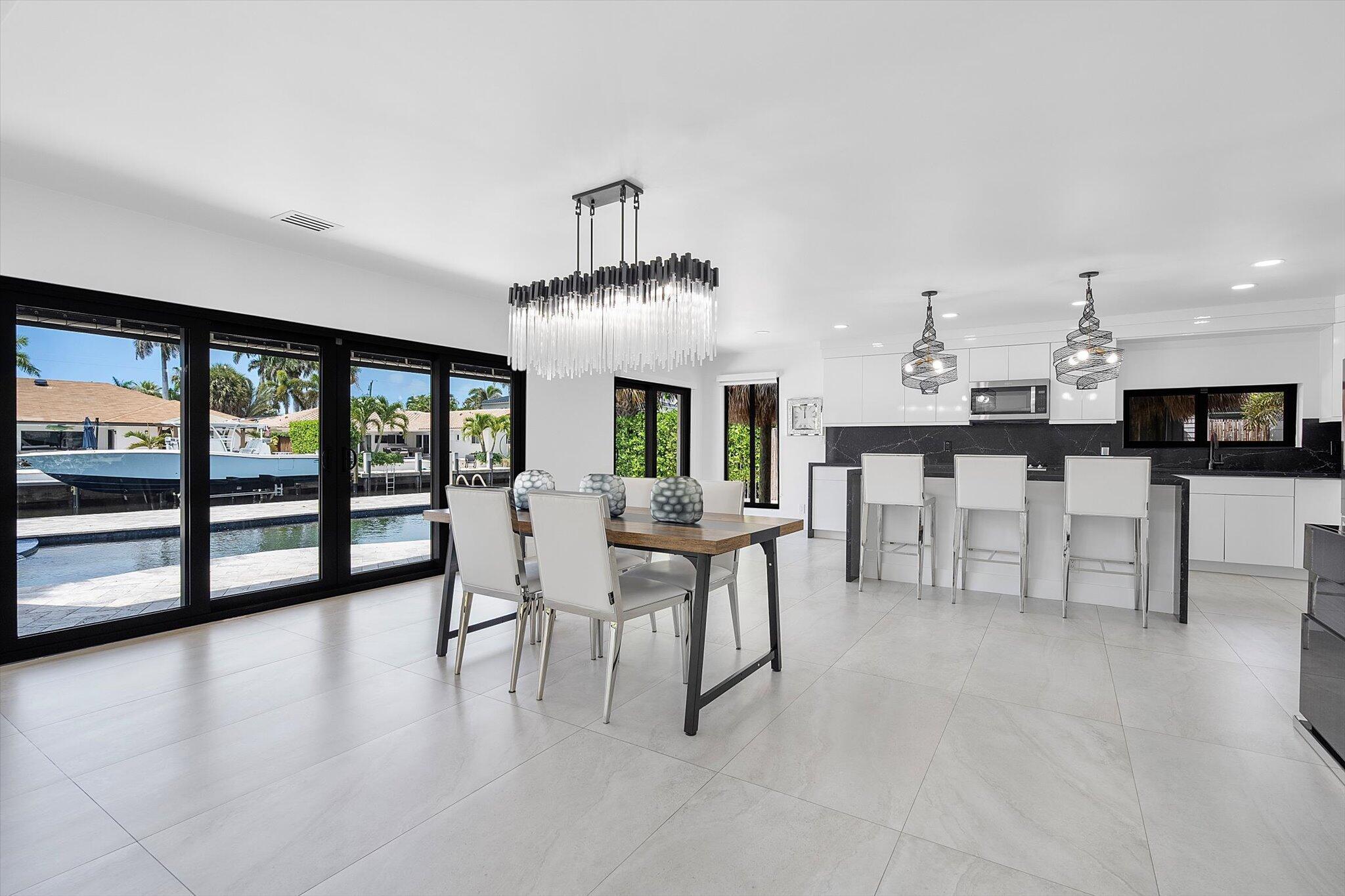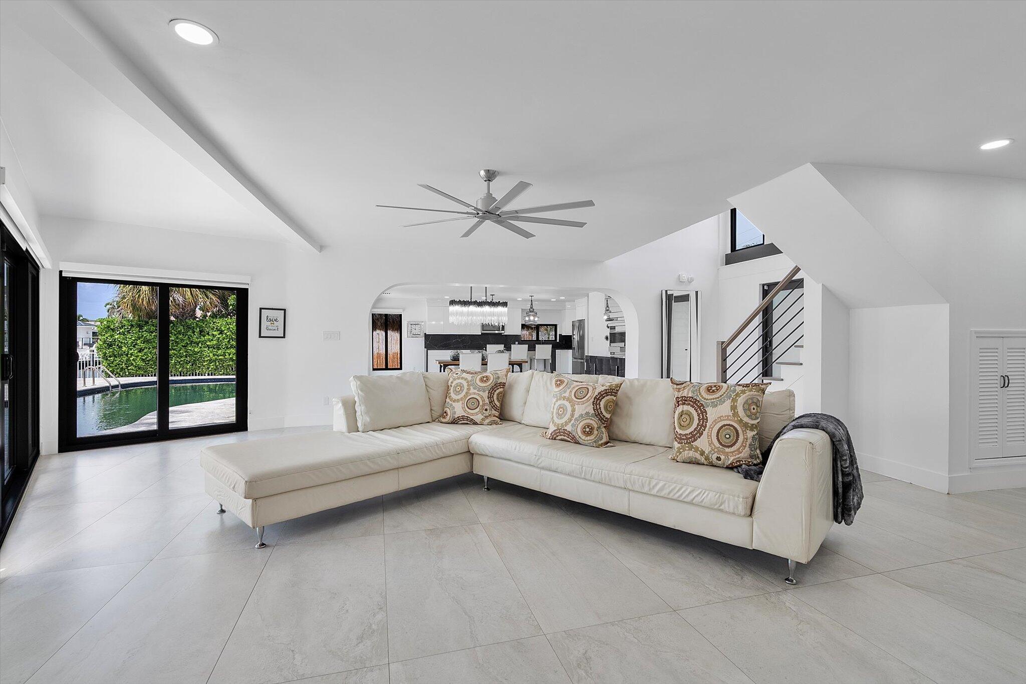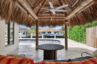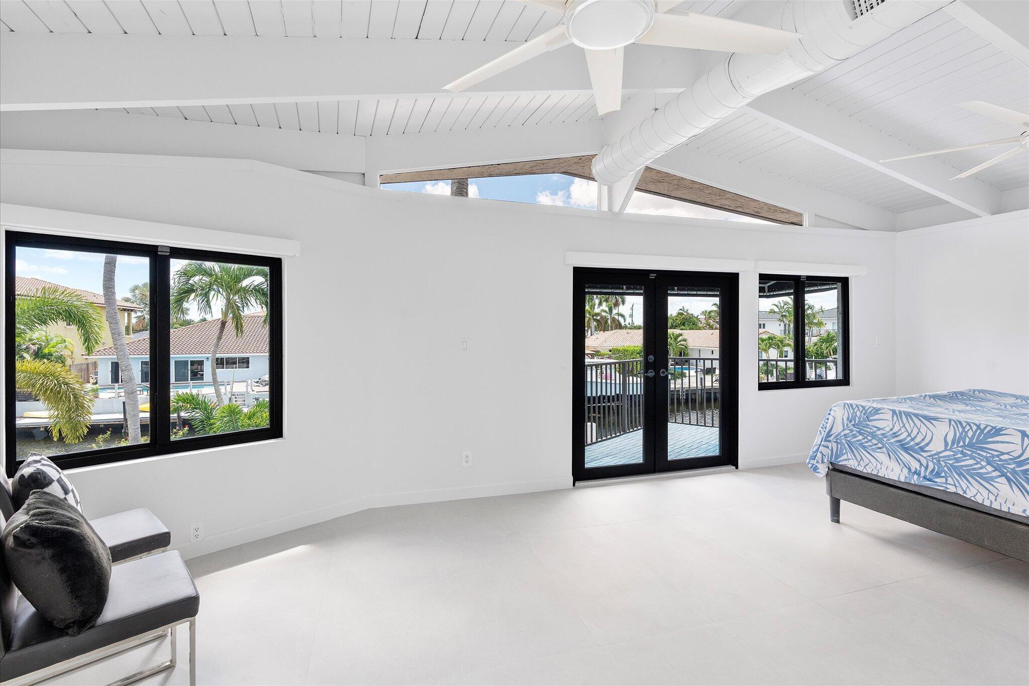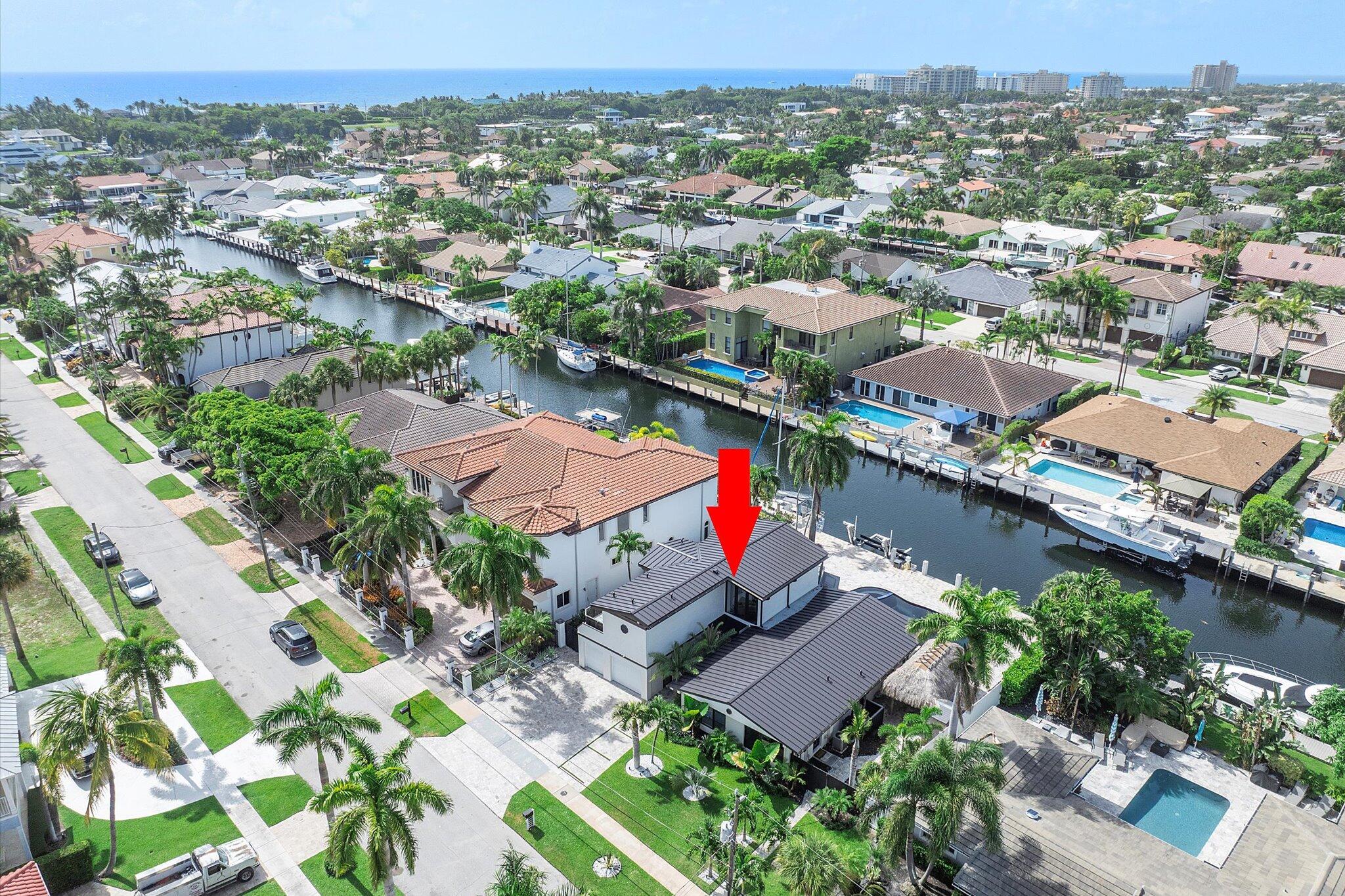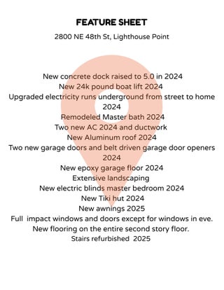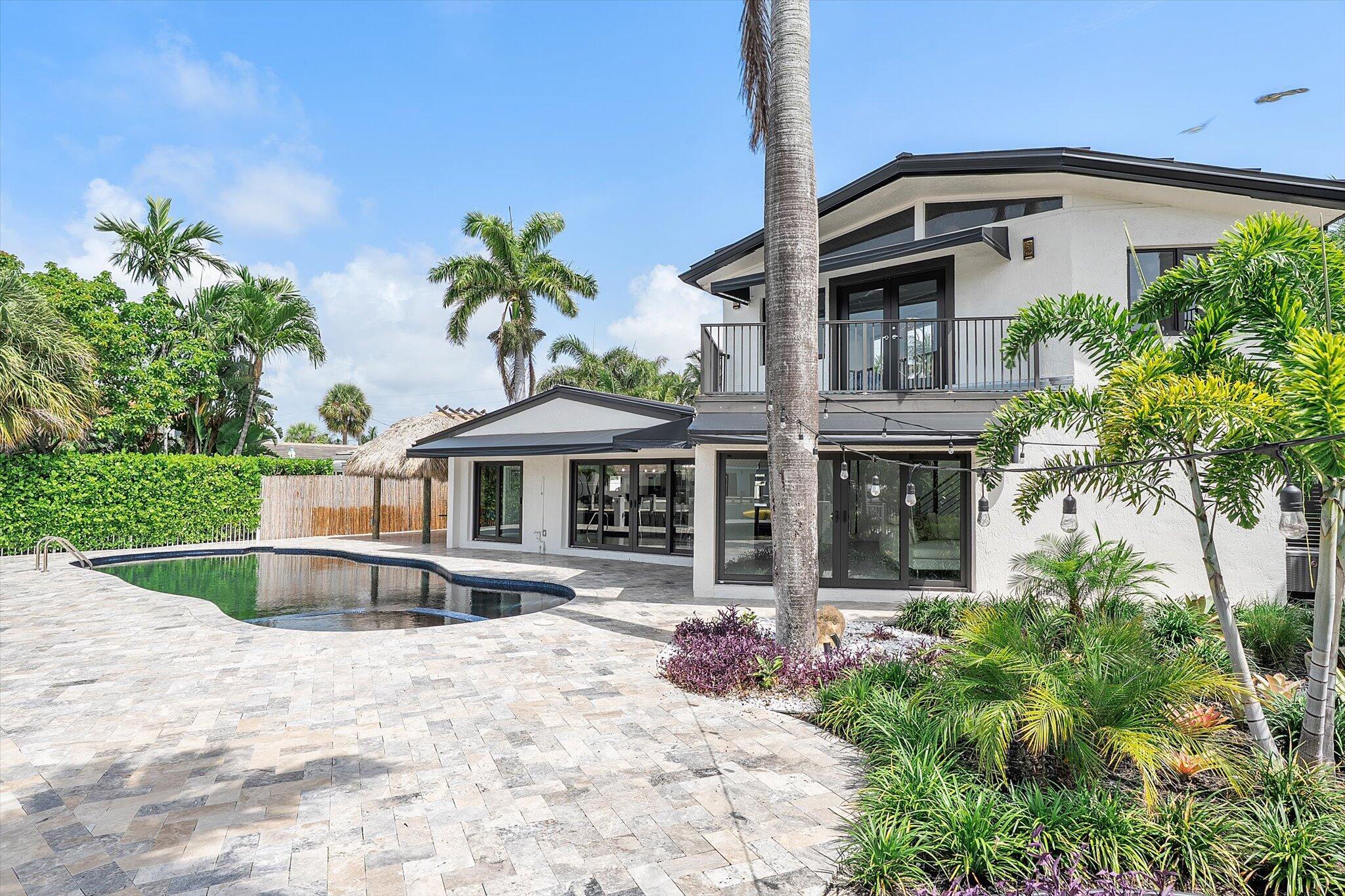 Boater's dream home located on a deepwater canal with no fixed bridges in Lighthouse Point offers the best of South Florida living--whether you're an avid boater, outdoor entertainer, or simply looking for a move-in-ready waterfront property. The home includes an 80-foot dock, fully rebuilt in 2024 with raised concrete (to 5.0 elevation), along with a 24,000 lb boat lift. A new aluminum roof was installed in 2024, along with an upgraded electrical system and two new A/C units with all-new ductwork. The home has a split floor plan, with the primary suite located upstairs for added privacy and the additional bedrooms downstairs on the opposite side of the house.The primary bathroom was fully remodeled in 2024. The second floor features new flooring. The patio, pool, and deck area have all been remodeled, creating a clean, functional outdoor space ideal for relaxing or entertaining. The saltwater pool and spa are both heated and feature updated equipment, including a new shared heater added in 2024. The entire system is controlled by Aqualink, allowing you to manage settings remotely from your smartphone. Additional improvements include two new garage doors with belt-driven openers, an epoxy-coated garage floor, and new electric blinds in the primary bedroom. A new tiki hut (2024), new awnings (2025), and extensive landscaping complete the outdoor transformation. The landscaping is enhanced with Hughes smart lighting, which can be controlled via smartphone to create the perfect outdoor ambiance. The home also features impact windows and doors. With major updates already completed, this home offers low-maintenance, turnkey waterfront living in one of Lighthouse Point's most desirable neighborhoods.