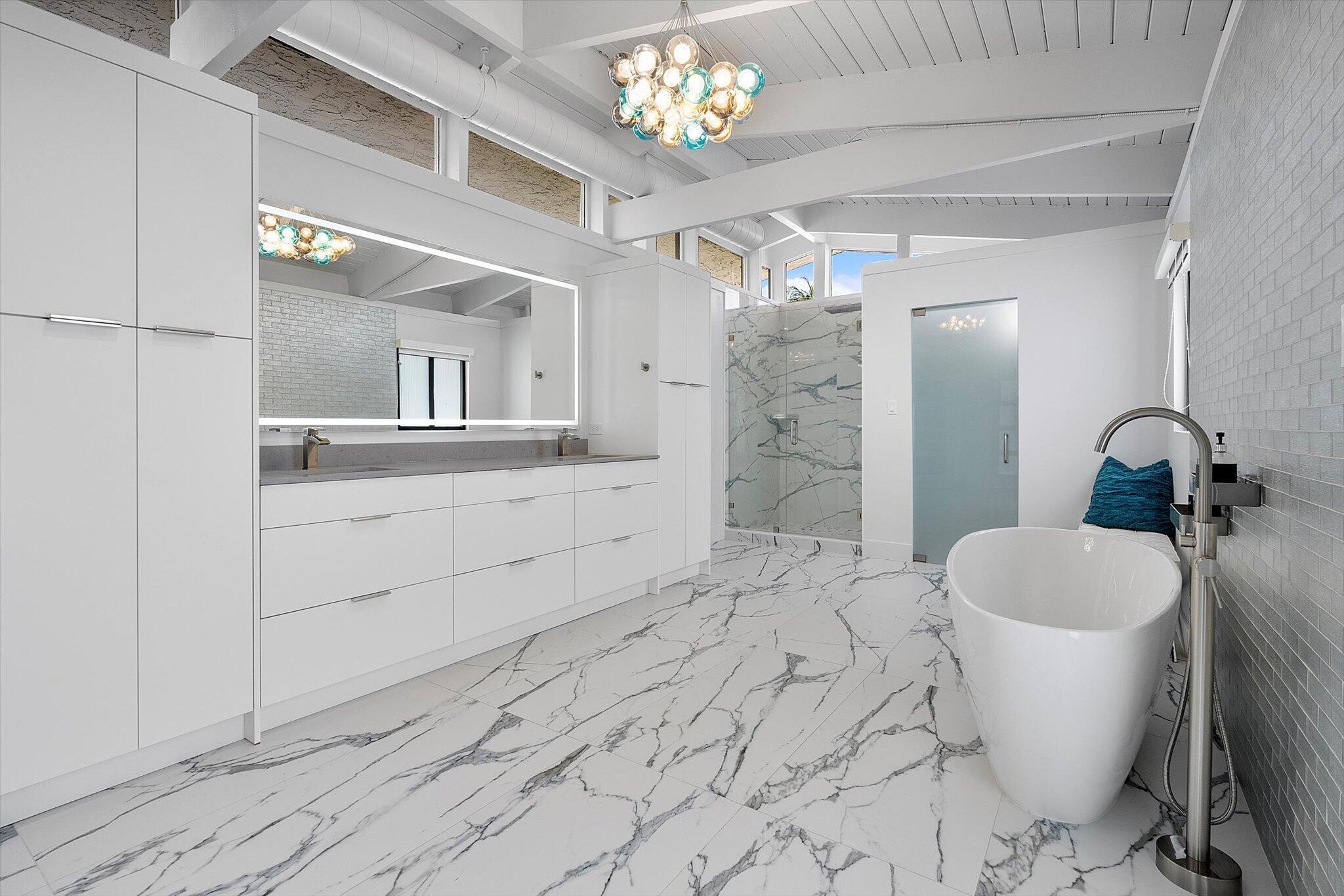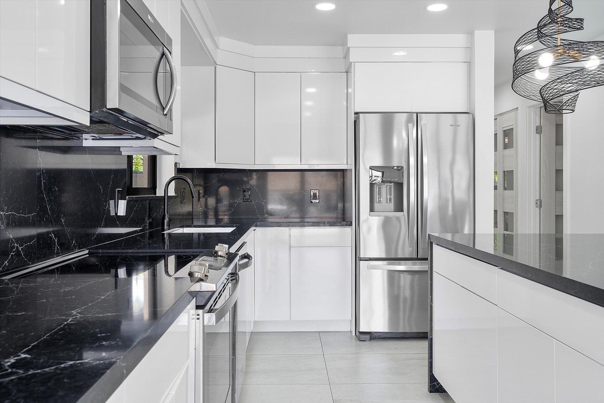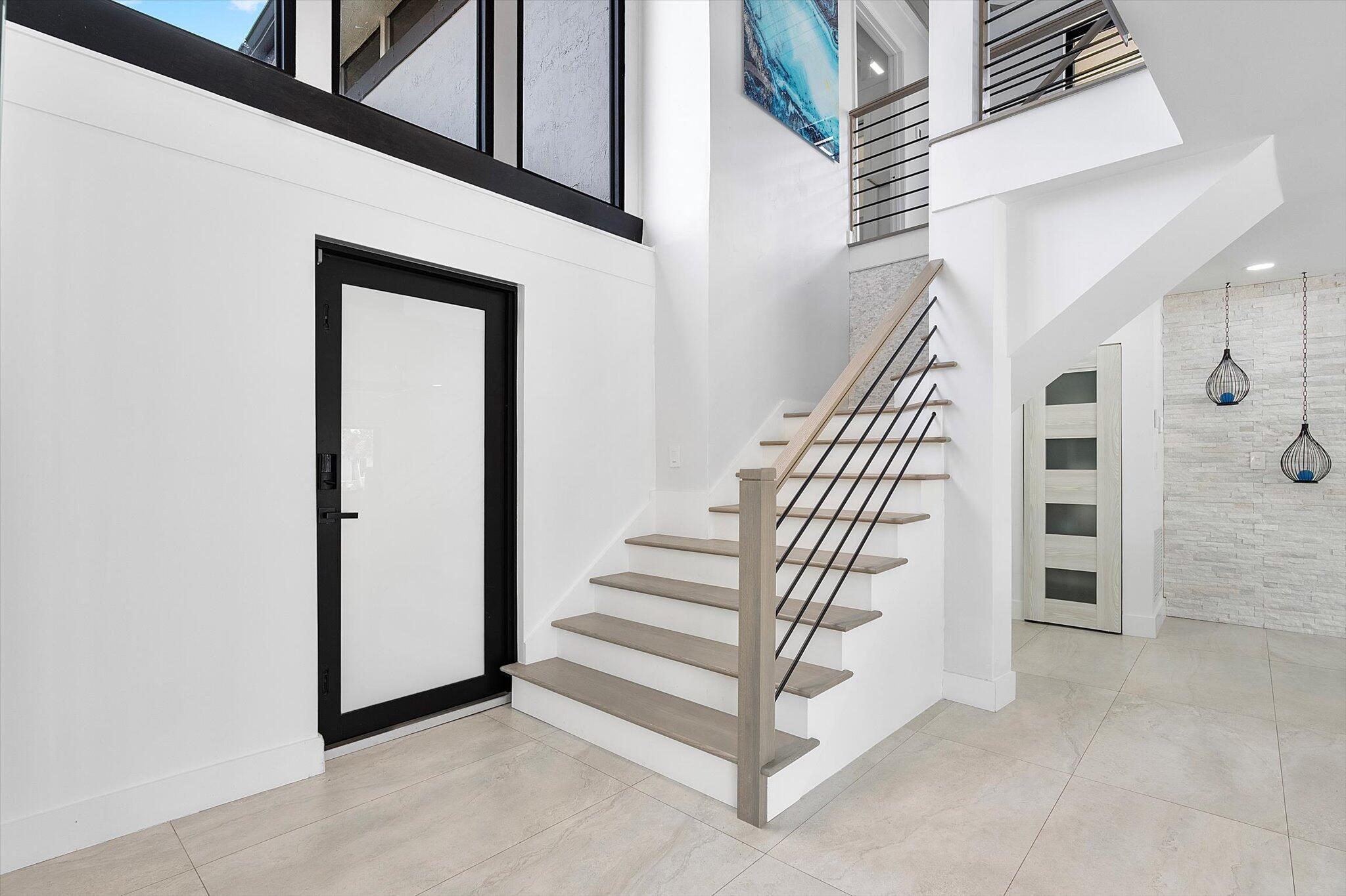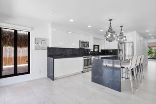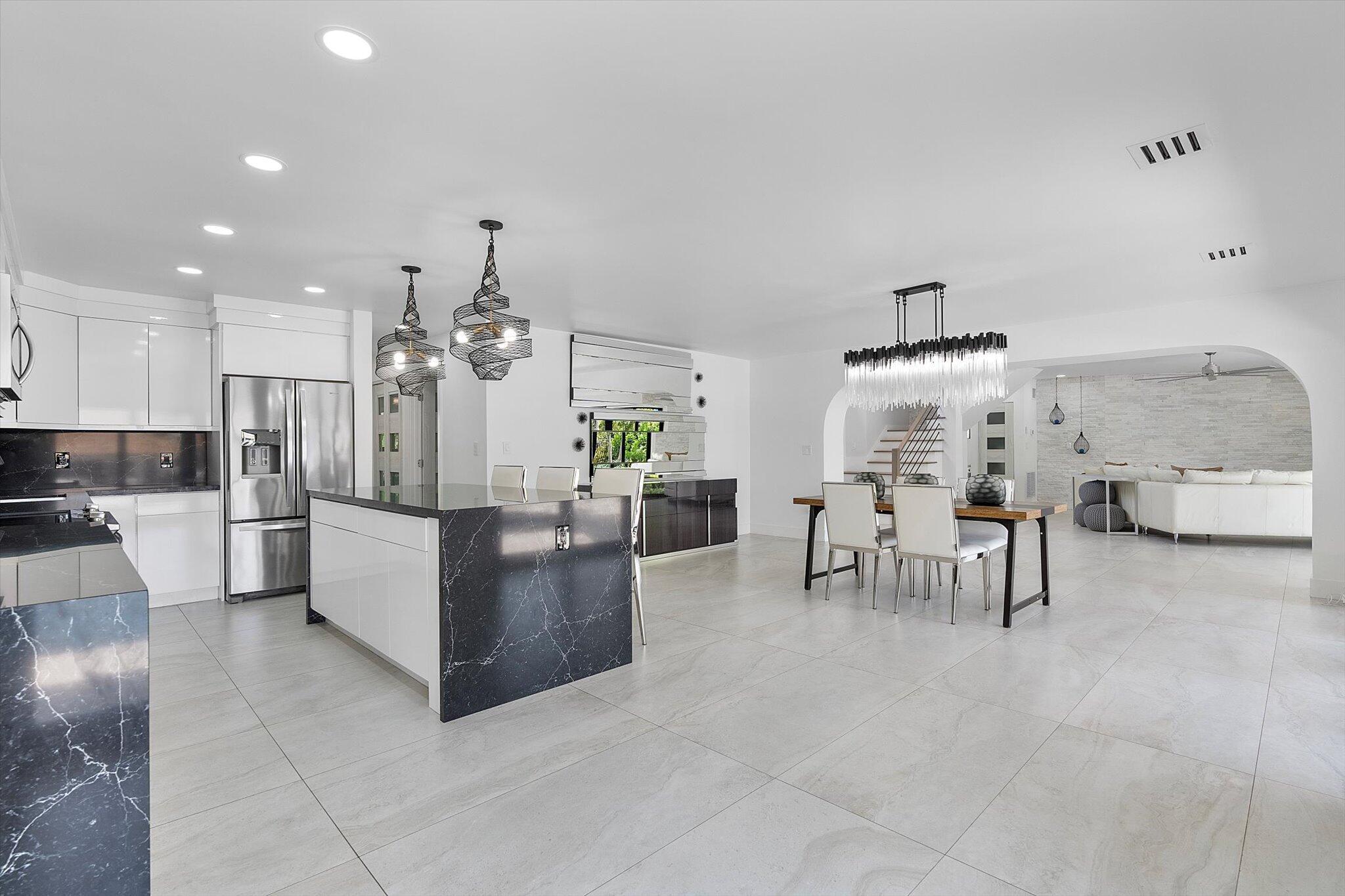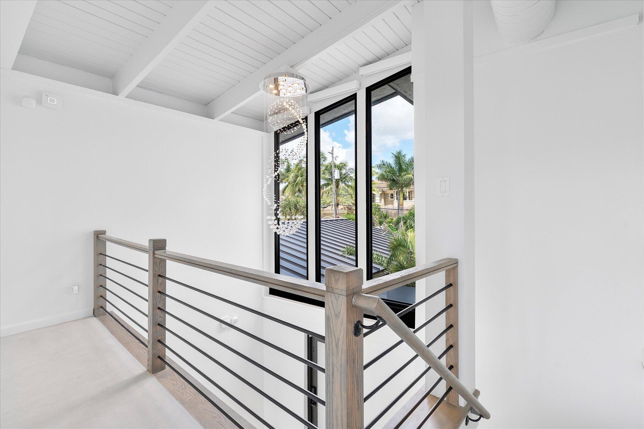 Boater's dream home located on a deepwater canal with no fixed bridges in Lighthouse Point offers the best of South Florida living--whether you're an avid boater, outdoor entertainer, or simply looking for a move-in-ready waterfront property. The home includes an 80-foot dock, fully rebuilt in 2024 with raised concrete (to 5.0 elevation), along with a 24,000 lb boat lift. A new aluminum roof was installed in 2024, along with an upgraded electrical system and two new A/C units with all-new ductwork. The home has a split floor plan, with the primary suite located upstairs for added privacy and the additional bedrooms downstairs on the opposite side of the house.The primary bathroom was fully remodeled in 2024. The second floor features new flooring. The patio, pool, and deck area have all been remodeled, creating a clean, functional outdoor space ideal for relaxing or entertaining. The saltwater pool and spa are both heated and feature updated equipment, including a new shared heater added in 2024. The entire system is controlled by Aqualink, allowing you to manage settings remotely from your smartphone. Additional improvements include two new garage doors with belt-driven openers, an epoxy-coated garage floor, and new electric blinds in the primary bedroom. A new tiki hut (2024), new awnings (2025), and extensive landscaping complete the outdoor transformation. The landscaping is enhanced with Hughes smart lighting, which can be controlled via smartphone to create the perfect outdoor ambiance. The home also features impact windows and doors. With major updates already completed, this home offers low-maintenance, turnkey waterfront living in one of Lighthouse Point's most desirable neighborhoods.