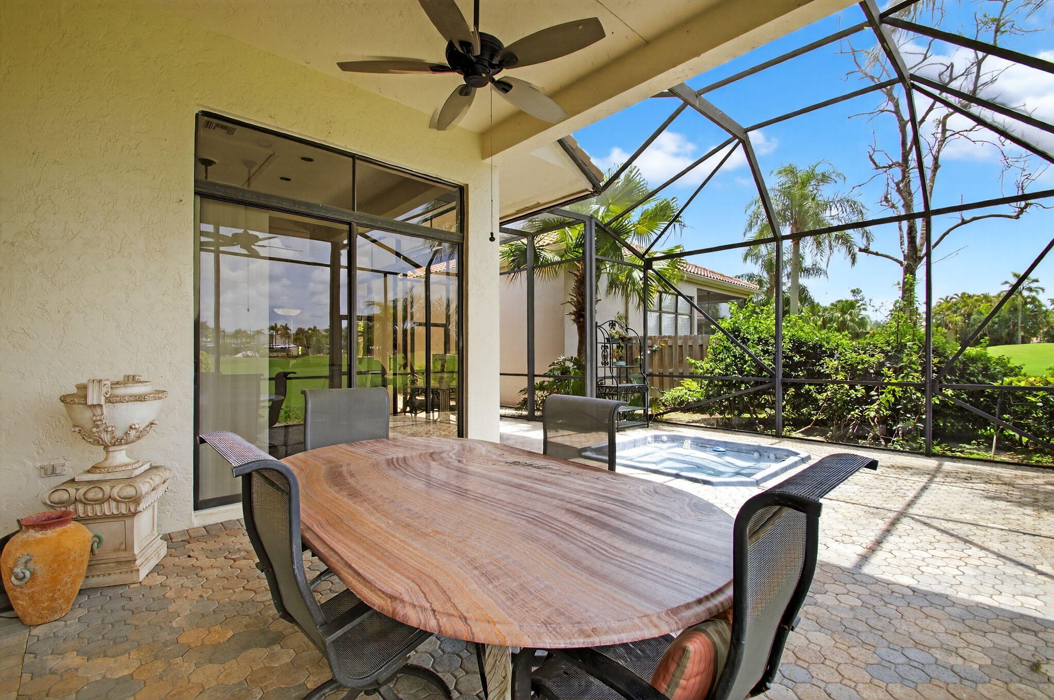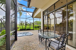 Welcome to your new home in Wycliffe Golf & Country Club! Situated on the 9th hole of the prestigious West Golf Course, this single-family residence offers panoramic golf course and clubhouse views right from your backyard. The expansive, screened-in and covered patio with an in-ground jacuzzi creates the perfect setting for outdoor living, relaxation, and entertaining. A Social Membership is required to be transferred with the rental, granting you full access to Wycliffe's renowned amenities, social events, dining, and more. The property is offered fully furnished and turnkey. Just bring your suitcase and start enjoying the country club lifestyle!
