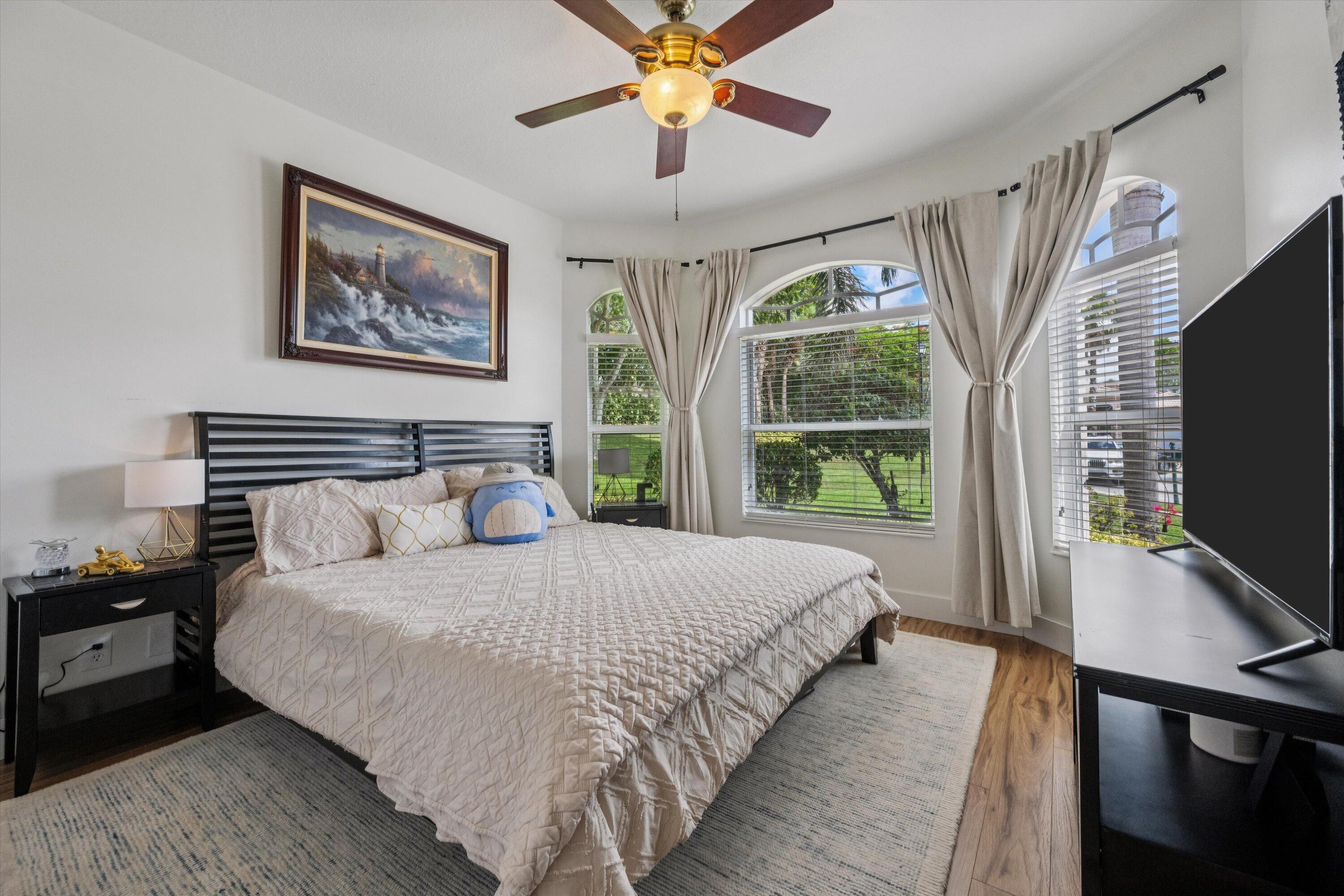 Welcome to this beautifully maintained 3-bedroom, 2-bath home located on an oversized corner lot in the highly desirable 55+ community of Villaggio. Situated on a quiet cul-de-sac, this home offers a peaceful, enclosed patio with serene lake views--perfect for relaxing or entertaining. The spacious eat-in kitchen is designed with beautiful white cabinets , granite countertops, and ample storage. The open-concept Great Room layout provides a seamless flow between living and dining areas, while the split-bedroom floor plan offers added privacy. The primary suite includes dual walk-in closets, his-and-hers vanities, a soaking tub, and a separate walk-in shower. The third bedroom does not have a closet and is ideal as an office, den, or guest room.Villaggio offers a truly active and resort-style lifestyle with two clubhouses (social and athletic), indoor and outdoor pools, tennis, pickleball, racquetball, and bocce courts. Residents also enjoy a fitness center, café, salon, card rooms, live entertainment, and an array of social clubs and activities. With beautifully landscaped grounds and countless amenities, Villaggio is the perfect place to call home.