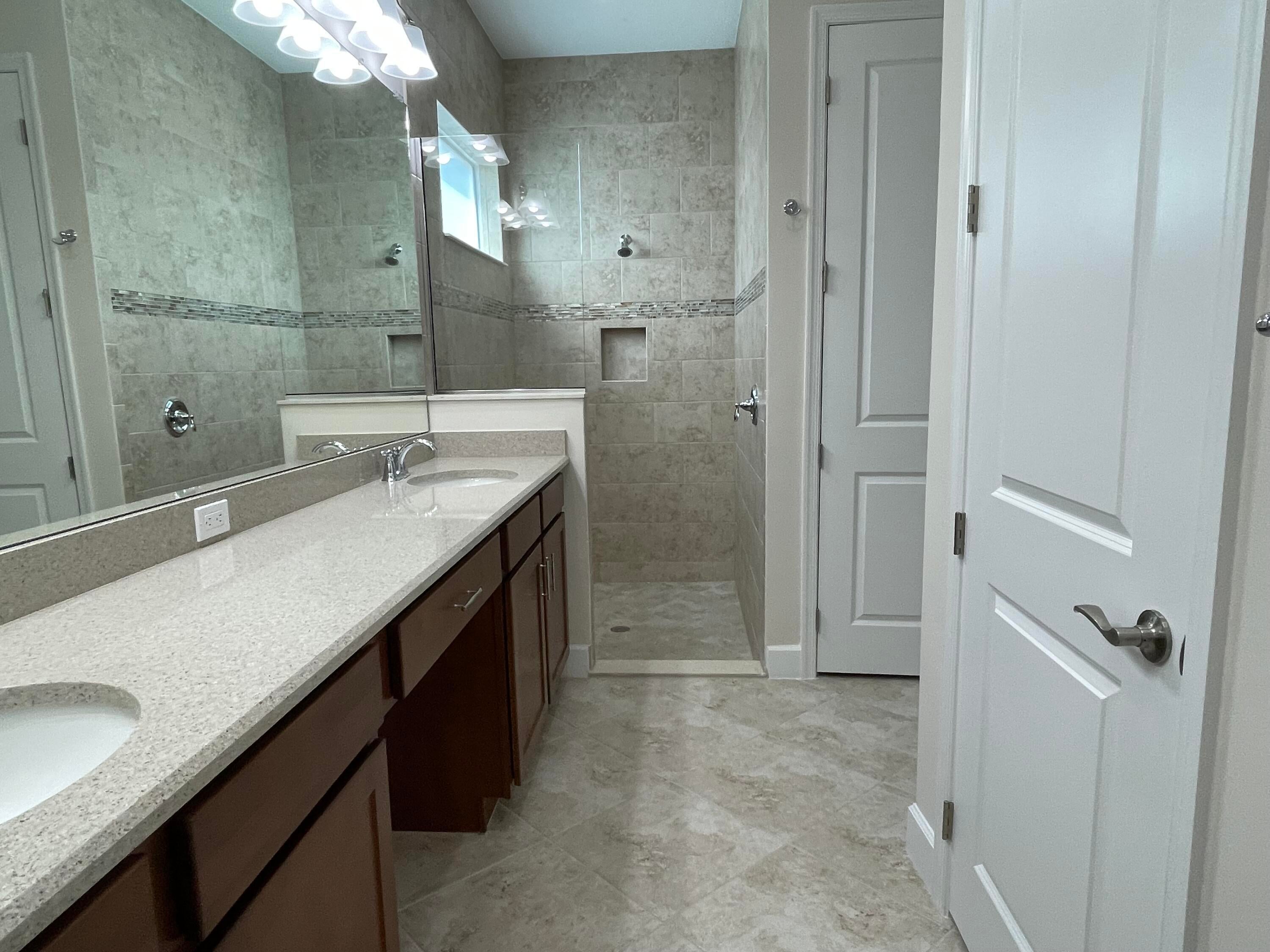 This brand new home has a classic and elegant design, upon entering the house, you are greeted with a large and open living area. The living room features large windows that let in plenty of natural light. There's also a dining area, and a large kitchen with stainless steel appliances, a center island, and plenty of counter space. Upstairs, there's a grand master suite with a spacious bedroom, a walk-in closet, and a luxurious master bathroom with a double vanity, a soaking tub, and a separate shower. There are also two additional bedrooms with a shared bathroom and a laundry room. Overall, this two-story home with a double master is perfect for a family looking for a spacious, high-end, and stylish living space.