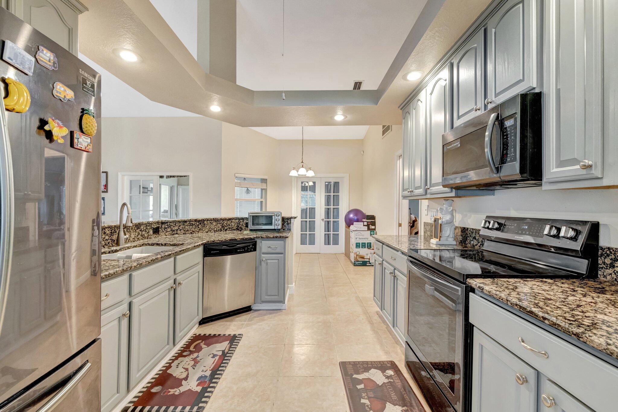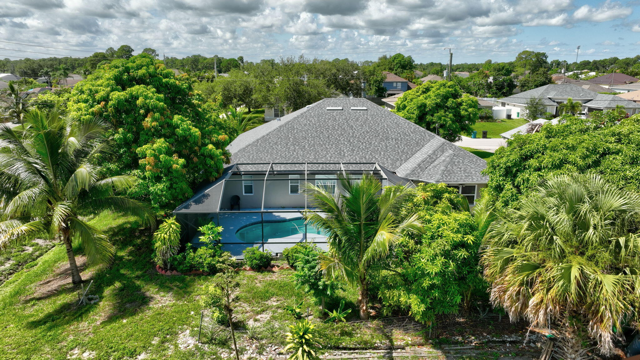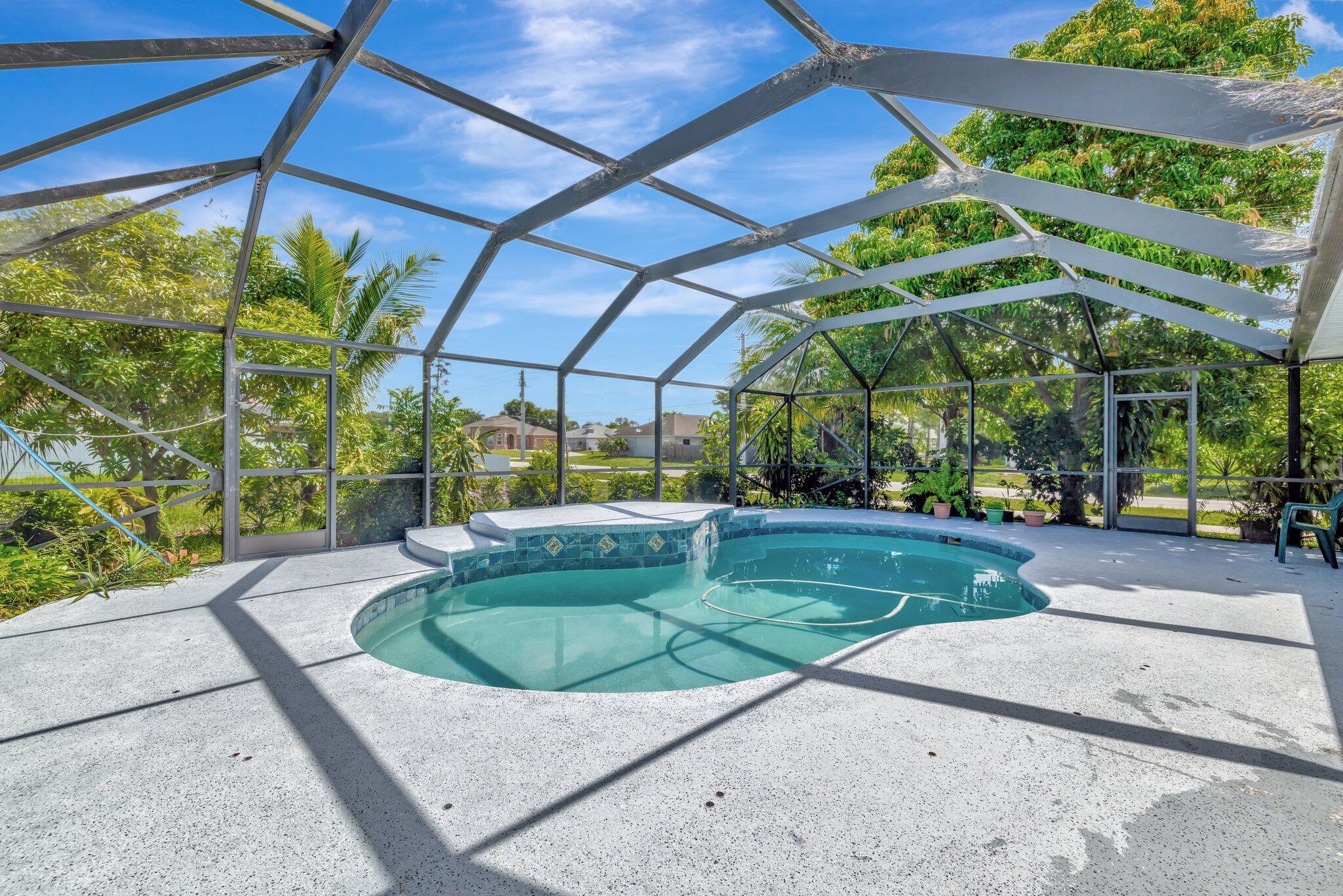Take a look at this lovely Pool Home 4 bedroom 3 bath 2 car garage with a den home located in the Treasure Coast community. New roof, newer AC and water heater, The primary suite features high ceiling, sliding doors leading to enclosed patio which can be used as an office., walk-in closets. Primary bathroom includes a large wall in shower, new soaking jacuzzi tub, and dual vanity sinks. Large bedroom in the back which gives you privacy with a pocket door enclosure including bathroom. This home also offers a formal dining area, The kitchen included stainless steel appliances, new cabinets, granite counter tops, separate laundry room, shed in yard for storageMany Fruit Trees in yard which included Black Mango, Ackee, Sour Sop, Sweet Sop, Coconut, Pineapple, Lemon, Cherry, Peach, Guava, Guinep, conveniently located near shops, I95 NO HOA OR DEED RESTRICTIONS. Call to schedule your private tour today!