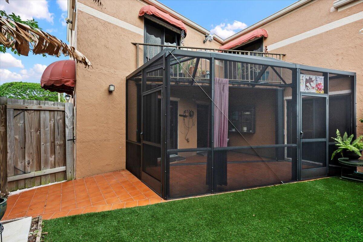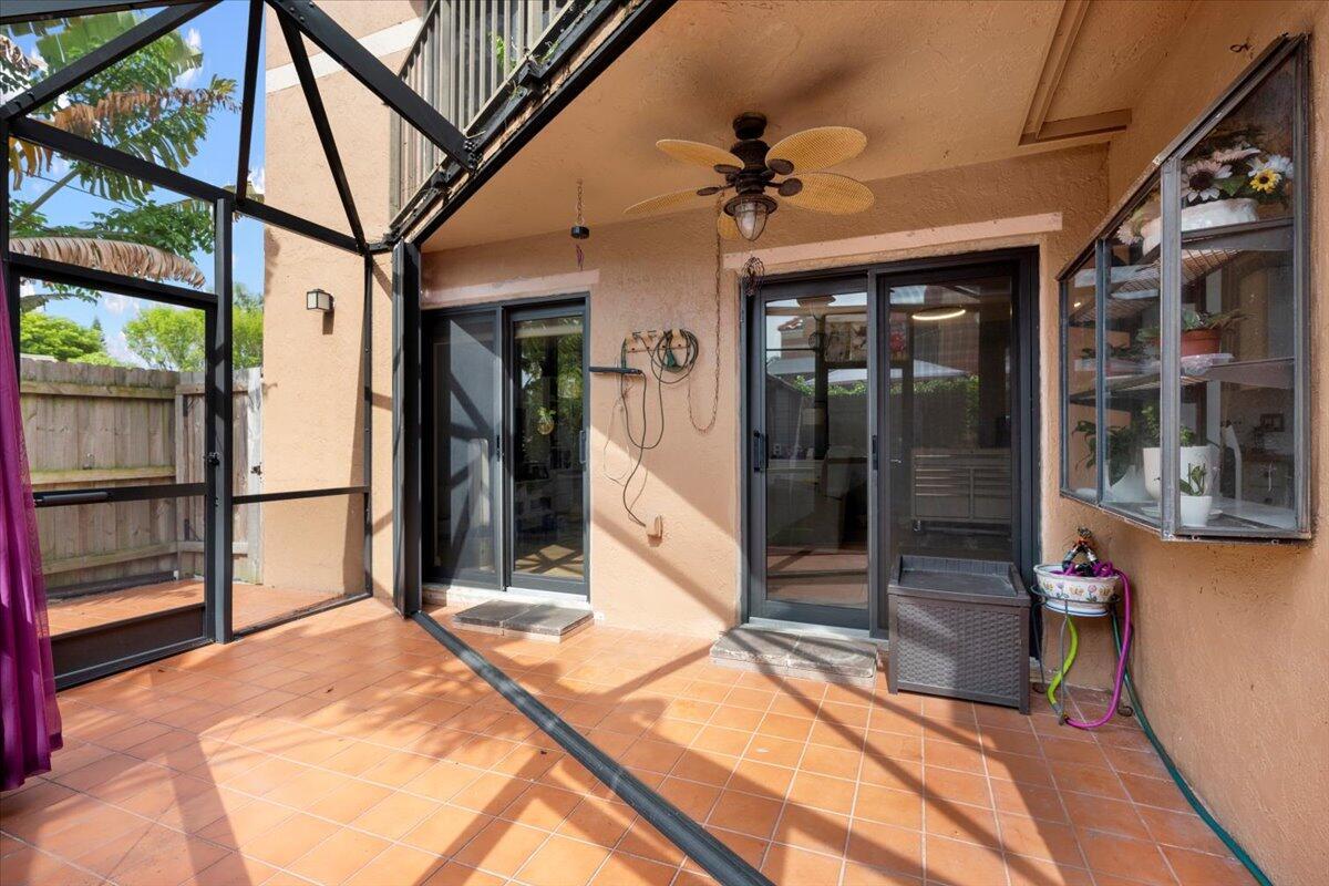 Rare and beautifully updated 3-bedroom, 3-bathroom townhome located in the heart of Palm Beach County. Featuring a highly desirable layout with one bedroom and full bathroom conveniently located on the first floor, this home is perfect for guests, multigenerational living, or a private office space.Enjoy stylish upgrades throughout, including porcelain plank tile flooring, updated bathrooms, and custom closet systems. The sleek, open kitchen is outfitted with new Samsung Bespoke appliances, blending high performance with designer style.Step outside to a private screened-in patio with lush artificial turf--ideal for entertaining or relaxing with low maintenance. Stay comfortable year-round with a brand-new A/C unit and Google Nest Temperature. HOA $295/ month includes bldg insuranceSensors throughout the home, allowing personalized climate control in every room. A 2023 roof and full impact windows and sliders add peace of mind and energy efficiency. Additional highlights include two deeded parking spaces, a community pool just steps from your door, and a central location just minutes from the beach, top-rated dining, retail, PBIA, I-95, and Florida's Turnpike. Whether you're looking for a full-time residence or a prime investment opportunity, this move-in-ready townhome has it all.