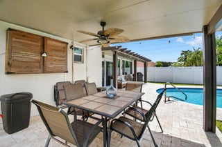 Beautifully maintained pool home with numerous upgrades and no HOA! Remodeled bathrooms (2018), updated travertine patio (2020), and resurfaced pool (approx. 2013). Roof, fence, and electrical panel all new in 2023. Hurricane-impact windows (2017) and aluminum awnings (2016) provide added peace of mind. 4-ton AC with UV light (5 yrs old), sewer lines just cleaned, and 3-year-old water heater. Converted 4th bedroom with private bath--perfect for a guest suite, gym, or office. Features include all-tile flooring, new fans and light fixtures, stylish black hardware on all doors, and lush landscaping with well-fed sprinklers. Enjoy the private backyard oasis with ample outdoor living space. Located near hospitals, shops, and more--this one has it all!
