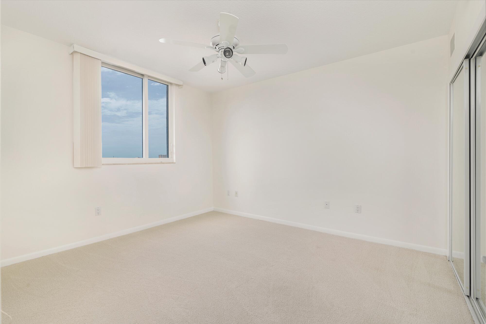 Located on the 15th floor of the Slade, this 3-bedroom, 2-bathroom condominium offers 1,675 square feet of living space with direct views of the Intracoastal Waterway, Palm Beach Island, and the Atlantic Ocean. The open floor plan connects the kitchen, dining, and living areas to a private balcony positioned to capture morning sunrises and waterfront scenery.The unit has been freshly painted and features brand-new carpet in the bedrooms. The primary suite includes a walk-in closet and an en suite bathroom. Impact glass windows and sliding doors maximize natural light while providing storm protection. The kitchen is equipped with granite countertops, stainless steel appliances, and ample cabinet space. An in-unit washer and dryer, alongwith generous interior storage and one assigned garage parking space, add to the convenience. The Slade is a full-service, pet-friendly building offering 24-hour front desk security and valet parking. Residents have access to two heated pools located on sunrise and sunset decks, an outdoor spa, and a fully equipped fitness center. Additional amenities include a resident clubroom, business center with Wi-Fi, secure package room, and on-site property management. Situated on Flagler Drive in West Palm Beach, the Slade is in close proximity to Palm Beach Island, CityPlace, Clematis Street, the Brightline Station, and Palm Beach International Airport.