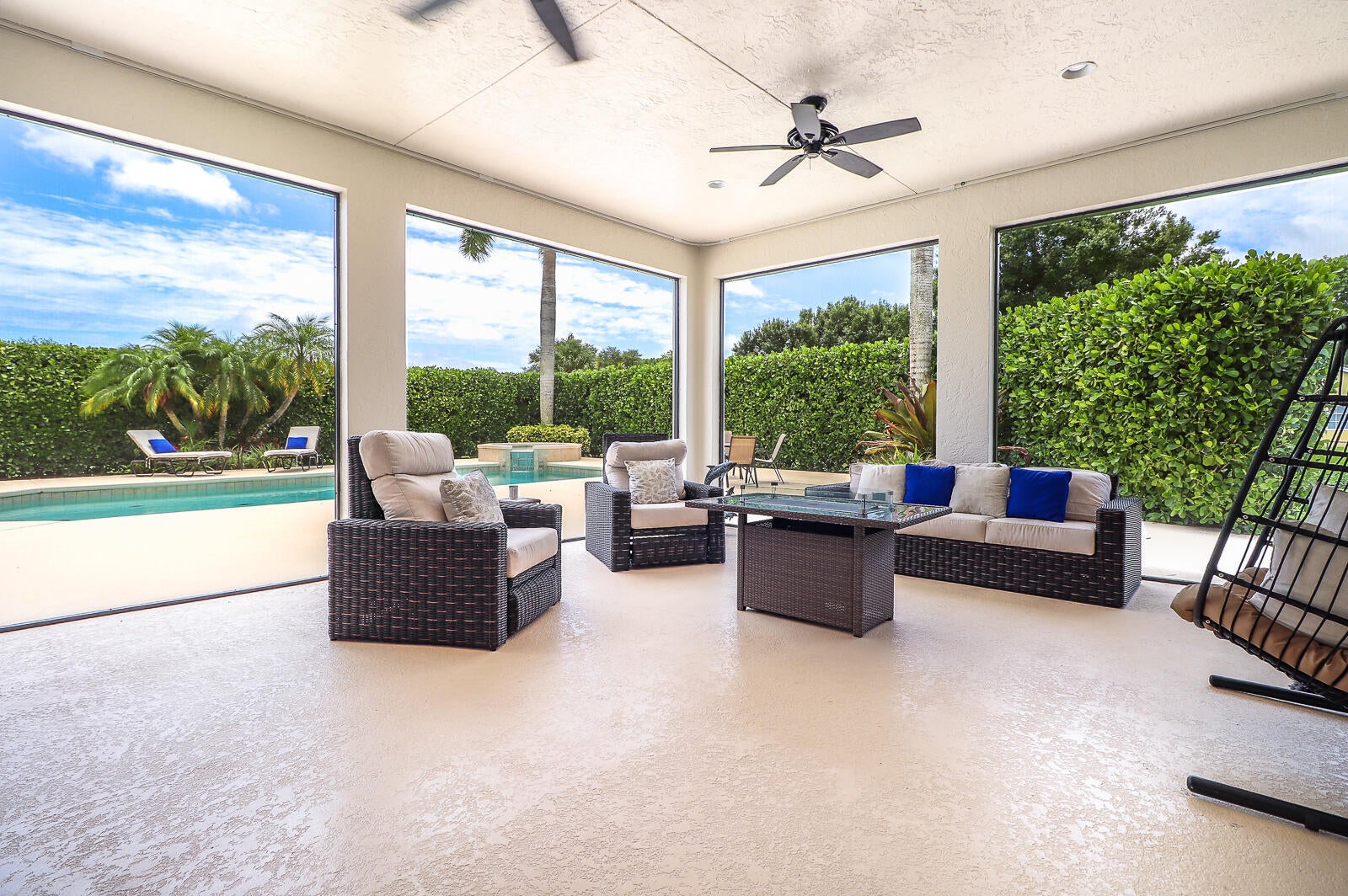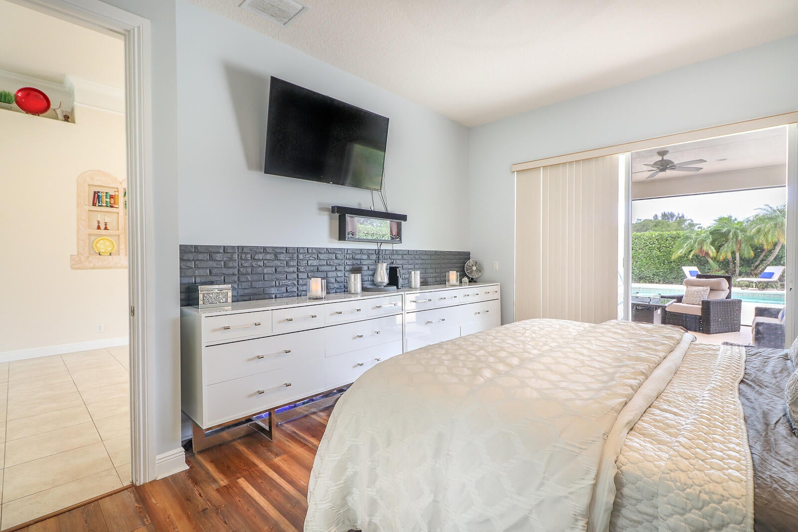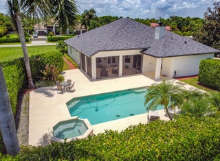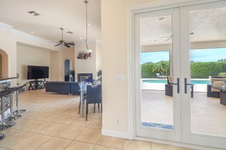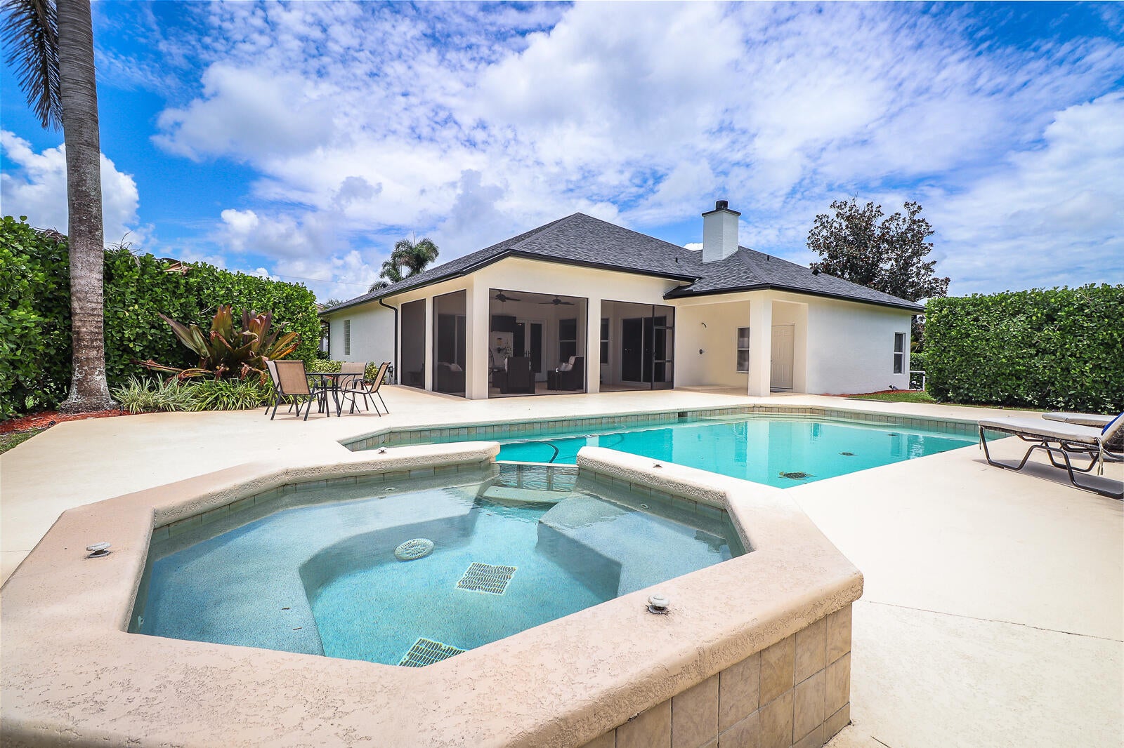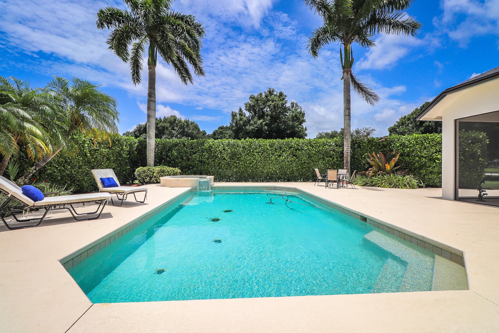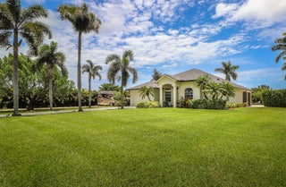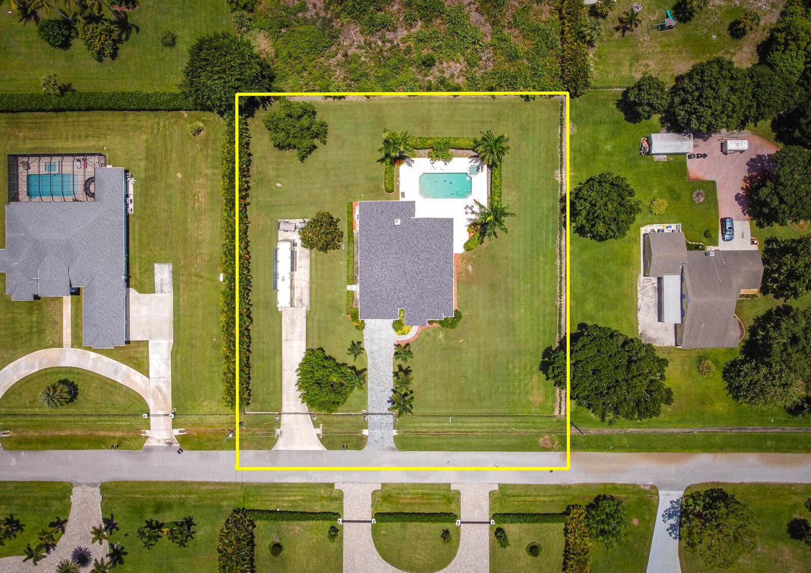 Fantastic 4 BR+den/3 BA/2-car garage CBS home with 40 ft. pool w/new salt system on an immaculately maintained 1.15-AC lot on a paved road in Palm Beach Country Estates. New roof 2025. Fully-fenced property with an automatic electric entry gate with keypad on the main driveway in addition to a separate manual gate leading into a large second driveway/RV parking area. The oversized pool with hot tub spa is situated on a spacious 2,400sf patio with hot/cold outdoor shower, cabana bathroom, and privacy landscaping. Huge screened porch. The house features high ceilings, crown molding, split bedrooms, and wood-burning fireplace. Large kitchen with center island, walk-in pantry, dual wall ovens, granite countertops, breakfast nook and bar, and modern stainless-steel appliances.Formal dining room. Master bathroom with Roman tub, separate shower, and large walk-in closet. The concrete RV parking pad with 50-amp electric hookup is ready for an optional steel building. Other features include: central vacuum, commercial water heater, and low-voltage hardwired landscape lighting. This home is hooked-up to high-speed AT&T Fiber. Surrounded by upscale homes. Palm Beach Country Estates features quiet country living with no HOA, city water, and close proximity to area amenities such as Alton Town Center and Abacoa.