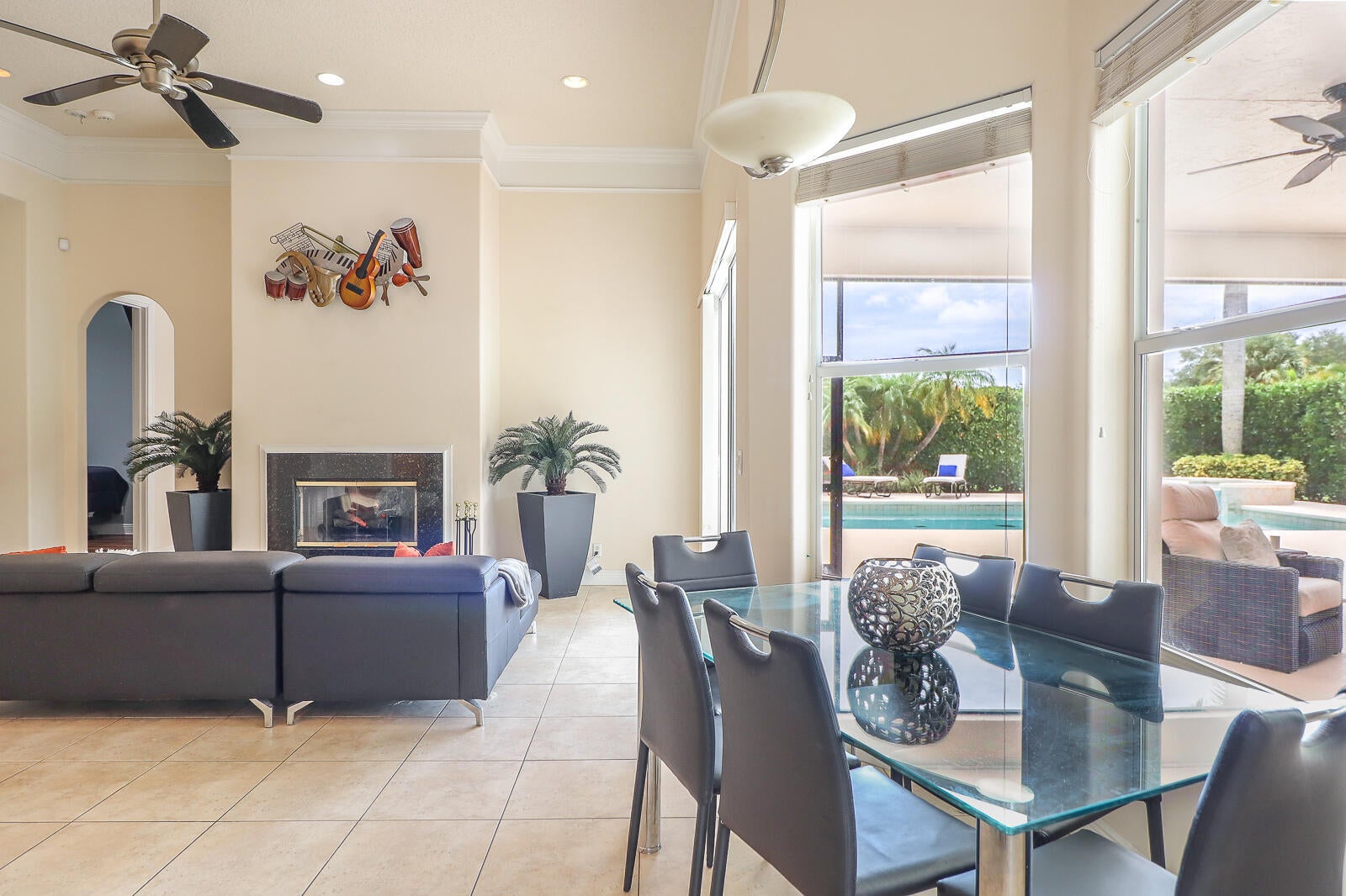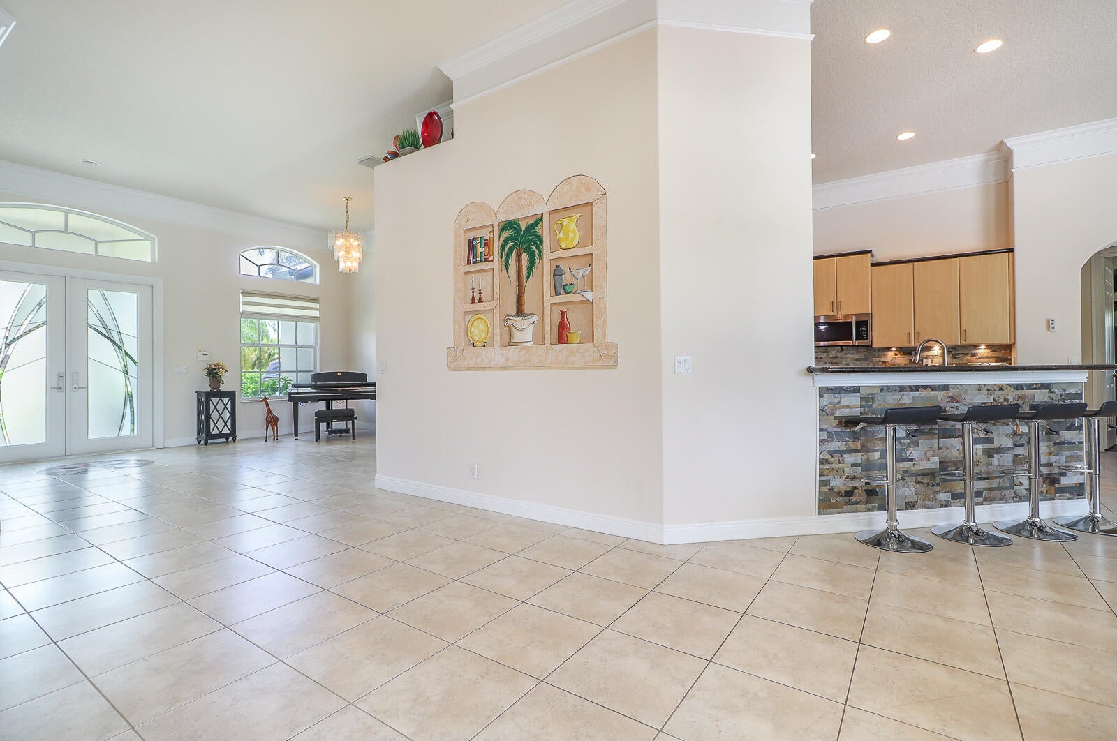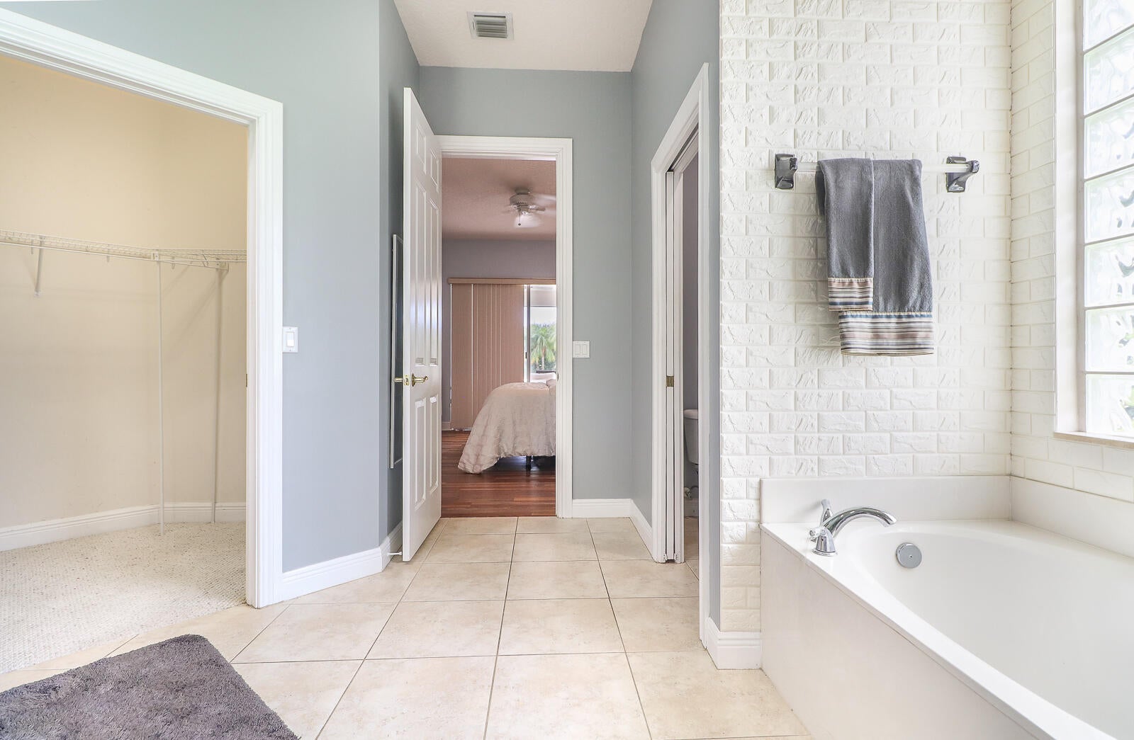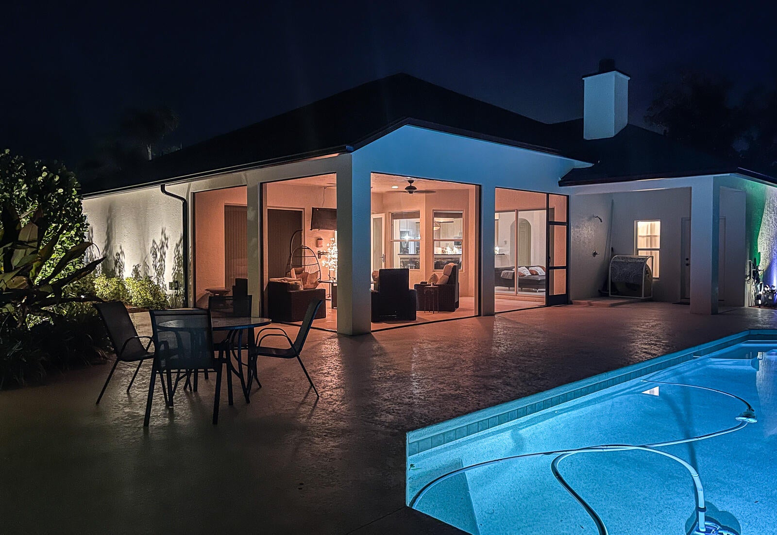 Fantastic 4 BR+den/3 BA/2-car garage CBS home with 40 ft. pool w/new salt system on an immaculately maintained 1.15-AC lot on a paved road in Palm Beach Country Estates. New roof 2025. Fully-fenced property with an automatic electric entry gate with keypad on the main driveway in addition to a separate manual gate leading into a large second driveway/RV parking area. The oversized pool with hot tub spa is situated on a spacious 2,400sf patio with hot/cold outdoor shower, cabana bathroom, and privacy landscaping. Huge screened porch. The house features high ceilings, crown molding, split bedrooms, and wood-burning fireplace. Large kitchen with center island, walk-in pantry, dual wall ovens, granite countertops, breakfast nook and bar, and modern stainless-steel appliances.Formal dining room. Master bathroom with Roman tub, separate shower, and large walk-in closet. The concrete RV parking pad with 50-amp electric hookup is ready for an optional steel building. Other features include: central vacuum, commercial water heater, and low-voltage hardwired landscape lighting. This home is hooked-up to high-speed AT&T Fiber. Surrounded by upscale homes. Palm Beach Country Estates features quiet country living with no HOA, city water, and close proximity to area amenities such as Alton Town Center and Abacoa.