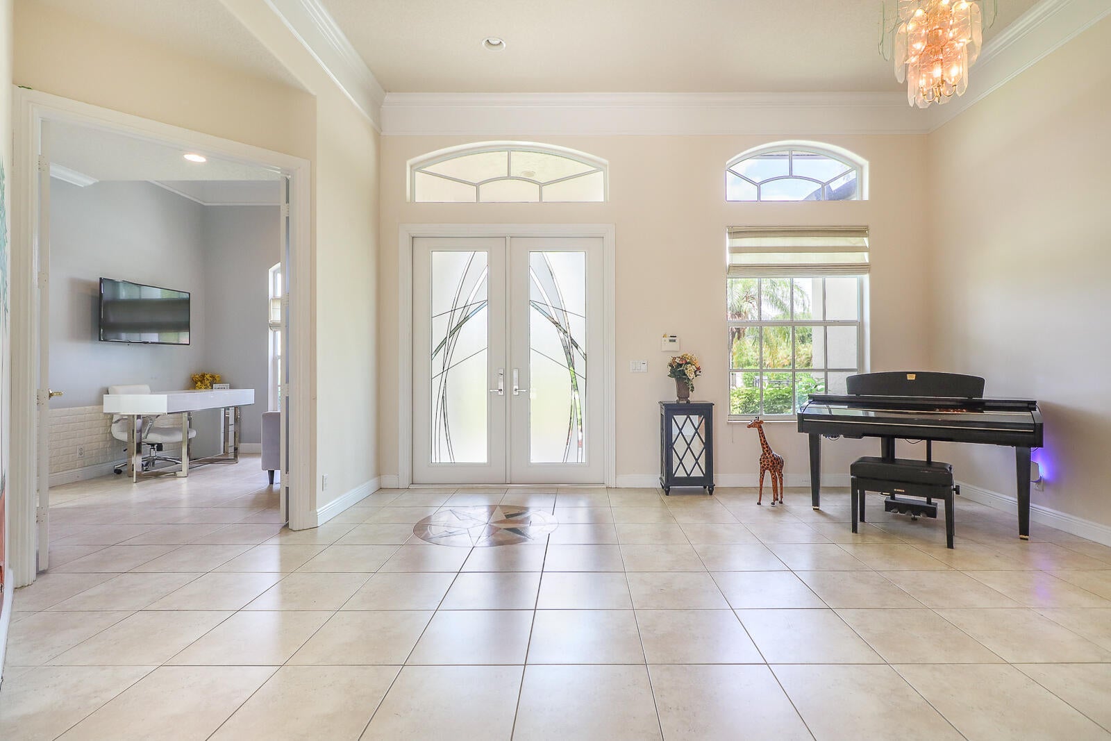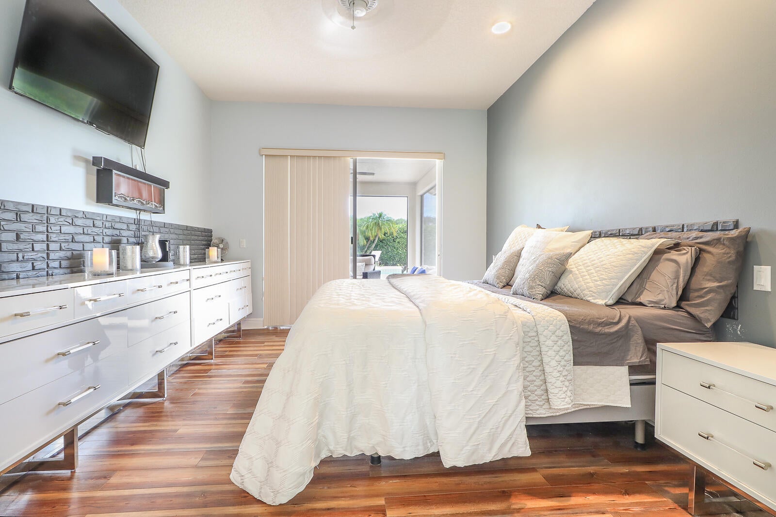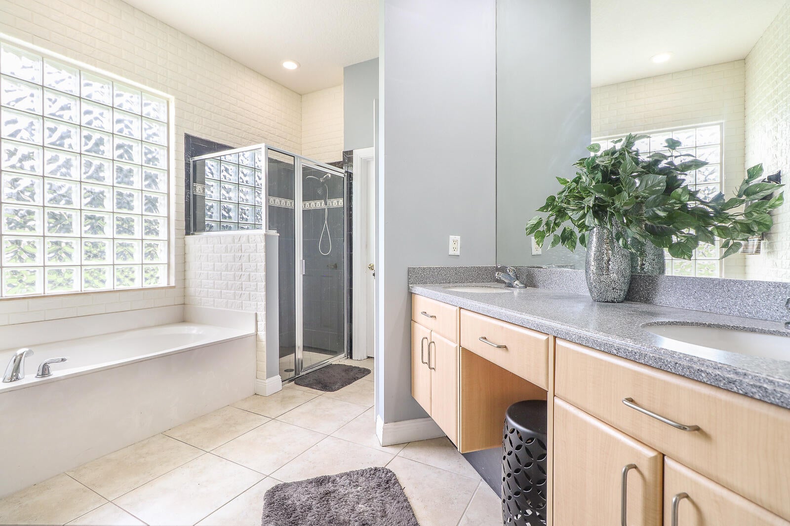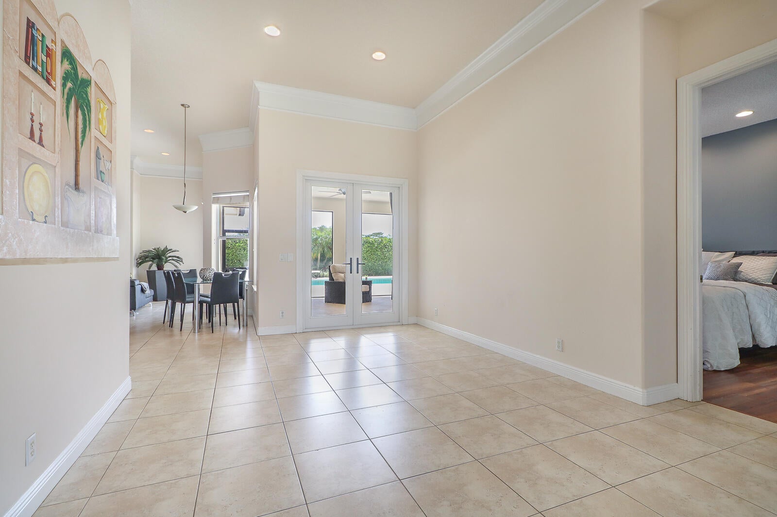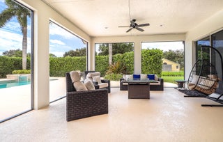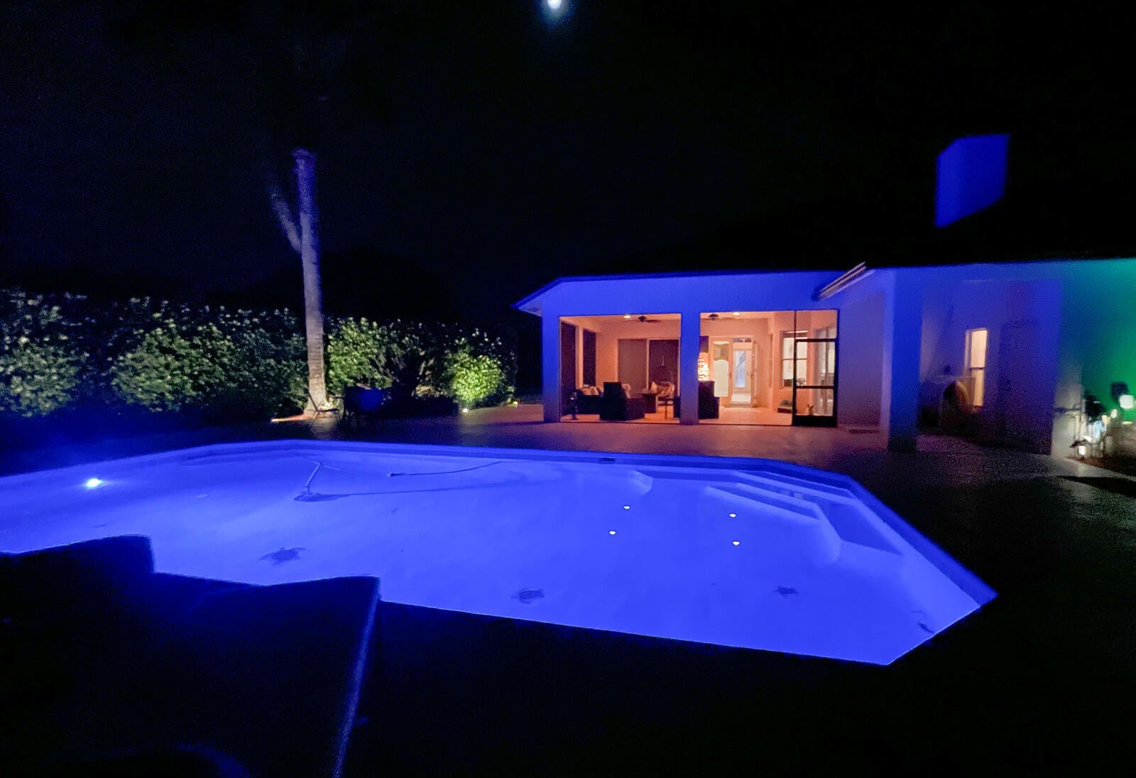 Fantastic 4 BR+den/3 BA/2-car garage CBS home with 40 ft. pool w/new salt system on an immaculately maintained 1.15-AC lot on a paved road in Palm Beach Country Estates. New roof 2025. Fully-fenced property with an automatic electric entry gate with keypad on the main driveway in addition to a separate manual gate leading into a large second driveway/RV parking area. The oversized pool with hot tub spa is situated on a spacious 2,400sf patio with hot/cold outdoor shower, cabana bathroom, and privacy landscaping. Huge screened porch. The house features high ceilings, crown molding, split bedrooms, and wood-burning fireplace. Large kitchen with center island, walk-in pantry, dual wall ovens, granite countertops, breakfast nook and bar, and modern stainless-steel appliances.Formal dining room. Master bathroom with Roman tub, separate shower, and large walk-in closet. The concrete RV parking pad with 50-amp electric hookup is ready for an optional steel building. Other features include: central vacuum, commercial water heater, and low-voltage hardwired landscape lighting. This home is hooked-up to high-speed AT&T Fiber. Surrounded by upscale homes. Palm Beach Country Estates features quiet country living with no HOA, city water, and close proximity to area amenities such as Alton Town Center and Abacoa.
