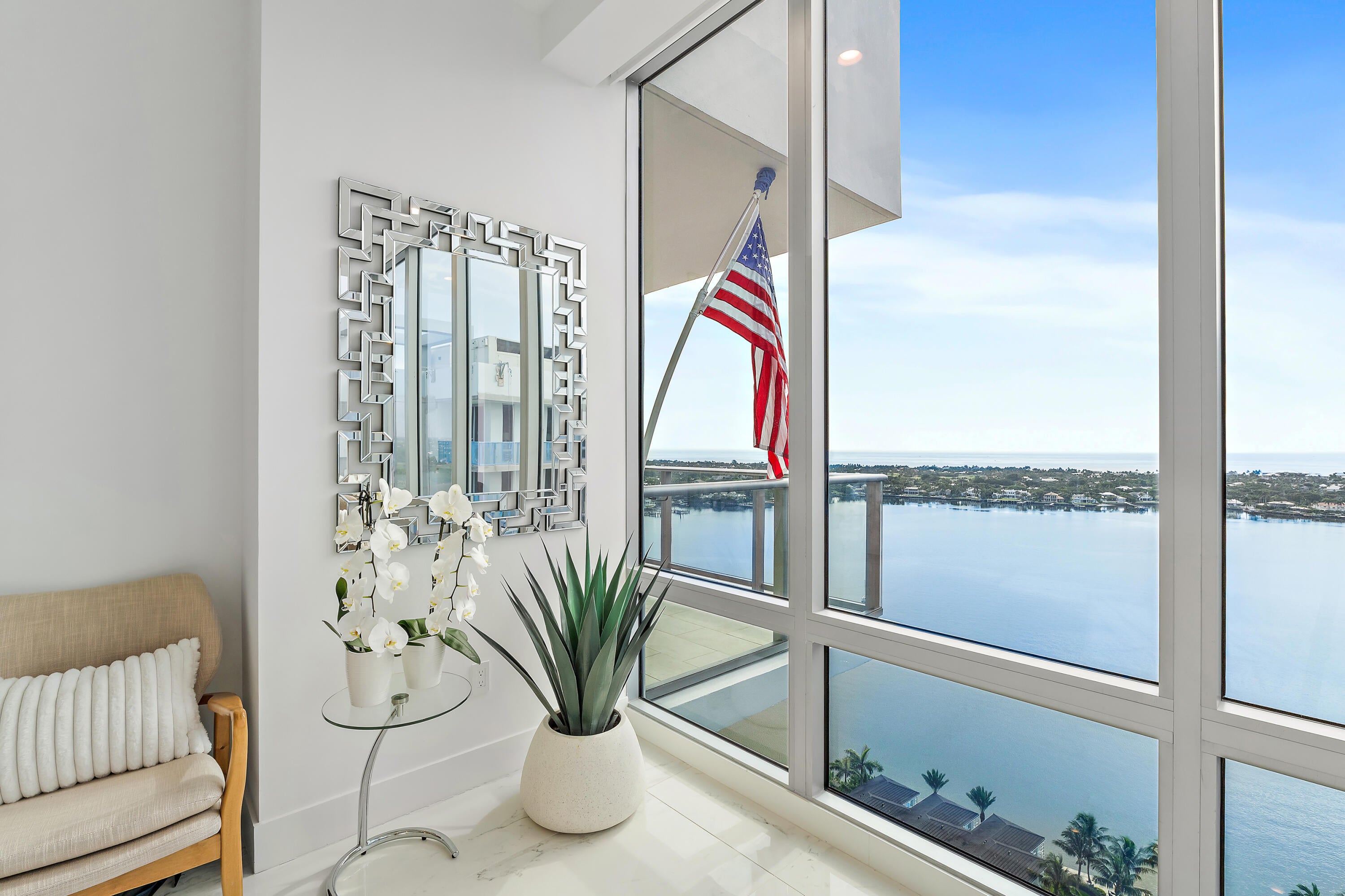 The Eagle's Nest Above the SeaWater Club Penthouse 2204 - Building OneElevated high atop the 22nd floor the pinnacle of Water Club's most exclusive tower this is not just a penthouse. It's a sanctuary in the sky, offering nearly 3,000 square feet of sophisticated coastal luxury with sweeping, unobstructed views of the Atlantic Ocean, Intracoastal Waterway, and endless horizon. A true 'Eagle's Nest' located at the north head of Lake Worth, this residence is designed for those who seek elegance with altitude.Step inside and be welcomed by floor-to-ceiling glass walls that flood the open living spaces with natural light. The expansive layout blurs the line between indoors and out, inviting the horizon into your everyday experience. Every inch has been meticulouslyenhanced with curated design elements and thoughtful upgrades, creating a home that feels like a five-star escape. The master suite is a private retreat, featuring a double-wide Jacuzzi tub for two with three high-output water pumps and eleven massage jets, a smart toilet bidet, and custom built-in closets designed with the fashion enthusiast in mind. Wake up to sunrise over the ocean and Intracoastal waters just a stone's throw away, and unwind with west-facing sunset views all easily enjoyed behind automated blinds that respond to your touch. The kitchen combines sleek style and function, with a double-wide Jenn-Air side-by-side refrigerator and bottom-pull freezer, a brand-new KitchenAid dishwasher, reverse osmosis water system, and an updated heavy-duty garbage disposal all tied together with a clean, modern aesthetic. A whole-home water filtration and softener system, along with a dedicated pressure pump, ensures clean, carbon-filtered, pressurized water throughout. Behind the scenes, enjoy everyday convenience with a new 80-gallon water heater under a service plan, as well as a new washer and dryer with a built-in folding station that transforms chores into luxury. Beyond the penthouse itself, the Water Club lifestyle begins. Boat lovers can use the community dock Slip 18 for weekend getaways and day trips. Two private, assigned parking spaces with penthouse-privileged access sit right next to the elevators leading directly to your new home. The residence also includes a Tesla charging station and a large, walk-in, ground-level storage unit outfitted with shelving to accommodate all your extras. The Water Club is known for its many amenities three resort-style pools, a lap pool, two outdoor Jacuzzis, a waterfront clubhouse with full bar and lounge, state-of-the-art fitness center, men's and women's spa-style bathrooms with saunas, steam rooms, and yoga studios, pickleball courts, guest suites, and 24/7 concierge service. The guard-gated entry ensures peace of mind around the clock. Ideally located just 30 seconds from the corner of PGA Boulevard, with world-class golf clubs like Old Palm and Bear's Club, top-tier dining, and the convenience of Palm Beach International Airport, this penthouse represents more than just a residence it's a rare opportunity to own one of the highest vantage points in one of South Florida's most sought-after communities.