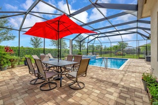 Experience refined luxury living with the Bianca Model at Valencia Cay in Riverland. This elegant pool home, situated on a private lot, features 2 bedrooms +den/3rd bedroom, a family room, a spacious living area, a two-car garage, and a dedicated golf cart garage to enhance ease of transportation within the community. Thoughtfully designed for modern comfort and sophistication, this residence offers open-concept living, high-end finishes, and generous interiors ideal for an active, upscale lifestyle. Highlights include an expansive great room tailored for entertaining, a gourmet kitchen equipped with premium cabinetry and stainless-steel appliances, and a luxurious master suite featuring walk-in closets and a spa-inspired bathroom, with a large shower and separate vanities. The home also provides a custom screened in heated and cooled pool and spa, complemented by a covered patio for outdoor enjoyment. Generac whole house generator. Valencia Cay residents enjoy access to world class amenities designed for relaxation, recreation, and community engagement. Features include a grand clubhouse with social spaces, event rooms, lounges, resort style pools, and a state of the art fitness center. Dining is available at the Cay Café and River Fresh Café, both offering exceptional cuisine within the community. A variety of social clubs cater to interests such as travel, art, fitness and dance. The Riverland Arts & Culture Center hosts creative workshops, art studios, and classes in painting, sculpture, music and more. Sports facilities are extensive, including over 50+ pickleball courts one of the largest complexes in the U.S.as well as tennis courts, indoor basketball, a wellness and spa center and miles of picturesque walking trails throughout beautifully landscaped grounds. The adjacent Riverland Town Center, anchored by a PUBLIX supermarket, will feature an array of commercial and retail options easily accessible via private community greenways and the Paseo Greenway, accommodating golf carts, pedestrians, and cyclists alike.