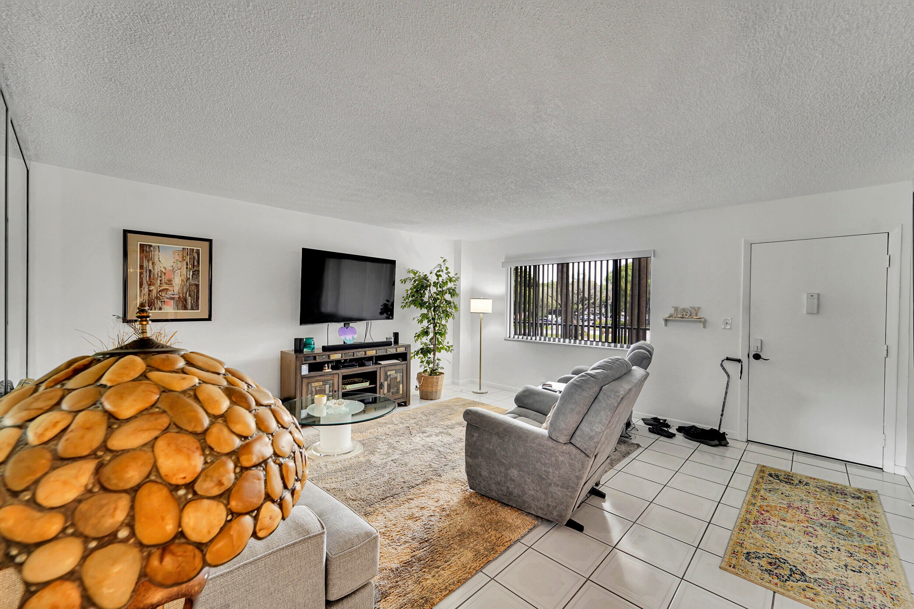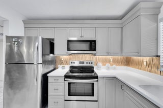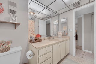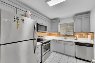 Welcome to this beautifully maintained 2BR/2BA condo in gated Ashmont at Kings Point, a highly sought 55+ community. This move-in ready home features a renovated kitchen with quartz counters, painted cabinets, stainless appliances, sleek backsplash, and pantry. Dining area is conveniently adjacent. Spacious primary suite has a walk-in shower and large closet, while the guest bath has a tub/shower combo. The second bedroom, used as an office, also has a walk-in closet. Step onto the tiled enclosed patio from either bedroom to enjoy lake views and sunsets. Patio has laundry with full-size washer and dryer. Residents enjoy Kings Point resort amenities: pools, clubhouse, fitness, theater, sauna, and more. HOA covers water, cable, internet, trash, pest control, and amenities. Electric separate