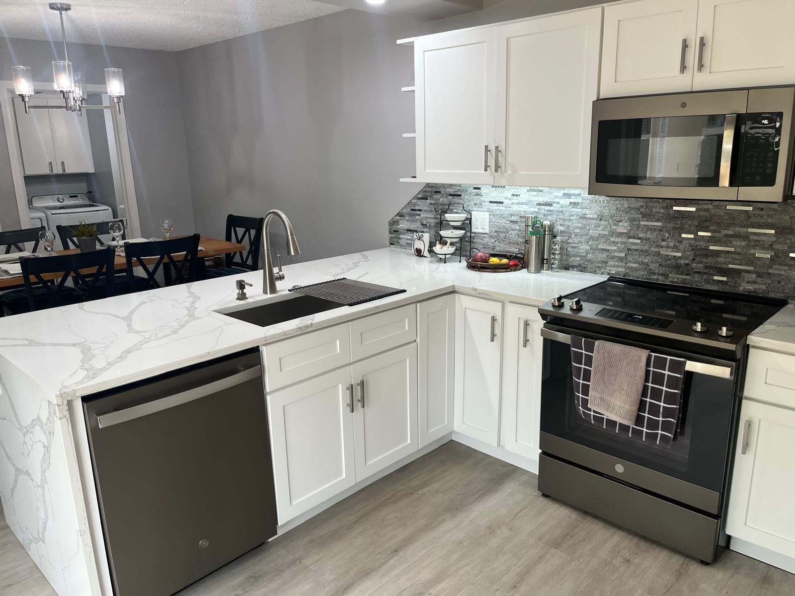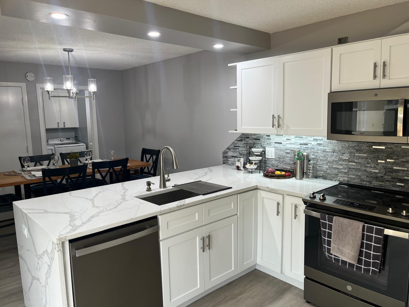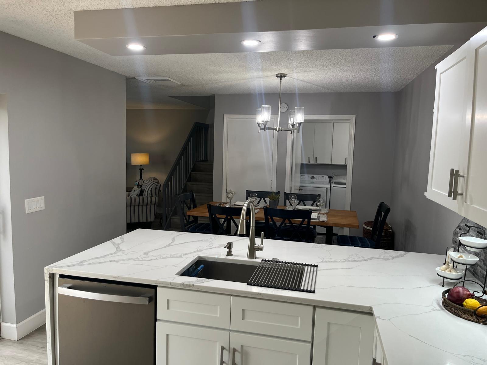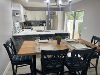INDULGE IN THIS ELEGANT ONE OF A KIND TOWNHOME. THE OWNER IS A MARBLE COMPANY OWNER, THE KITCHEN IS FULLY EQUIPPED WITH NEW APPLIANCES INCLUDING STAINLESS STEEL REFRIGERATOR, ELEGANT SINK, MARBLE COUNTERS! CABINETS GALORE! THE FURNITURE IS SIMPLE, YET ELEGANT, VERY BRIGHT, LAMINATED FLOORS THROUGHOUT , THE MASTER BEDROOM UPSTAIRS HAS WATER VIEWS, KING SIZE BED AND THE GUEST BEDROOM, TWO TWIN BEDS..GATED COMMUNITY WITH POOL AND TENNIS COURTS. PATIO AREA HAS TRAVERTINE MARBLE FLOORS, ! LOCATION, LOCATION.