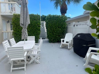 Furniture (mostly Crate and Barrel) being moved in this week! Two master suites. Granite countertops and stainless appliances. Tile flooring throughout. Water included. Open front Laundry in the back of the building. Unit has one spot in the carport. There is also street parking. Cameras for security around the building. It has an umbrella, patio table and chairs, 2 lounge chairs and a BBQ Pit. Two blocks from the water and the park!