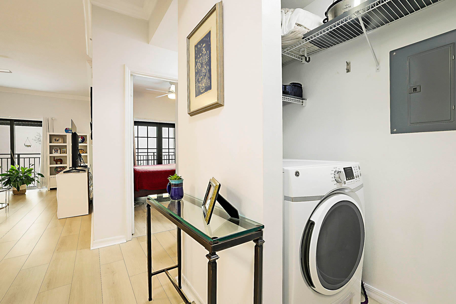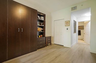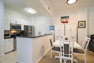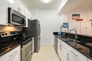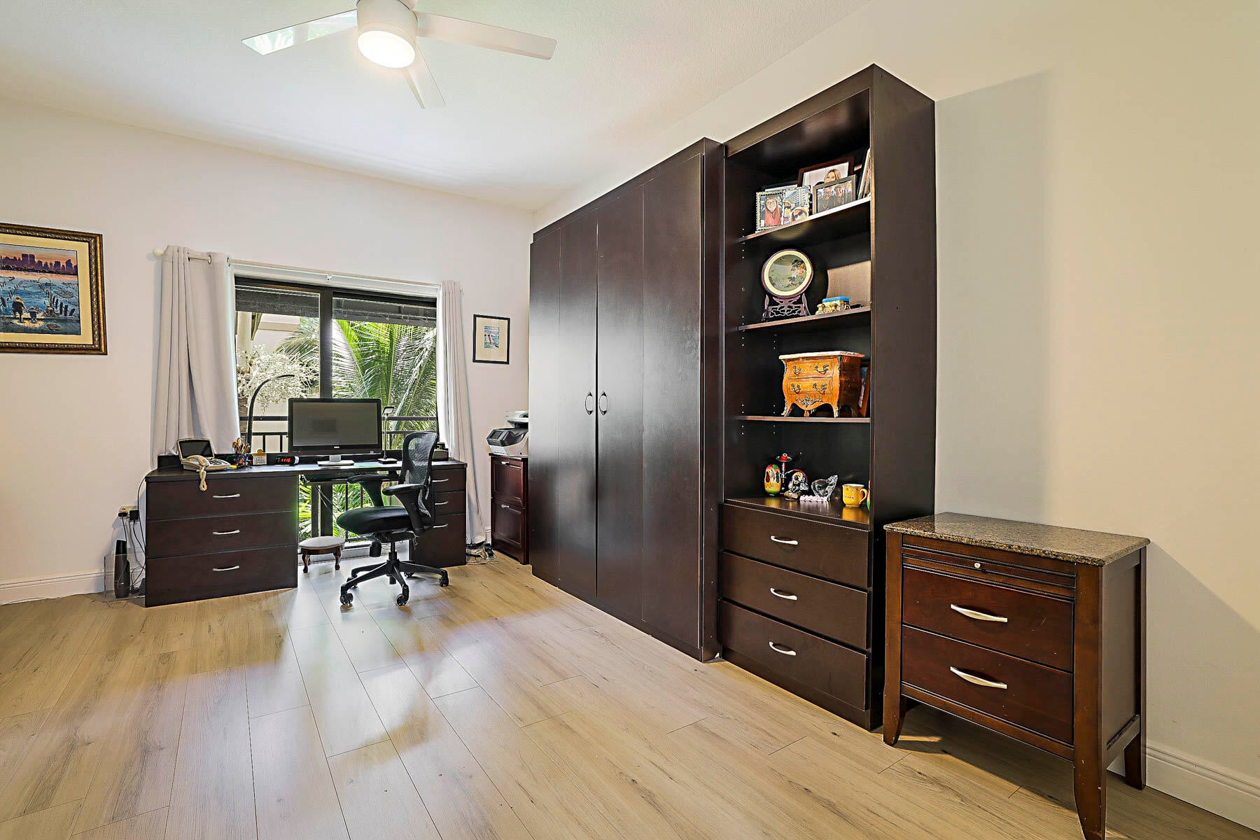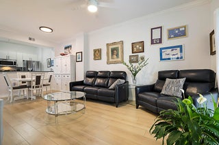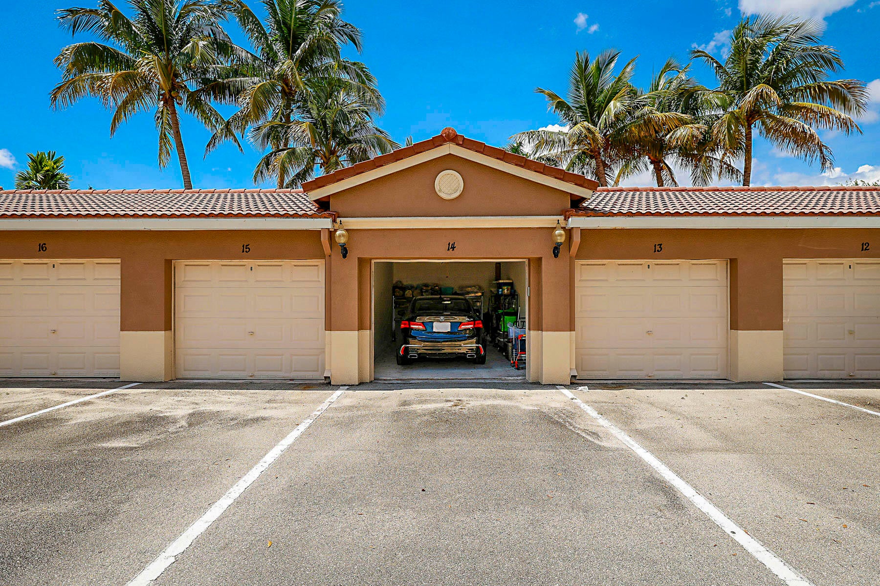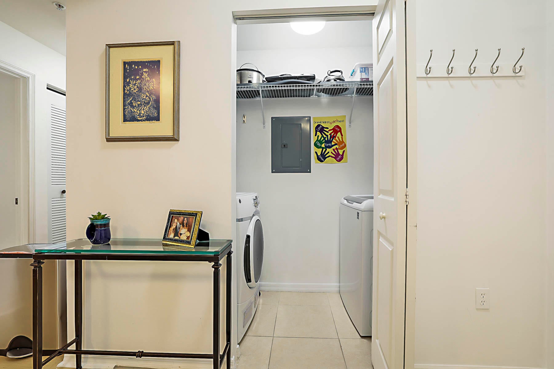 UPDATED AND 100% MOVE-IN READY WITH 1 CAR GARAGE!!! This 2 bedroom, 2 bath condo is Meticulous with the beautiful white kitchen cabinets, stainless appliances, and granite countertops. The kitchen is wide open to the living room with a snack bar, dining area, crown moldings, all tile and gorgeous blonde laminate flooring throughout, NO CARPET! The master suite offers a spacious bedroom & bathroom with dual vanity sink, walk-in shower, separate tub, linen closet, walk in closet, and gorgeous views of the courtyard. The guest bedroom has a private door out to the balcony, perfect for a quiet morning coffee. This unit also comes with a 1 CAR GARAGE! AC 2022, kitchen update 2023, HWH 2023, Fridge and Dishwasher 2021, Impact windows, .....laundry room has great amount of shelving for storage. Community offers a full gym, library, community room, resort style pool, hot tub, tennis, and pickle ball. Walk out to shops and a multitude of restaurants. This is a prime location.
