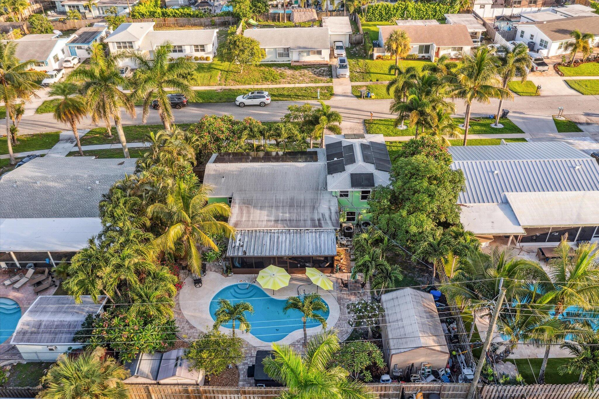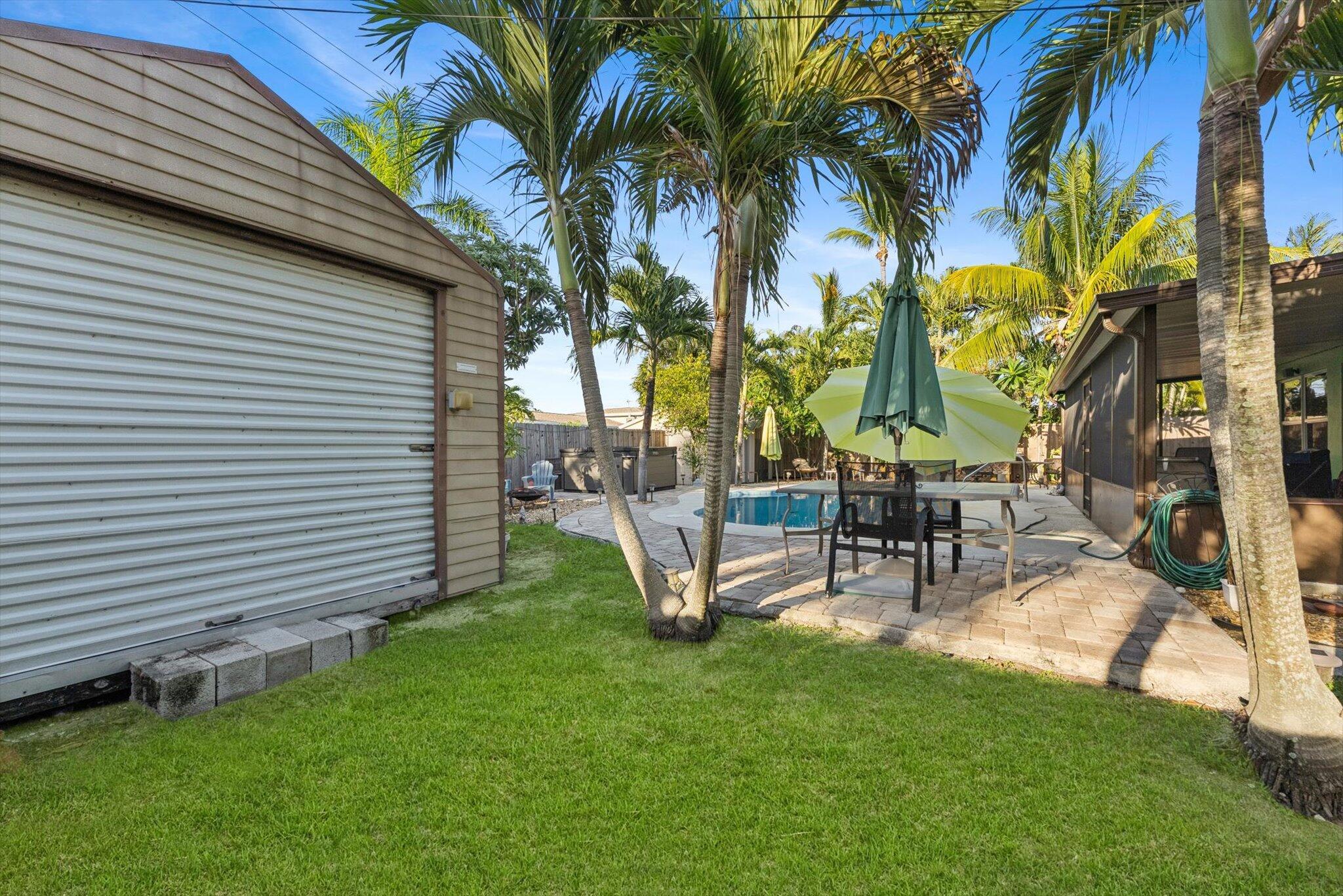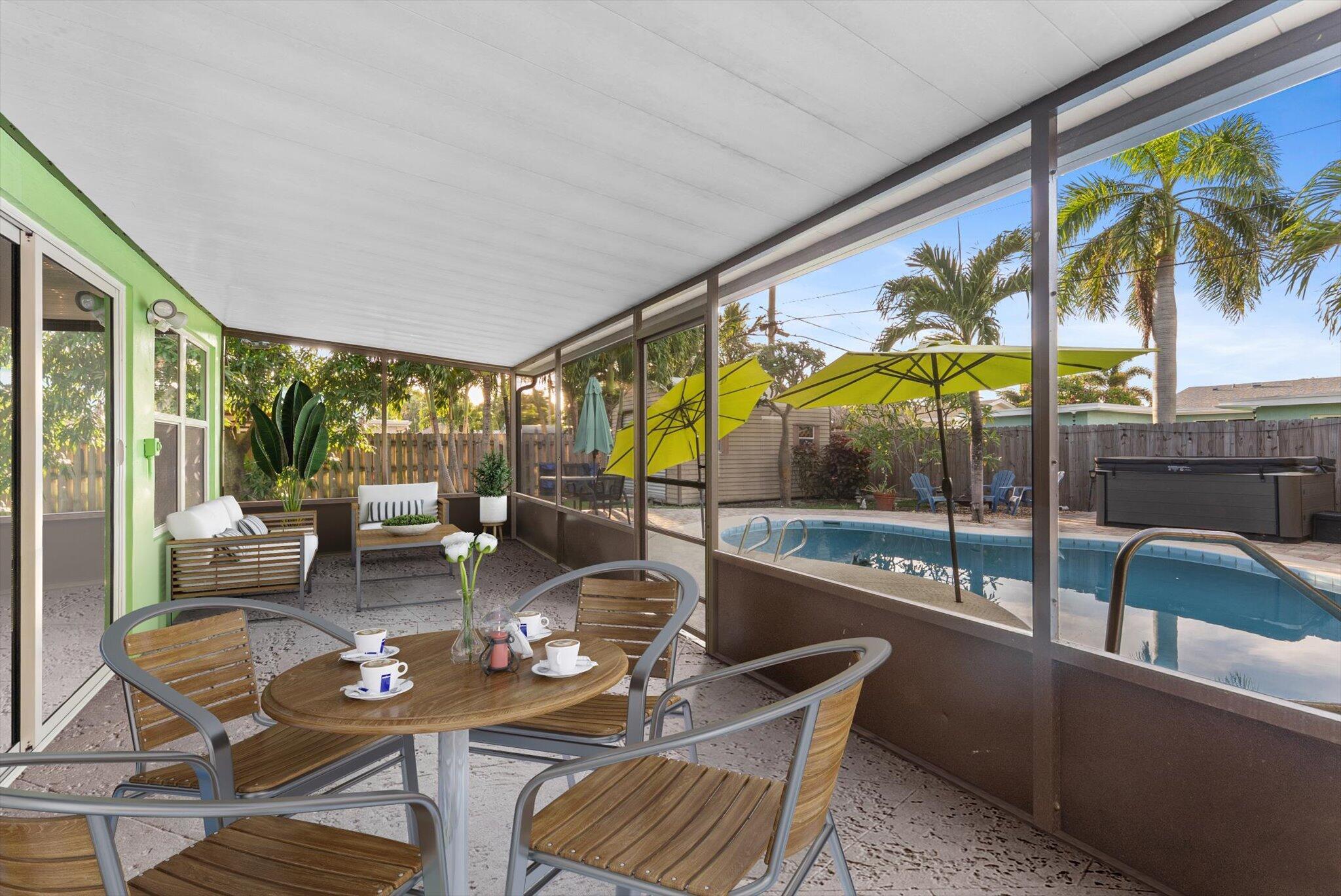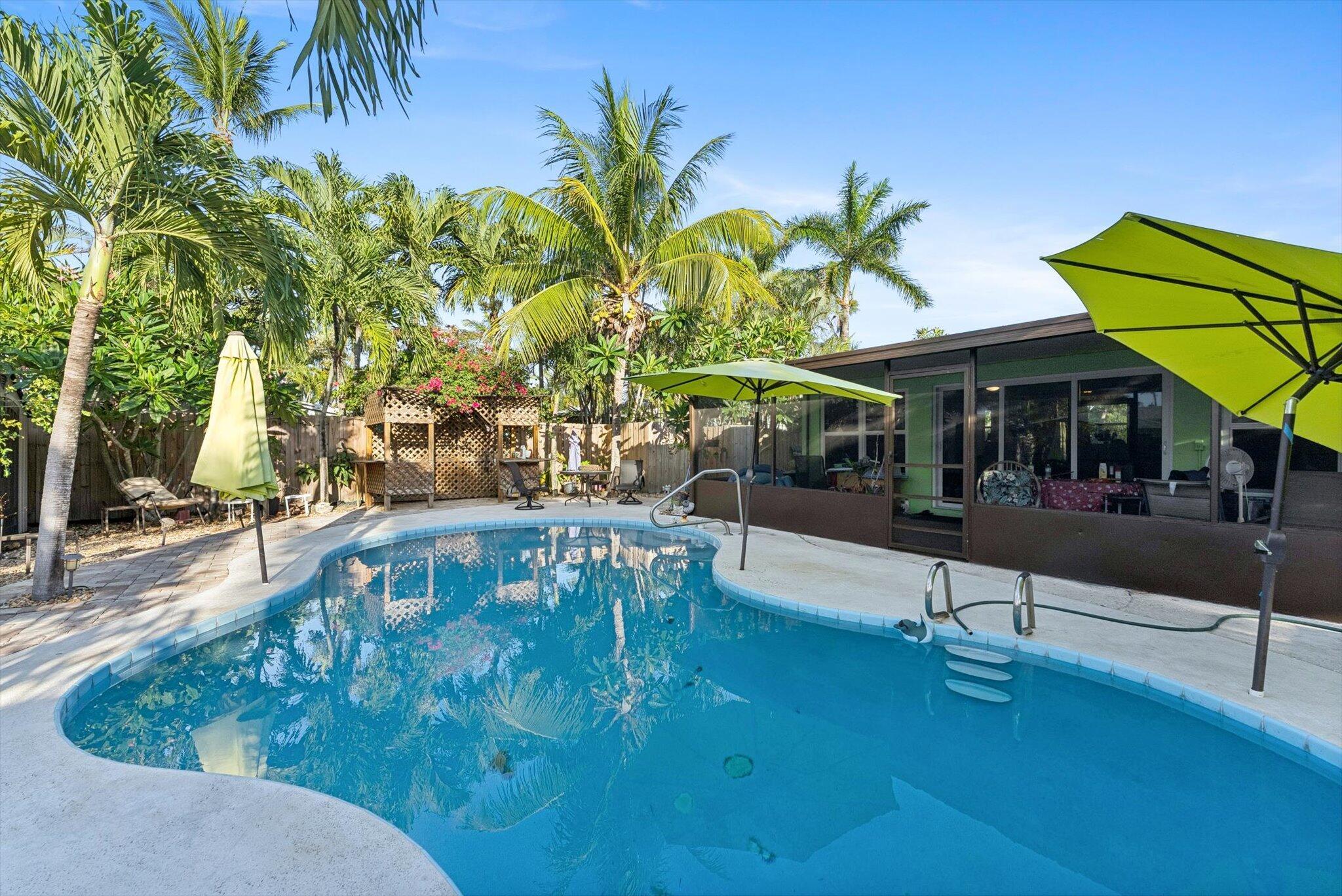 Experience the perfect harmony of comfort, style, and versatility with this beautifully maintained 3-bedroom, 2-bath pool home--an ideal sanctuary for those seeking both relaxation and opportunity. Whether you're looking to settle into your forever home, invest in your future, or simply elevate your lifestyle, this property invites you to embrace all the possibilities.Step inside and discover multi-level living space boasting high ceilings, with elegant tile flooring that flows seamlessly throughout. The spacious living and dining areas create an inviting atmosphere, perfect for gatherings with loved ones or quiet evenings at home. The family room is astonishingly 26 X 13'' with a gas fireplace. The kitchen features Custom Solid wood countertops, ample cabinetry, and modern appliancesmaking meal preparation both effortless and enjoyable. Each of the three bedrooms offers a tranquil retreat, The primary suite boasts a private, updated bathroom, providing your own personal haven at the end of each day. Step outside to your private backyard oasisan expansive screened in patio overlooking a sparkling swimming pool, perfect for morning and afternoon swims, or soak in the hot tub in the evenings. Surrounded by mature trees, the outdoor space is ideal for both relaxation and entertaining. Wash off in your outdoor shower. Whether hosting lively summer gatherings or enjoying peaceful evenings under the stars, this backyard is yours to design and enjoy. Additional features include an attached 1-car garage, in-home laundry facilities, and home offers upgrades like solar panels and impact windows for peace of mind and effortless living. Located in a friendly, well-established neighborhood close to schools, parks, Lake Osborne and major commuter routes, this property offers unmatched convenience without sacrificing privacy or tranquility. Your oasis awaits!