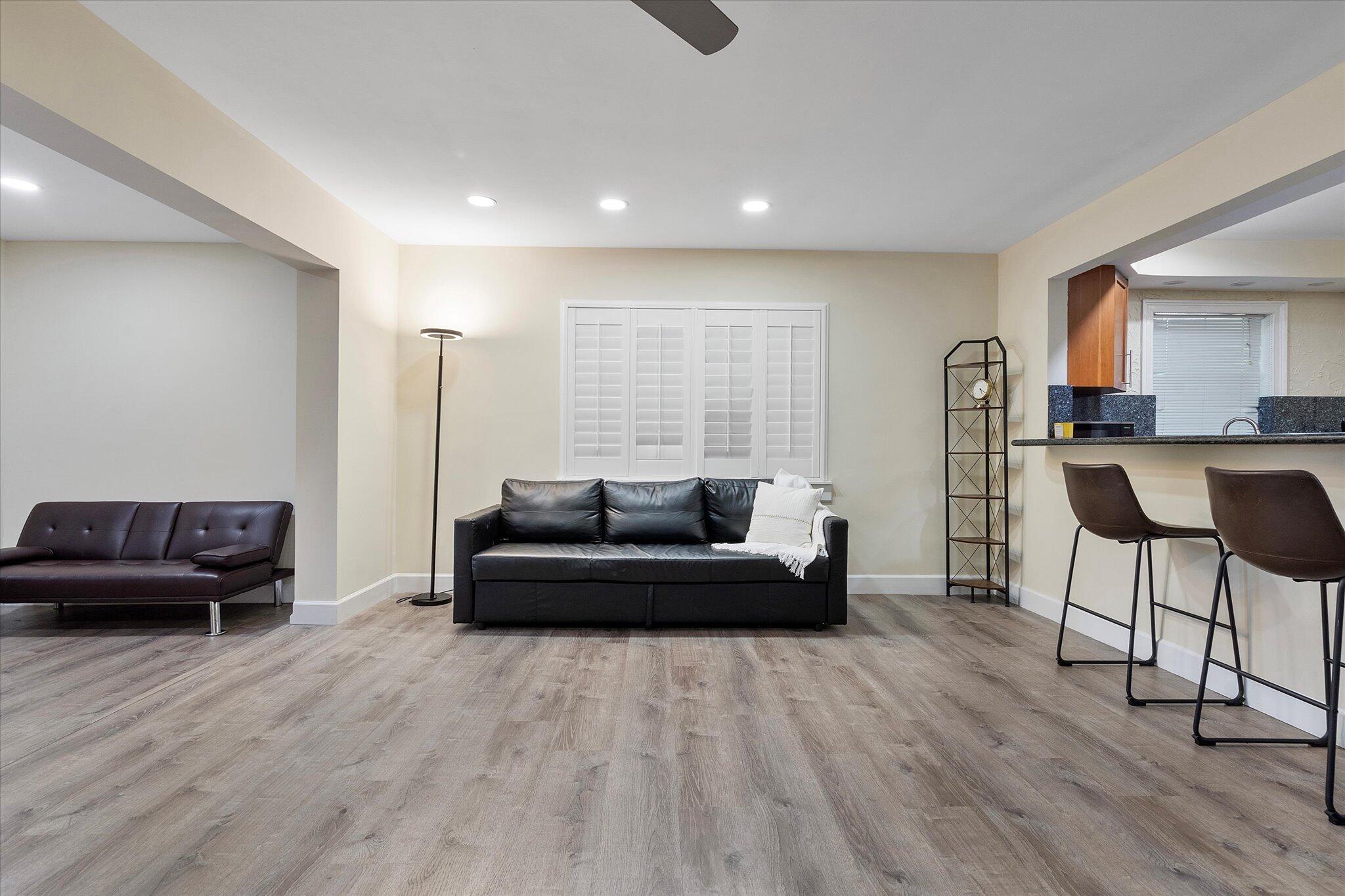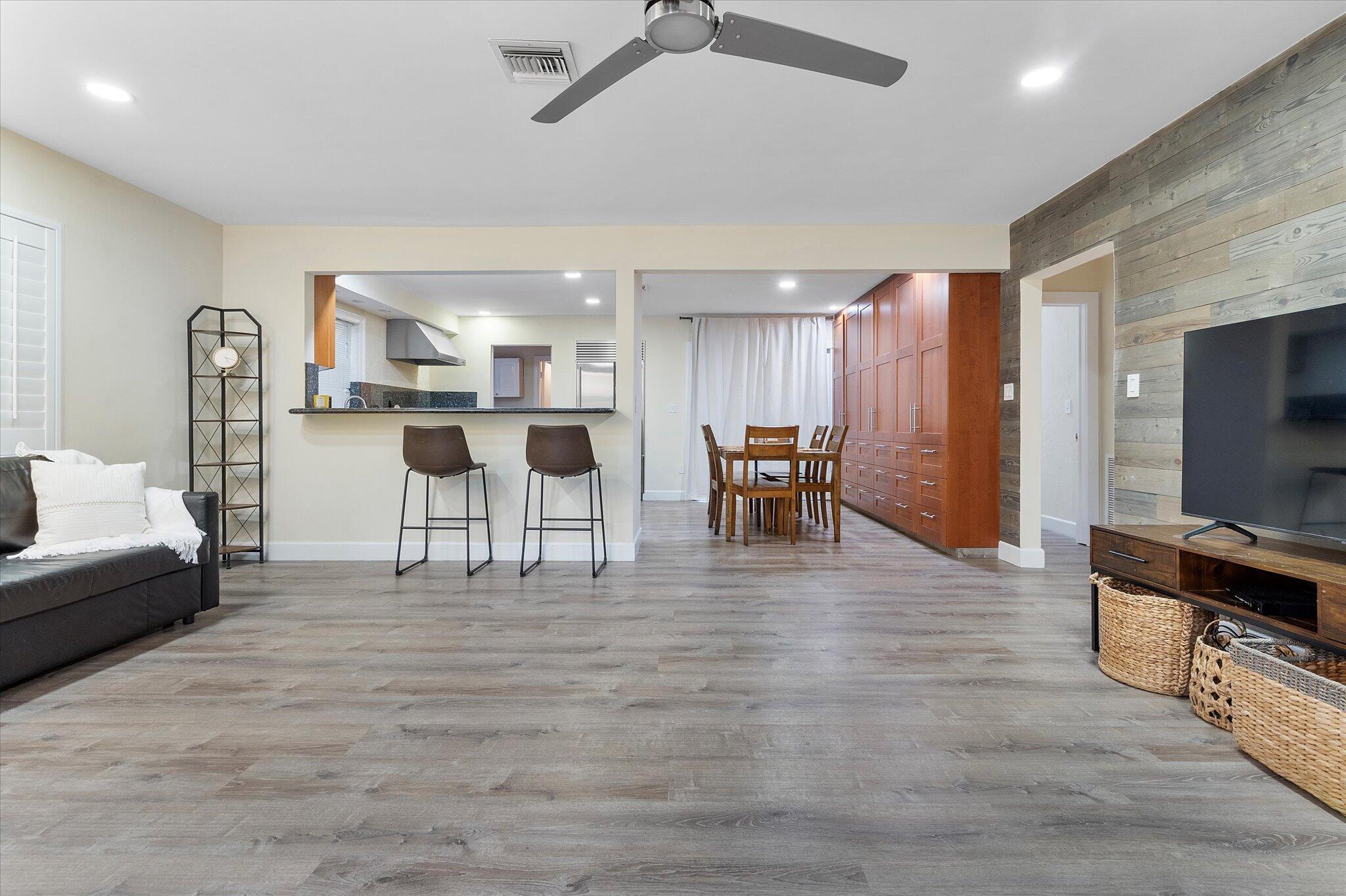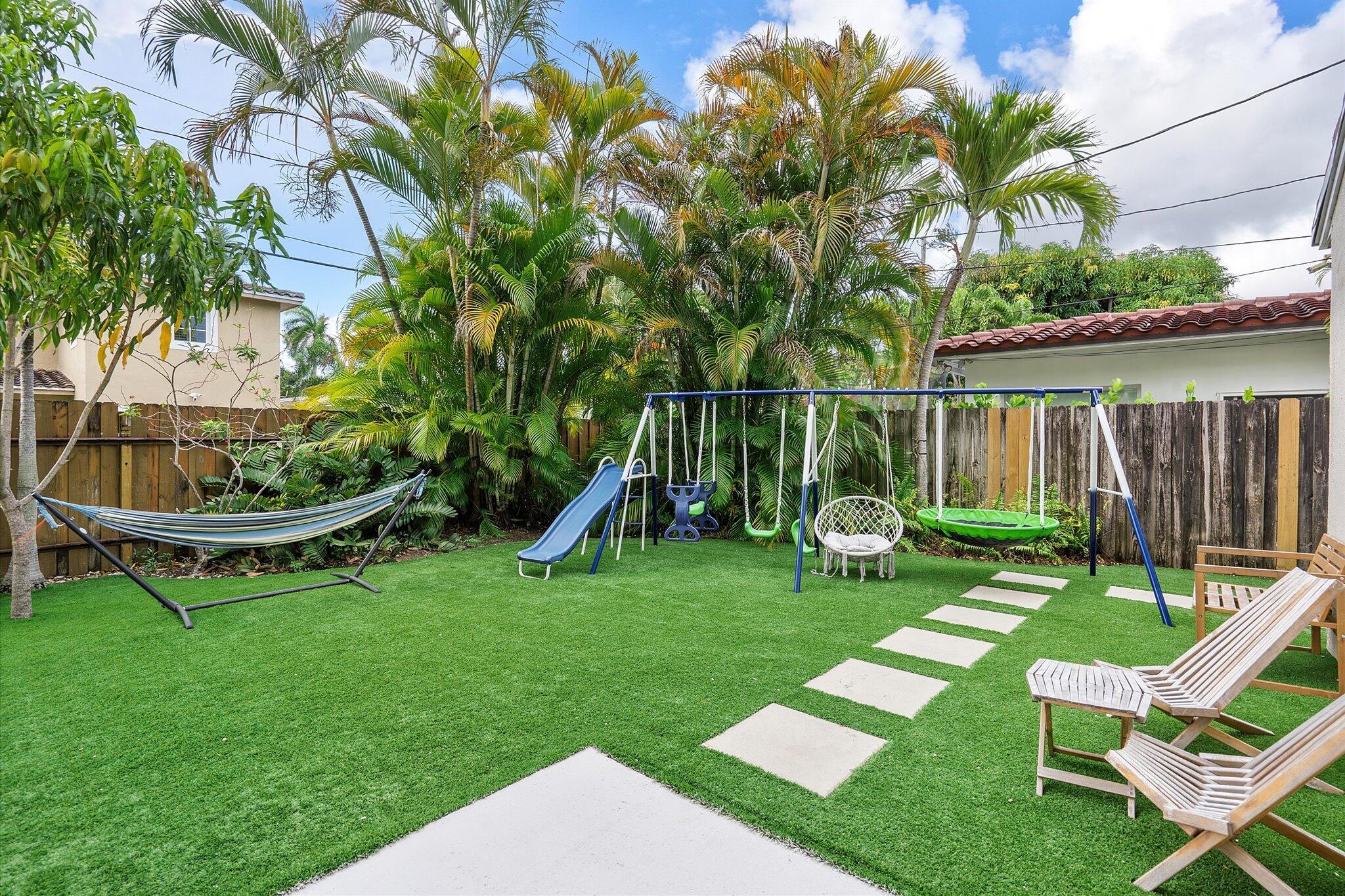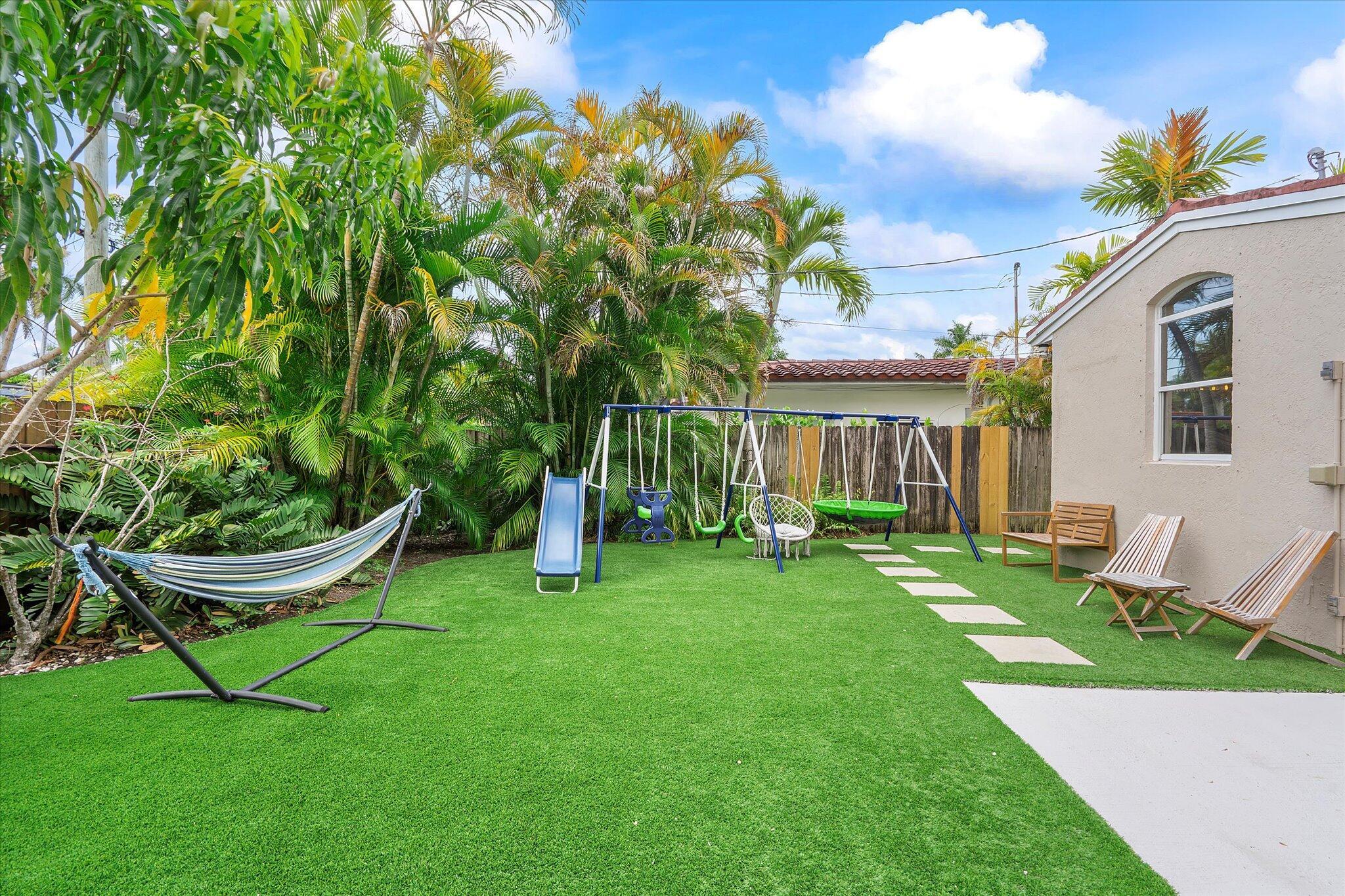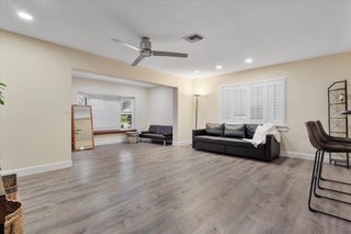 This beautiful home comes with a rare opportunity -- AN ASSUMABLE LOAN WITH LOW 3.125%. Just a short walk to downtown Hollywood and the Intracoastal, this beautifully updated home offers great curb appeal, a spacious layout, and flexible living space. Features include luxury vinyl plank flooring, fresh interior paint, and a chef's kitchen with Wolf gas stove, Sub-Zero fridge, large island, and generous storage. Both bathrooms have been fully renovated with high-end finishes -- including glass-enclosed shower, floor-to-ceiling tile, dual vanities, and a stunning freestanding tub in the primary suite. French doors lead to a screened porch. The converted garage serves as a third bedroom, office, or den. The fenced backyard features new turf, a custom playground, and paver driveway.