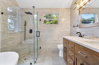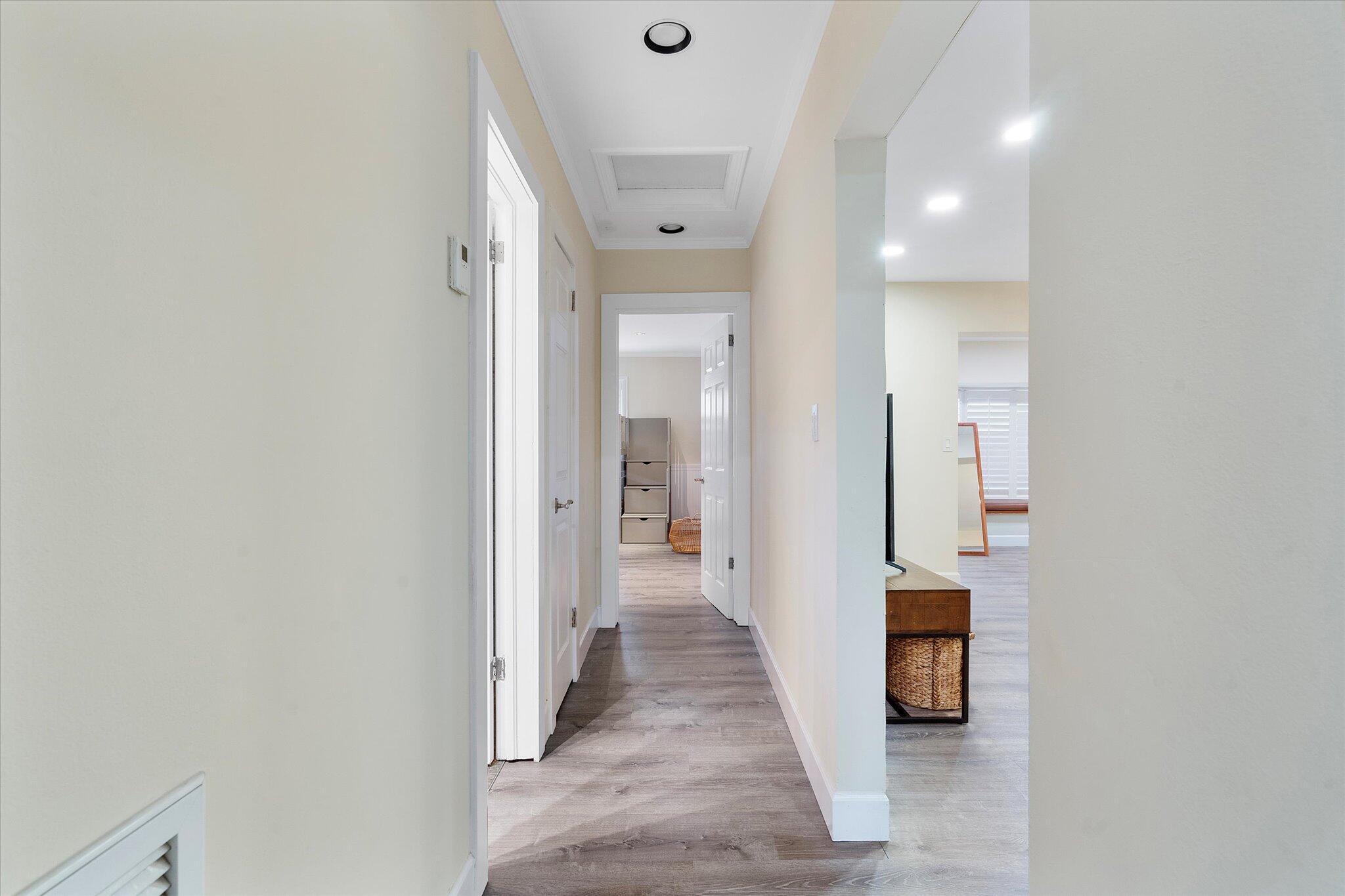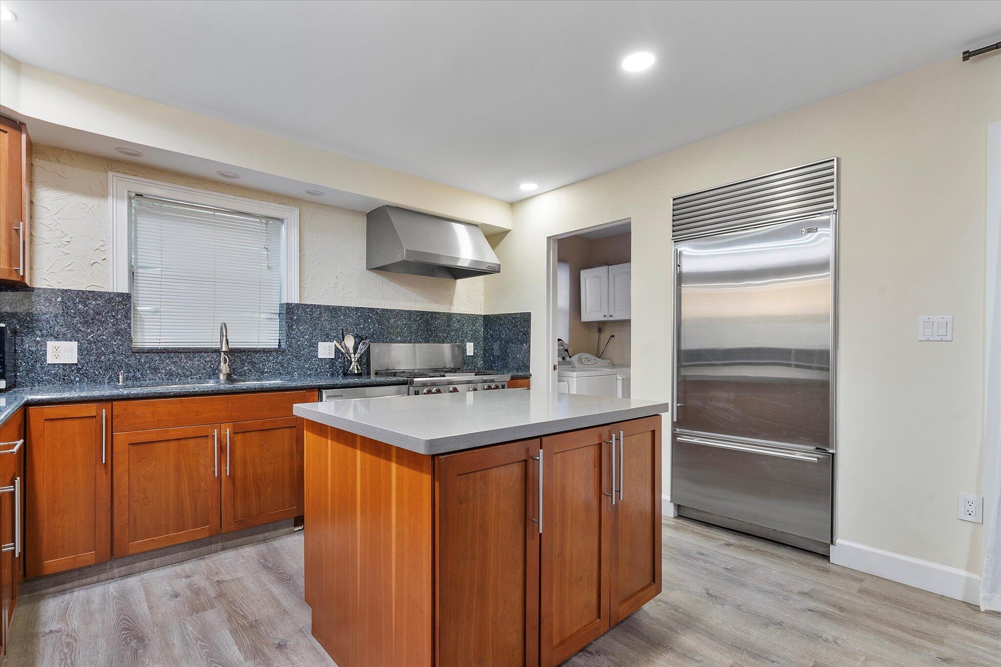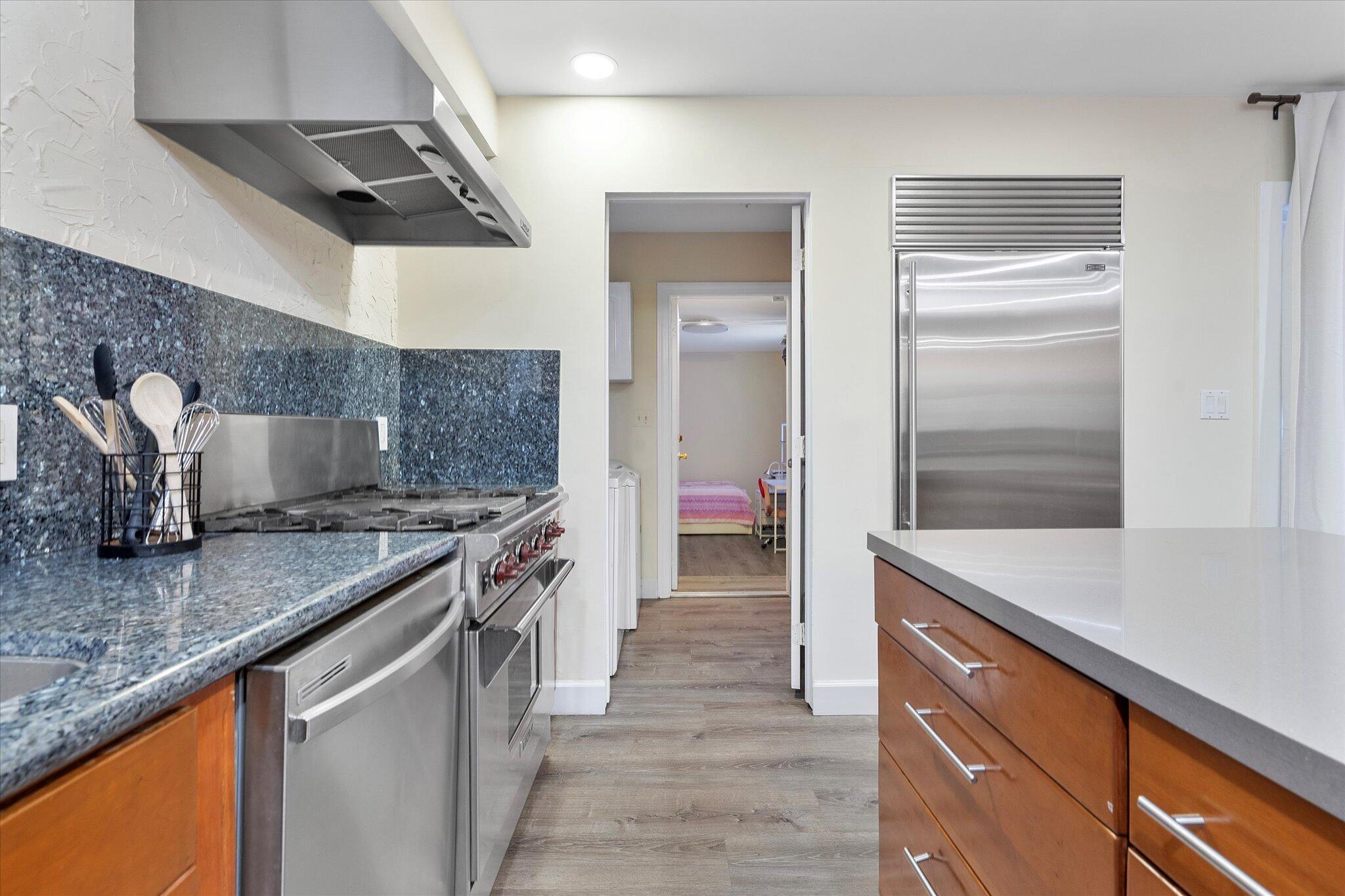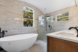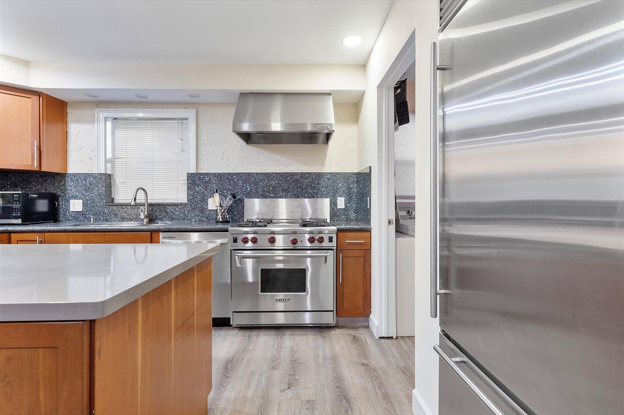 This beautiful home comes with a rare opportunity -- AN ASSUMABLE LOAN WITH LOW 3.125%. Just a short walk to downtown Hollywood and the Intracoastal, this beautifully updated home offers great curb appeal, a spacious layout, and flexible living space. Features include luxury vinyl plank flooring, fresh interior paint, and a chef's kitchen with Wolf gas stove, Sub-Zero fridge, large island, and generous storage. Both bathrooms have been fully renovated with high-end finishes -- including glass-enclosed shower, floor-to-ceiling tile, dual vanities, and a stunning freestanding tub in the primary suite. French doors lead to a screened porch. The converted garage serves as a third bedroom, office, or den. The fenced backyard features new turf, a custom playground, and paver driveway.