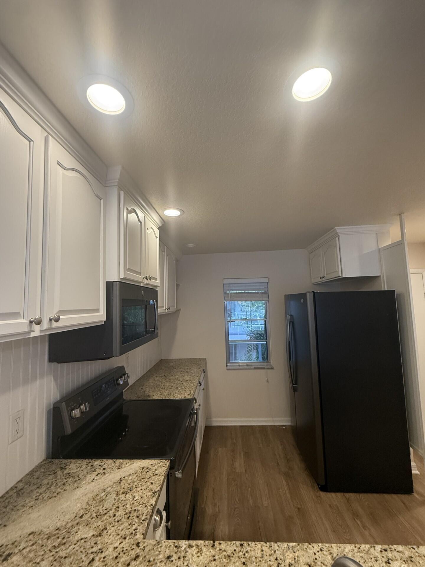 Fully renovated and move-in ready, this 2-bedroom, 1-bath condo is tucked inside the highly sought-after 55+ The unit features all-new flooring, modern lighting and ceiling fans with remote controls, and new stainless-steel appliances. The remodeled kitchen showcases an open-concept design, The bathroom has been fully upgraded with new fixtures.