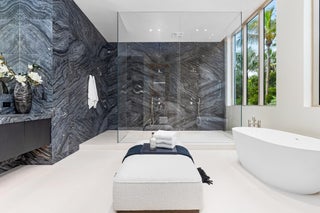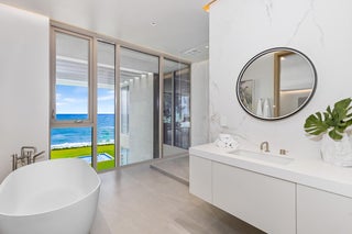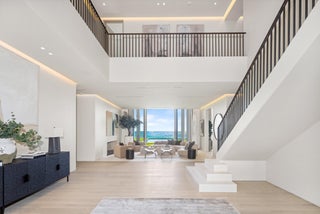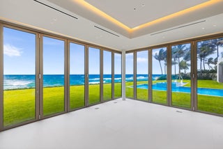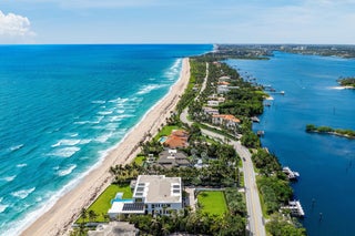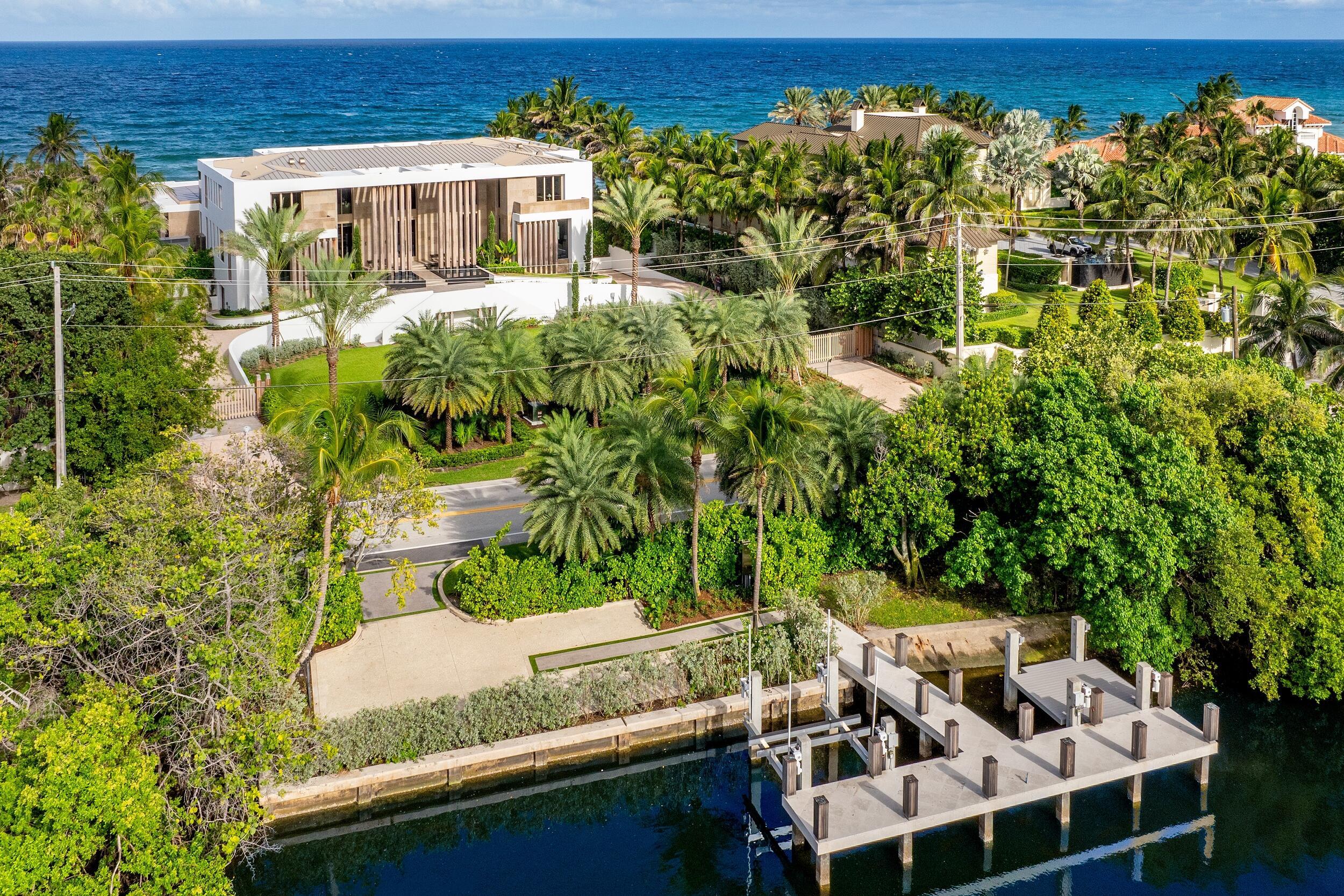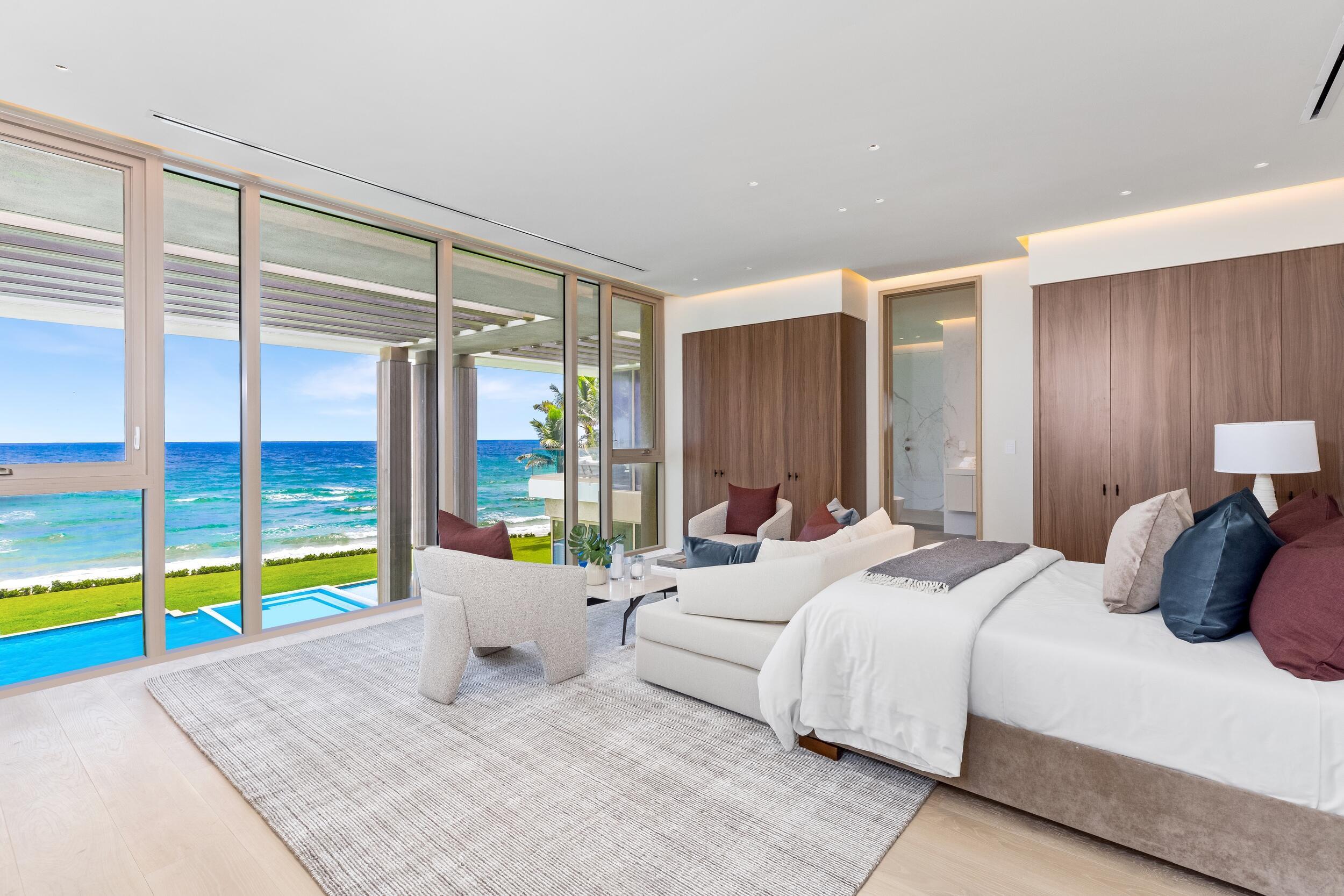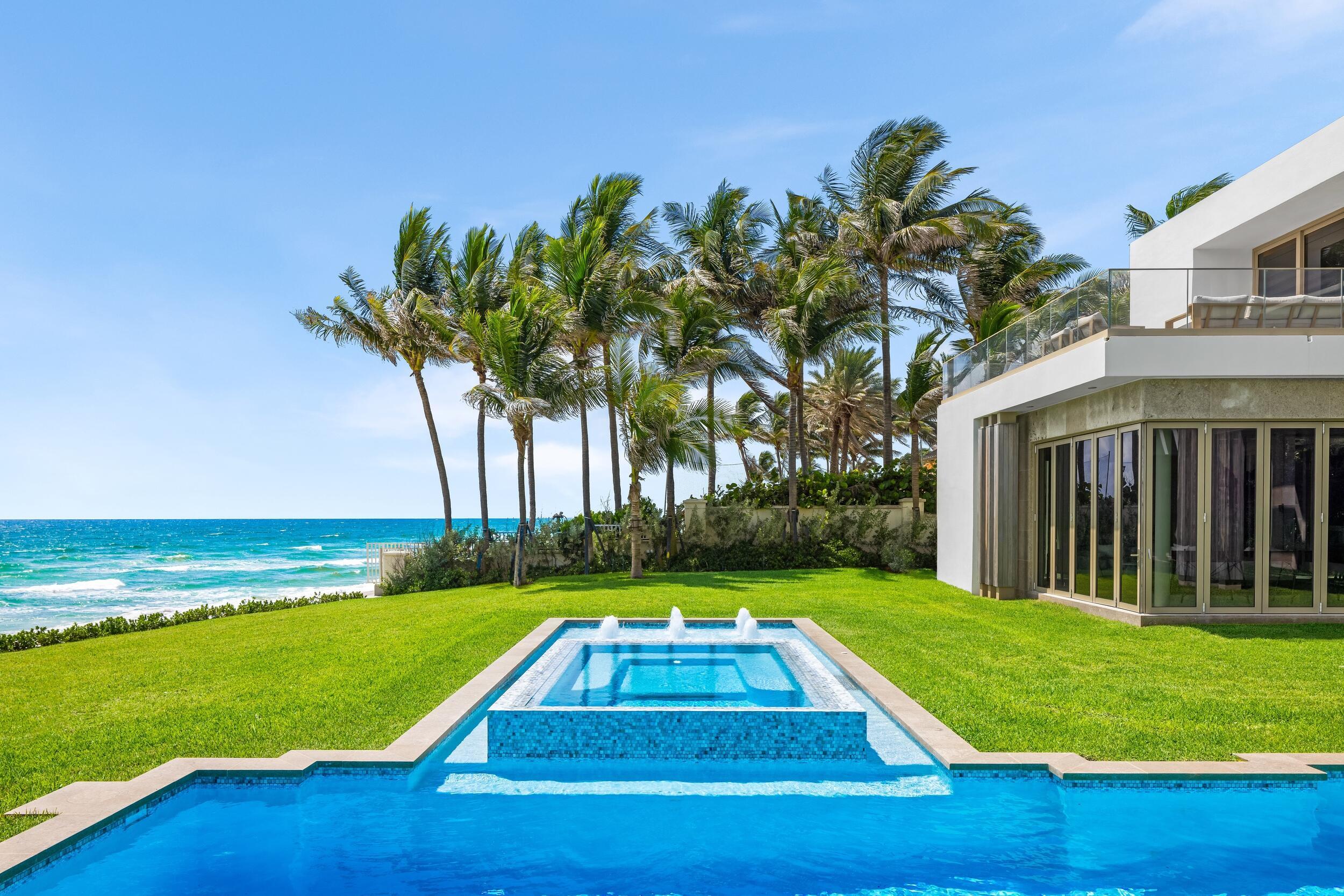 This exceptional 2024-built modern estate sets a new benchmark for luxury living in the exclusive community of Manalapan. Encompassing more than 25,500 square feet on a remarkable 1.5-acre double-frontage lot, the residence offers 172 feet of direct frontage on both the Atlantic Ocean and the Intracoastal Waterway. A private 50-foot dock with boat lift, dual jet ski lifts, and mooring piles provides effortless water access.A grand double-height foyer with cascading water features creates an unforgettable first impression. The open, light-filled interior showcases sweeping ocean views and an elegant blend of contemporary design and coastal refinement. Finishes include limestone slab flooring, wide-plank oak, and expansive walls of glass that elevate the interior with warmth andsophistication. Tailored for upscale living and wellness, the home features an indoor pool, chef's kitchen, formal dining area, VIP guest suite, sunroom, ocean-facing wellness wing, and a wet barideal for entertaining with style. The owner's wing is positioned to take full advantage of the ocean views and includes dual bathrooms, dual walk-in closets, and a west-facing balcony perfect for capturing sunsets. The upper level also features three oceanfront guest suites with en-suite baths, a salon, and a game room. The lower level combines style and function, offering a 16-car showroom garage, spacious staff accommodations, and extensive storageall seamlessly built into the home's refined design. Outside, a saltwater pool is set amid premier landscaping, complemented by a full Lutron lighting system and integrated Sonos sound, delivering both comfort and elevated living. This is more than just a homeit's a statement in architecture, design, and waterfront living in one of Florida's most desirable enclaves.