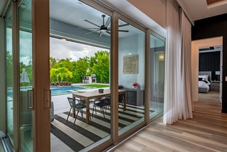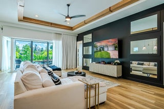 Long or short term(4 months min) non-furnished rental. Also for sale: RX-11023246. Come check out this property, boasting luxury and top tier finishes, This NEW construction home offers both functionality and elegance. The combination of lake views, a corner lot on a cul-de-sac, and a pool oasis makes for a serene and inviting atmosphere. 3 bedrooms(PLUS 2 flex rooms-a den and sunroom, 4 bathrooms, plus the 3 car garage is a show stopper! Equipped with luxury vinyl plank (LVP) flooring. Every bathroom, including the cabana bath is designed with full height wall tile and porcelain tile floors. The primary suite is a true retreat, featuring a grand walk-in closet with custom built-ins, tray ceiling with custom lighting, a board and batten wall feature and more.Enter the master bathroom for a spa-like experience! It offers a dual sink quartz vanity, huge walk-in shower with 2 shower heads. The kitchen is a culinary masterpiece, boasting a professional-grade chef's setup with quartz countertops and backsplash, ceiling high soft-close cabinets, high-end KitchenAid appliances including double ovens, a built-in microwave, and a 66" wide built-in fridge/freezer! A chimney-style stainless steel hood completes the sleek aesthetic. Step outside to enjoy the jaw dropping backyard with lush landscaping, saltwater pool surrounded by a luxurious marble deck and artificial turf design. The pool has a heater and a cooler. The outdoor summer kitchen has a propane grill and outdoor fridge. For added comfort, a retractable motorized screen covers the lanai, perfect for outdoor living. Greatness continues into the garage with epoxy-coated garage floors, 18,000 BTU mini-split unit for climate control and insulated doors. Additional desirable upgrades include hurricane impact windows and doors, custom closets, blinds, curtains, motorized drapes, custom wood ceiling details, wall paper, custom lighting, storage solutions, high end fixtures, and builder warranties. Pool and lawn maintenance and ATT fiber is included in rent. Outdoor kitchen is not included in rental. Community ammenities include pool, clubhouse, pickleball courts, 1G of ATT internet, and an unmanned gate. Check out the upgrade list for more. This home is WOW factor!