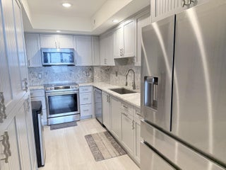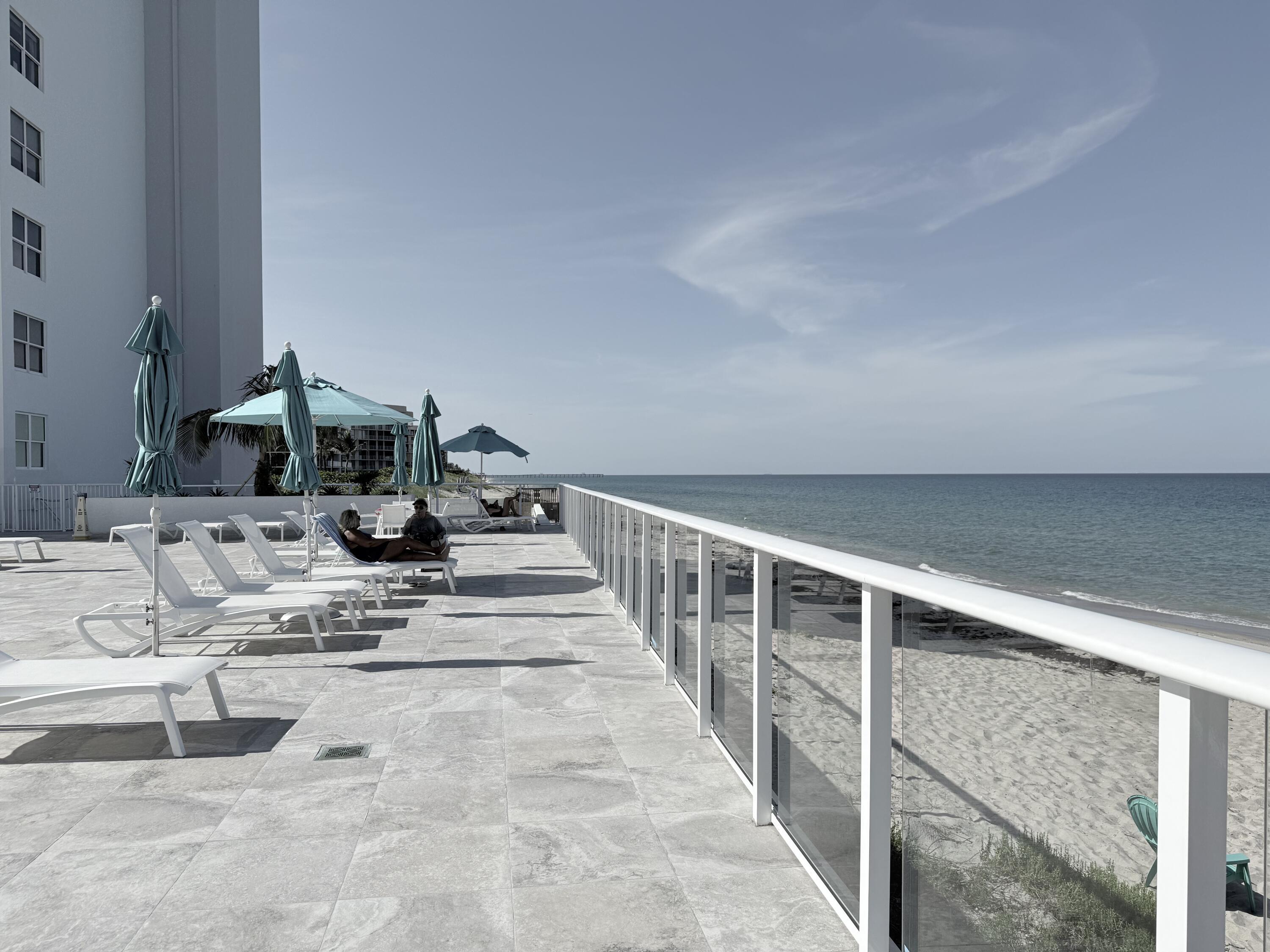 Welcome to this beautiful 3-bedroom,3-bath residents in The Patrician, offering stunning views of the Atlantic Ocean and Intracoastal Waterway. This fully renovated unit includes a rare third bedroom and solid privacy walls off the balcony, providing extra exclusivity. Step inside to find a bright, open living and dining area that flows seamlessly to the balcony--perfect for enjoying sunset views. The unit features modern upgrades, including quartz countertops, stylish bathrooms, and spacious storage with custom closets and luxury vinyl flooring. The living room showcases a custom-built wall unit for added elegance and functionality. This property is equipped with impact windows and doors for your safety and comfort.You'll have direct access to a beautiful sandy beach and a revamped pool deck with a sparkling pool, BBQ facilities, and seating for relaxation.Additional benefits include tandem parking for two vehicles and 24/7 access to a fitness center. Don't miss your chance to make this luxurious coastal retreat at The Patrician your new home!